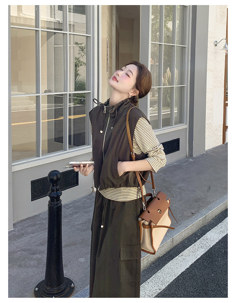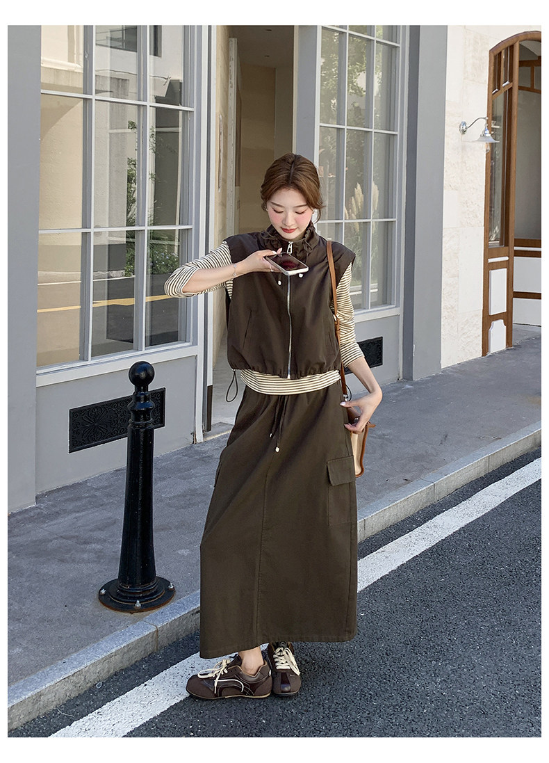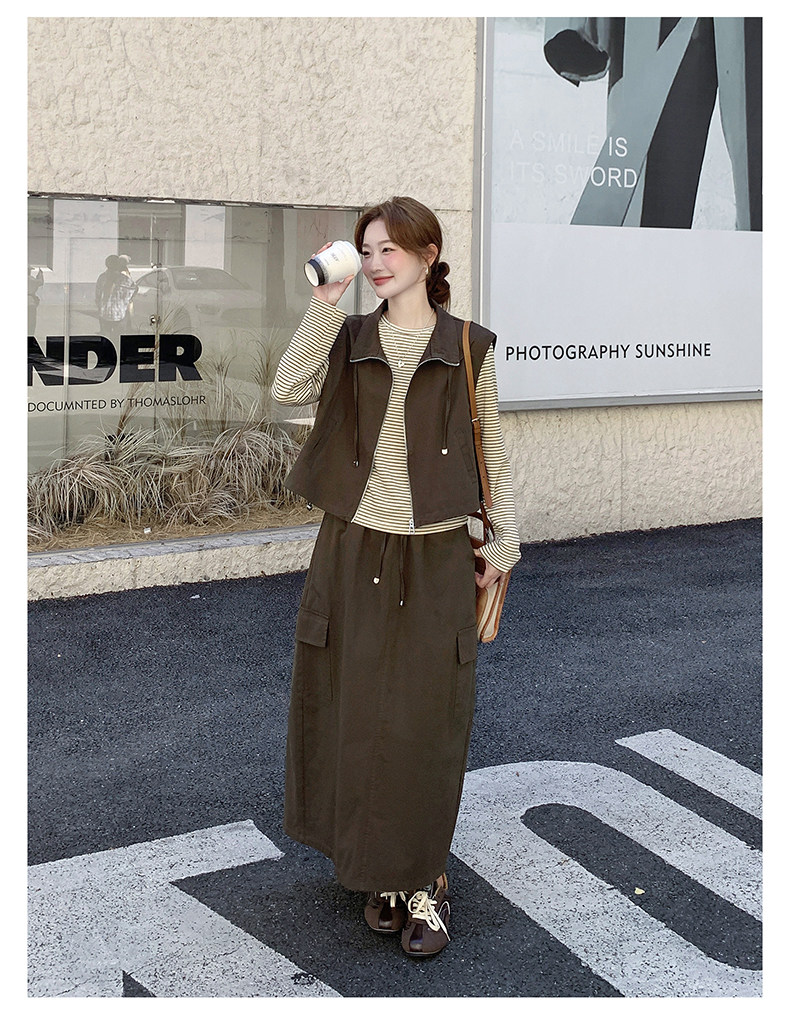 3点セット!【セットアップ】マラード風 ベスト+ストライプタイトスカート+ロンT 上下セット レディース【JZシリーズ】