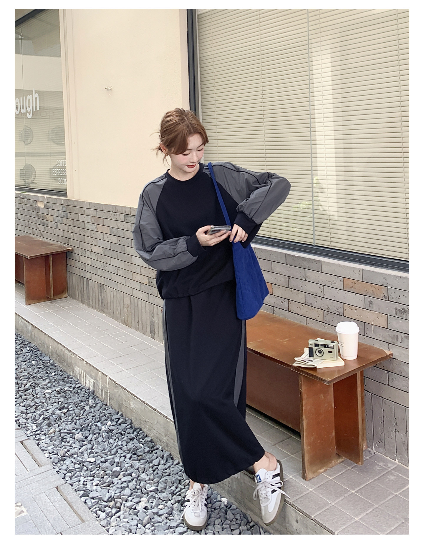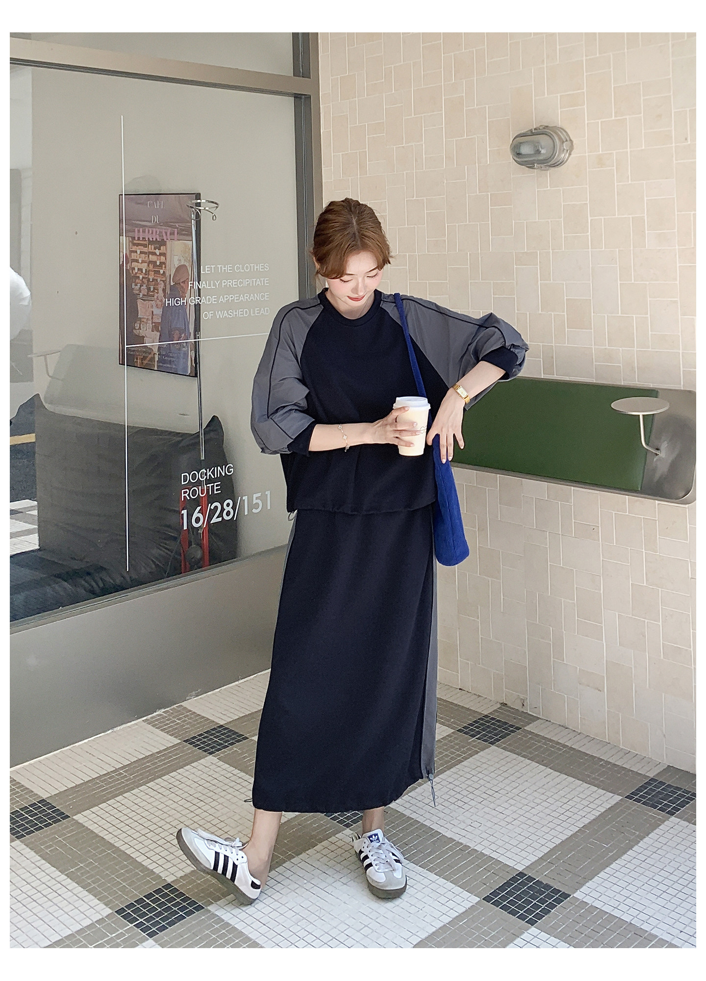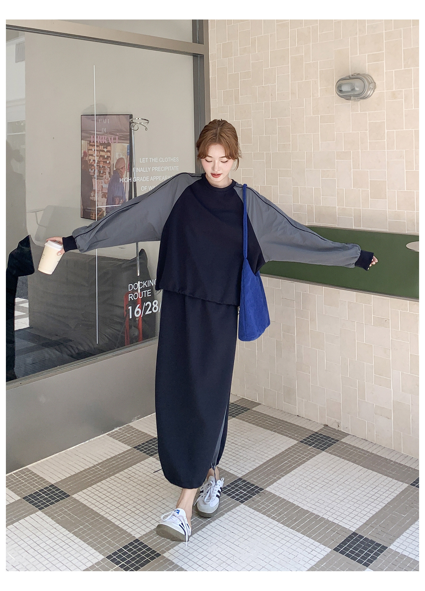 【商品名】2点セット!【セットアップ】韓国風 カジュアル スポーツ 春秋 雰囲気感 切替スウェット+スカート 上下セット【JZシリーズ】