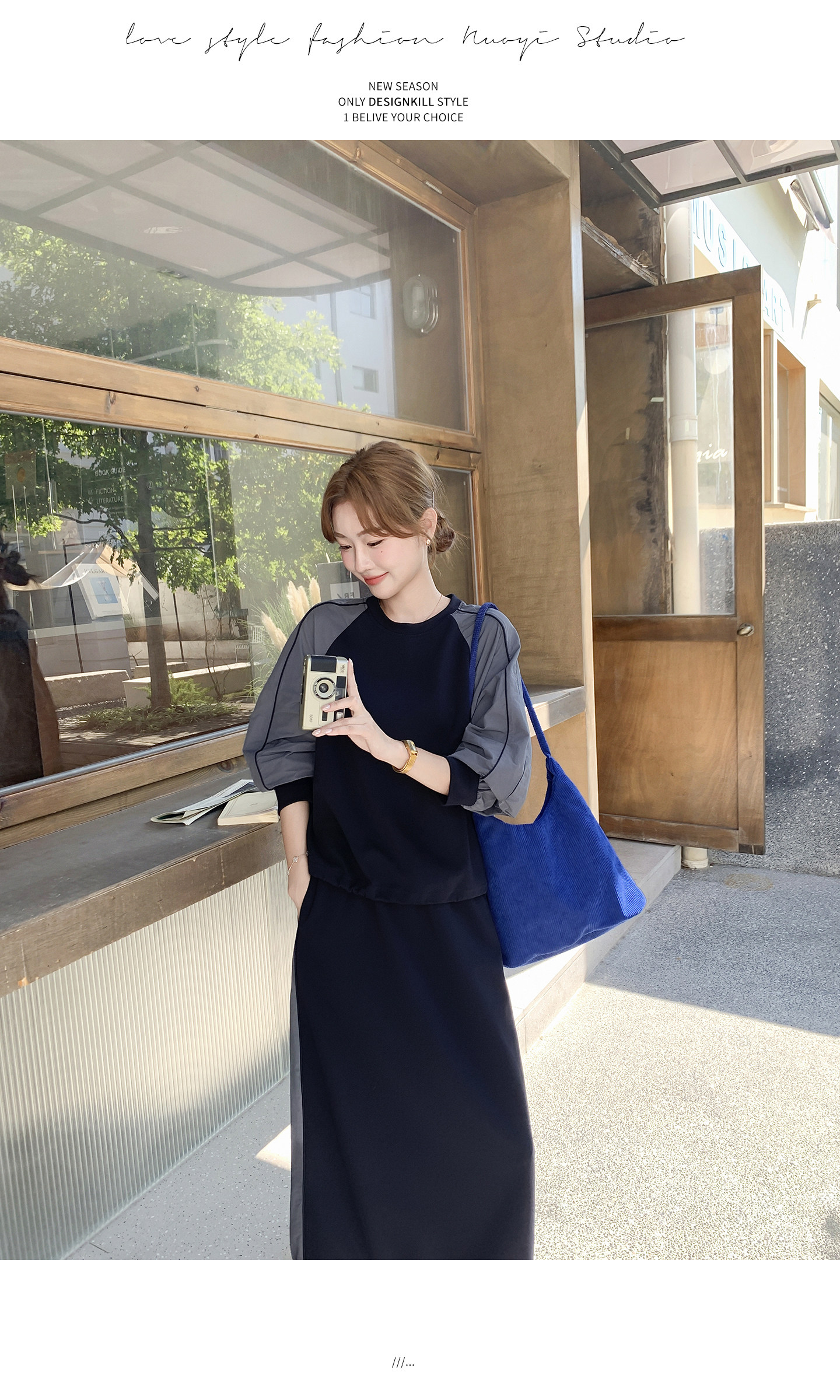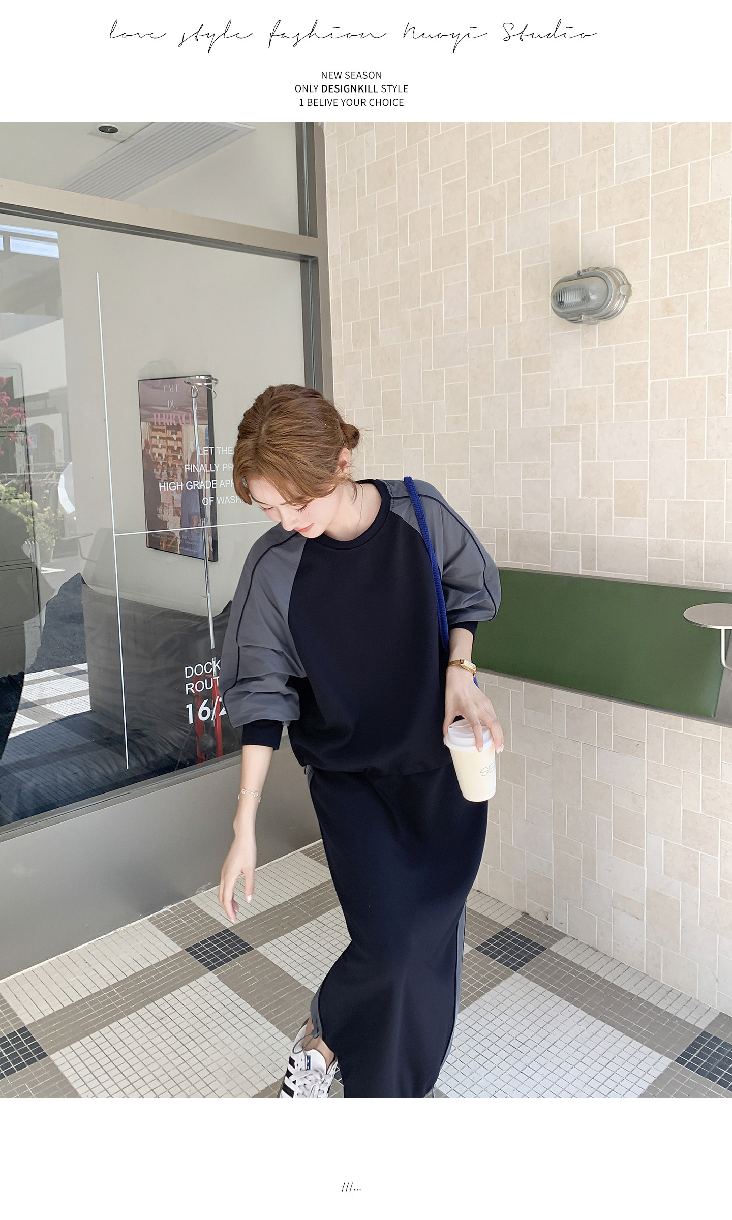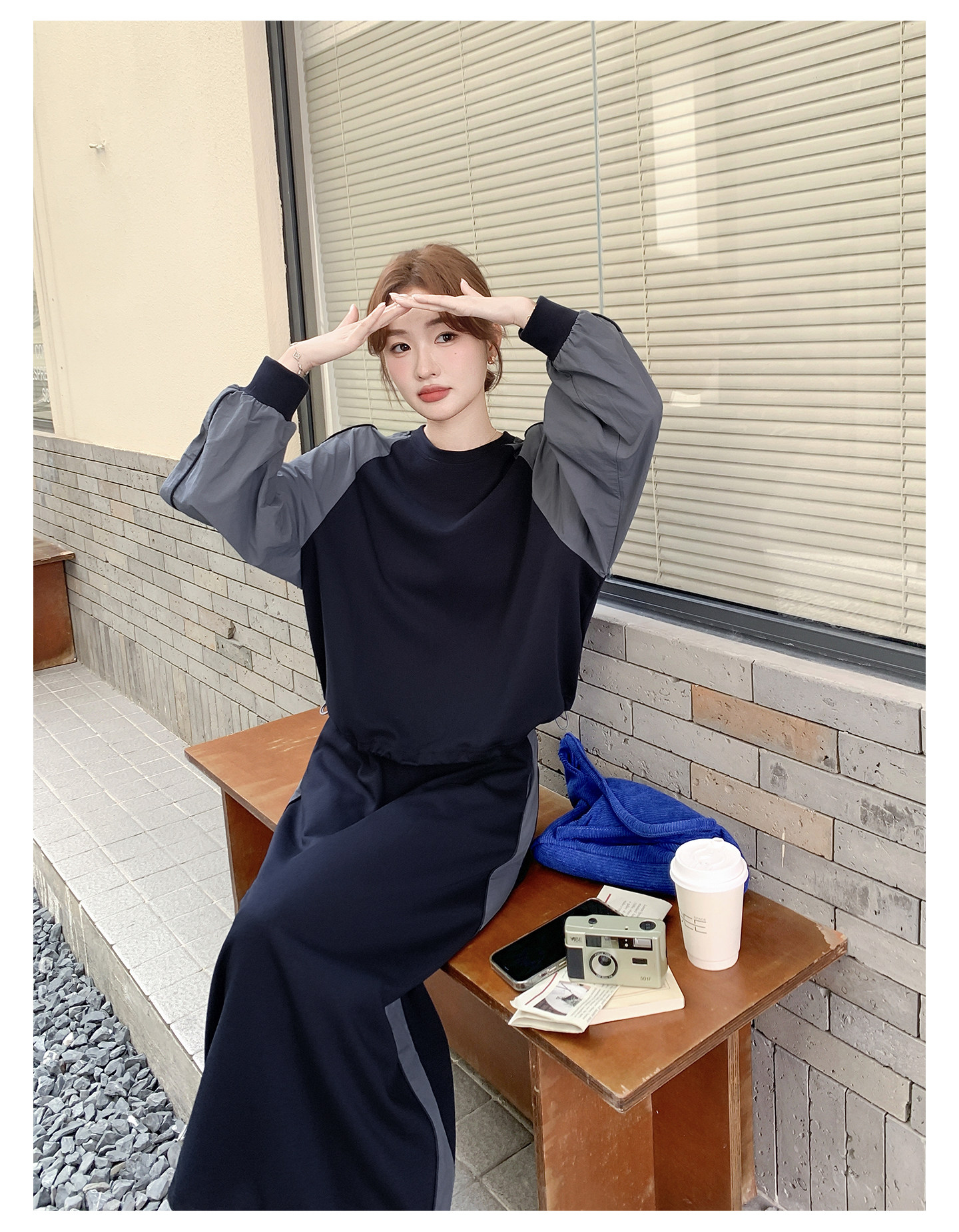 【商品名】2点セット!【セットアップ】韓国風 カジュアル スポーツ 春秋 雰囲気感 切替スウェット+スカート 上下セット【JZシリーズ】