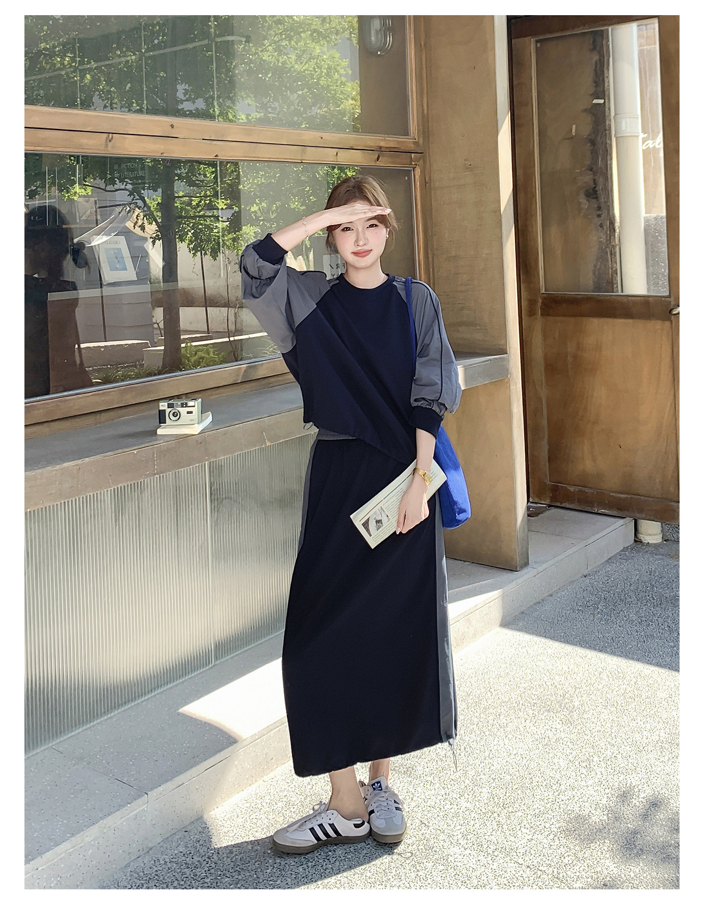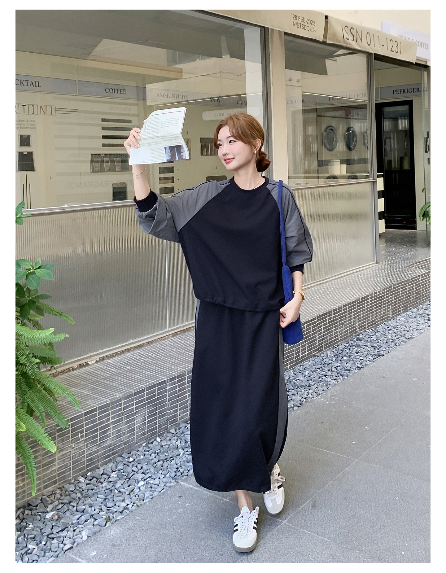 2点セット!【セットアップ】韓国風 カジュアル スポーツ 春秋 雰囲気感 切替スウェット+スカート 上下セット【JZシリーズ】