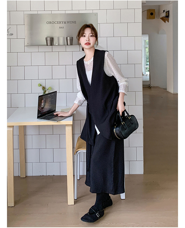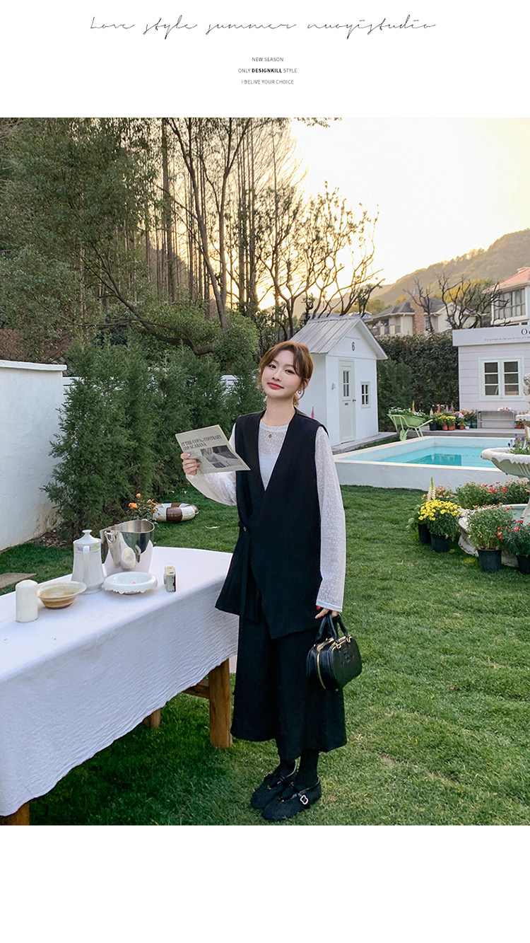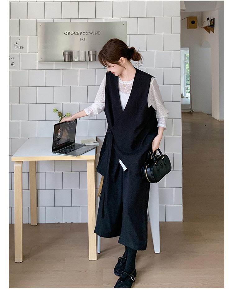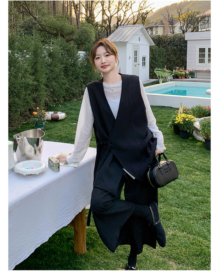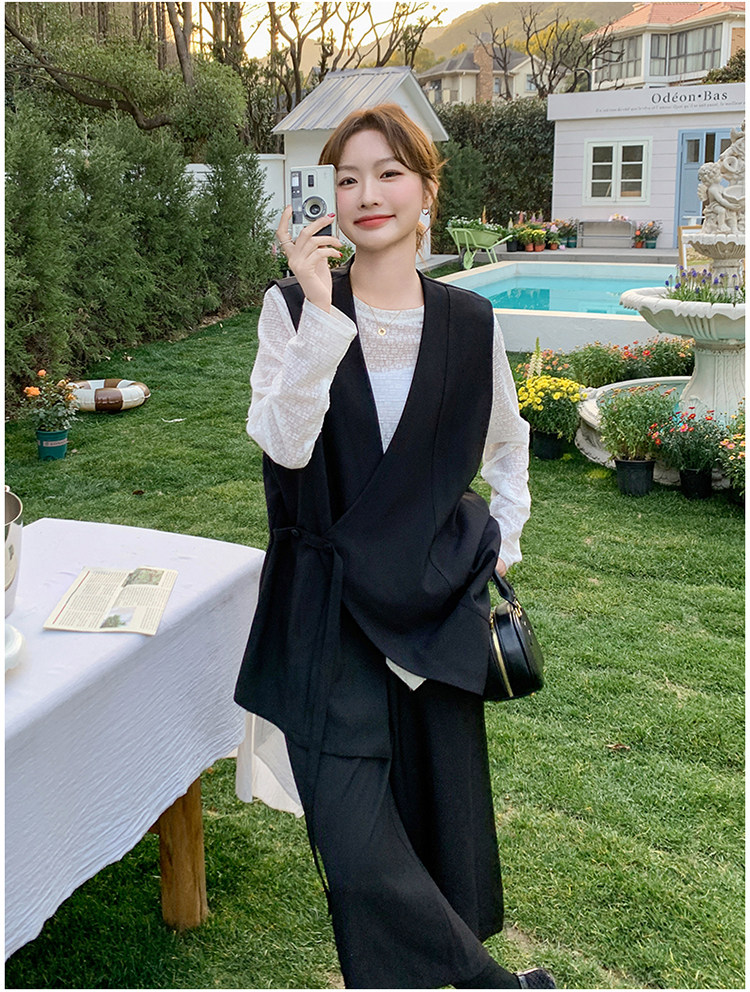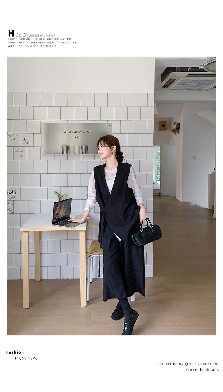 3点セット!【セットアップ】ベスト+トップス+ワイドパンツ 上下セット 秋 韓国風 気質カジュアル【JZシリーズ】