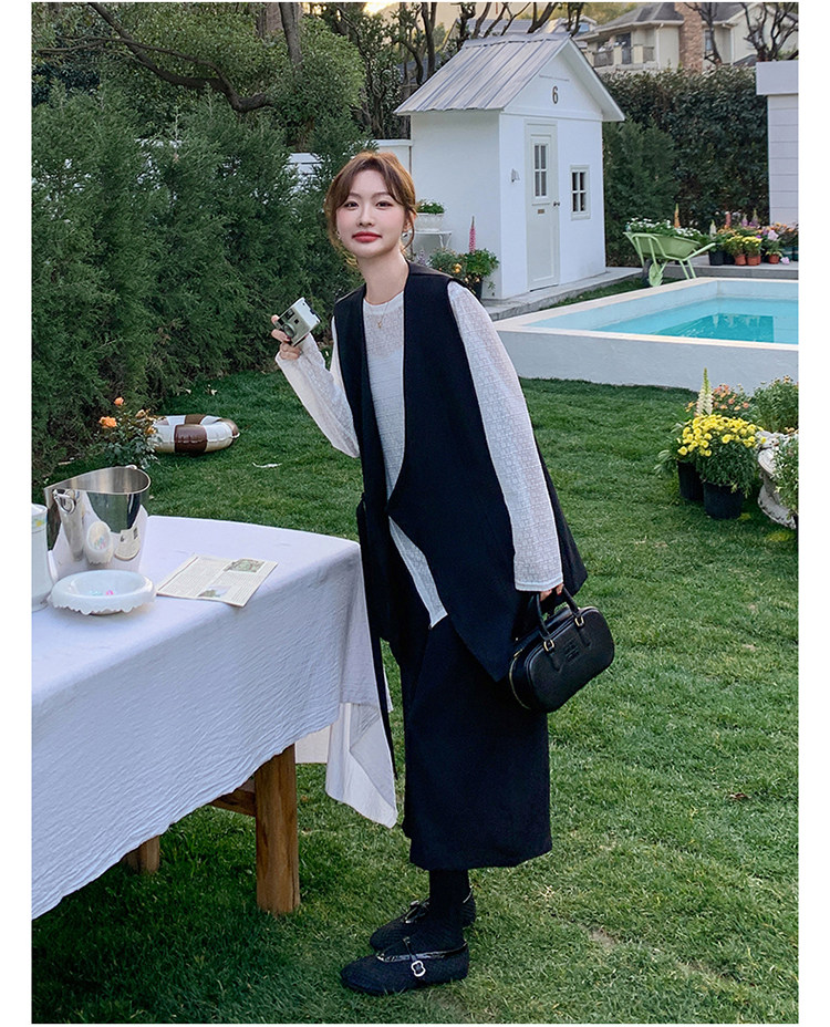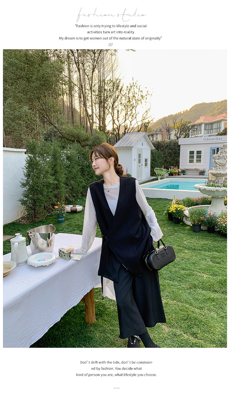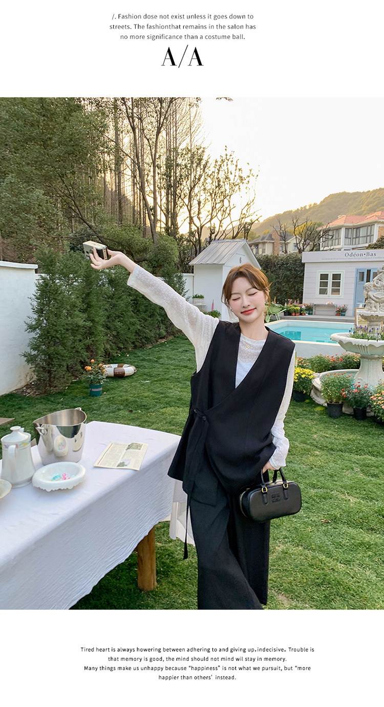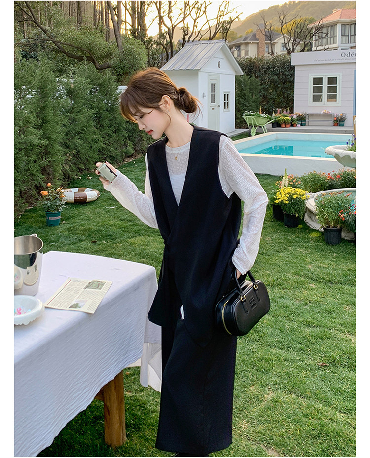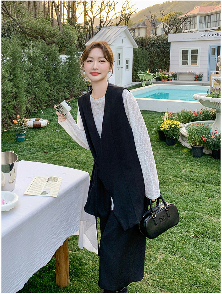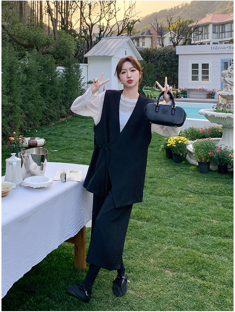 3点セット!【セットアップ】ベスト+トップス+ワイドパンツ 上下セット 秋 韓国風 気質カジュアル【JZシリーズ】