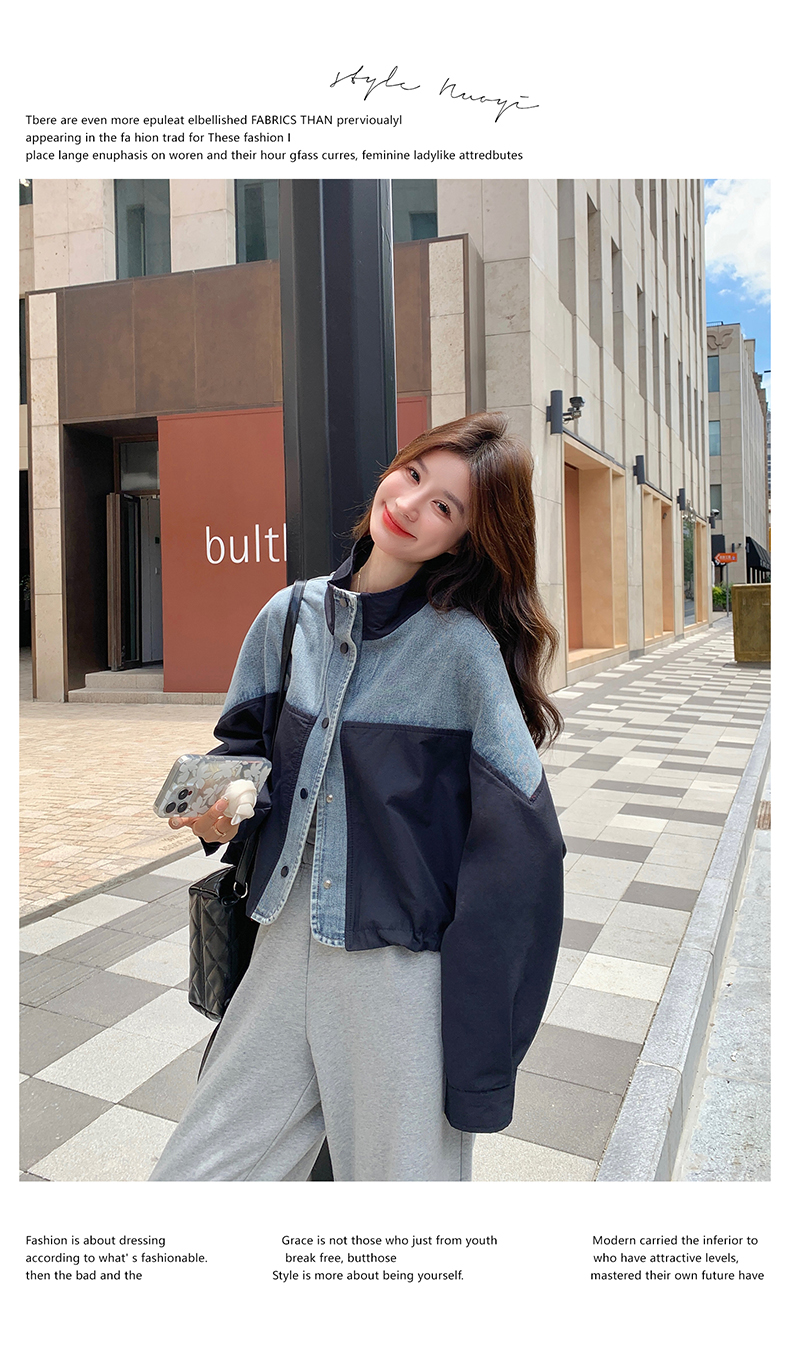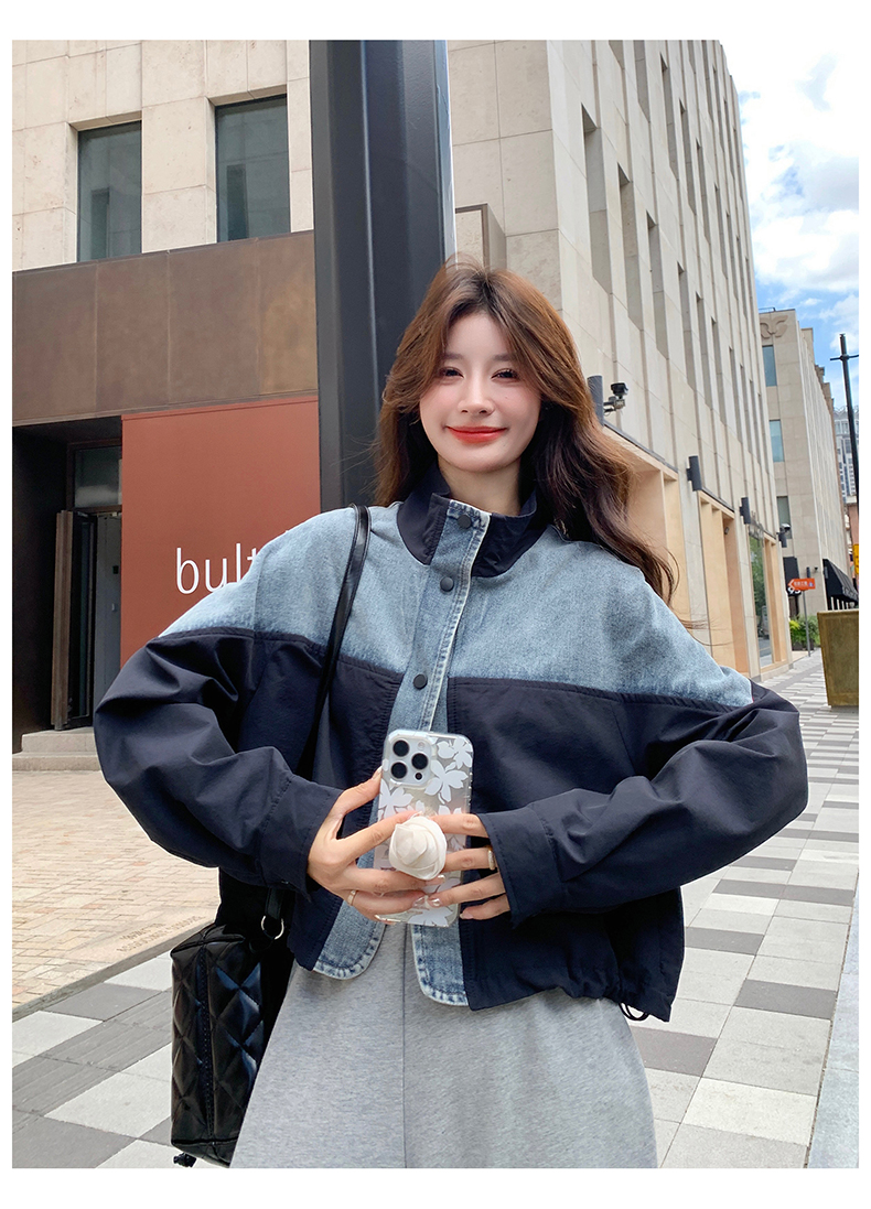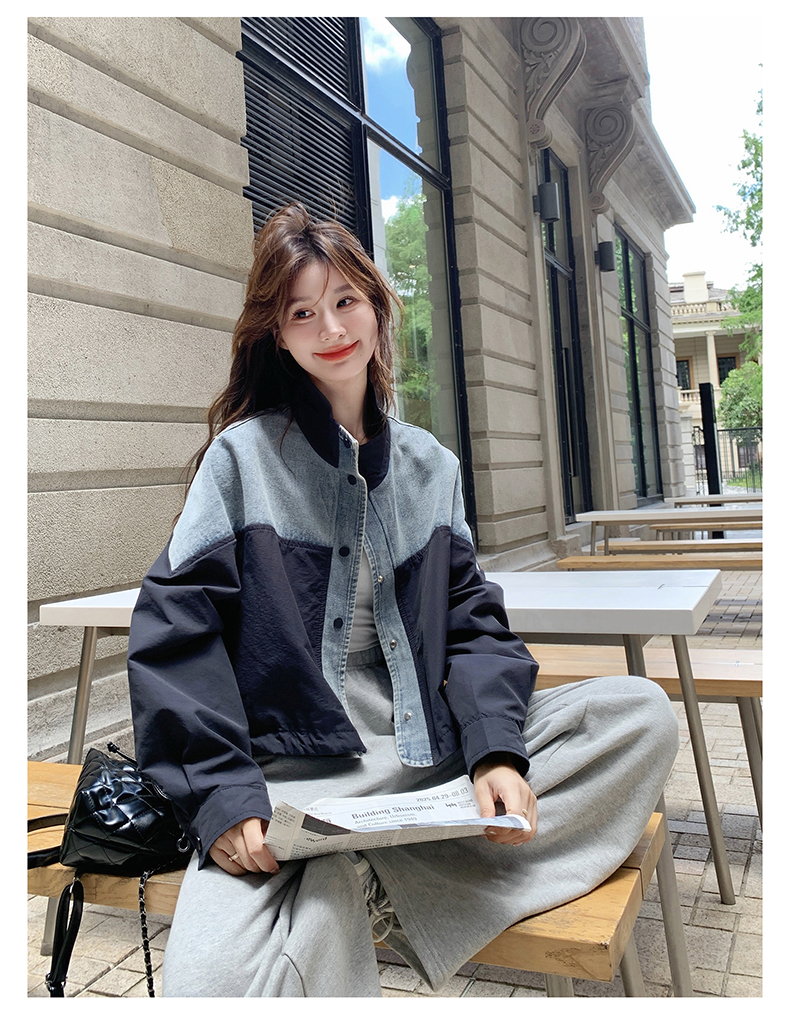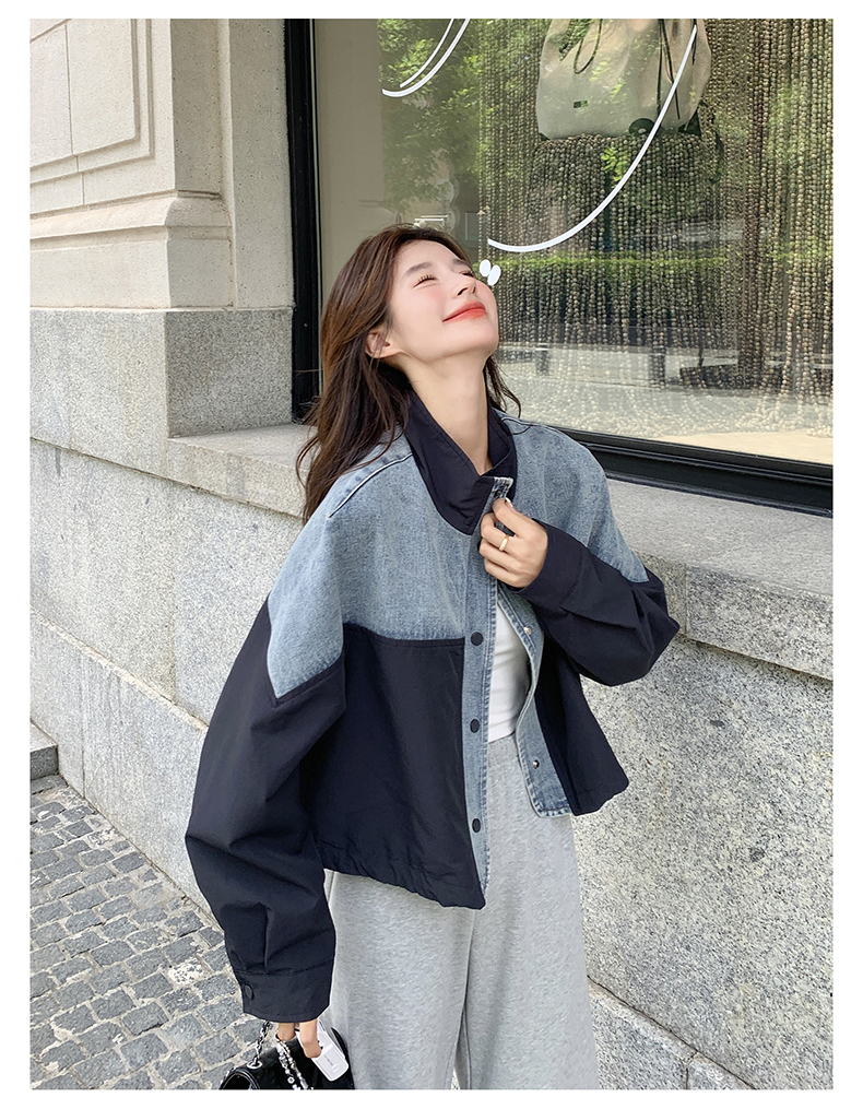 【アウター】おしゃれジャケット 欧米風 秋新作 カラー切替 ハイカラー ゆったりデニムジャケット レディース【JZシリーズ】