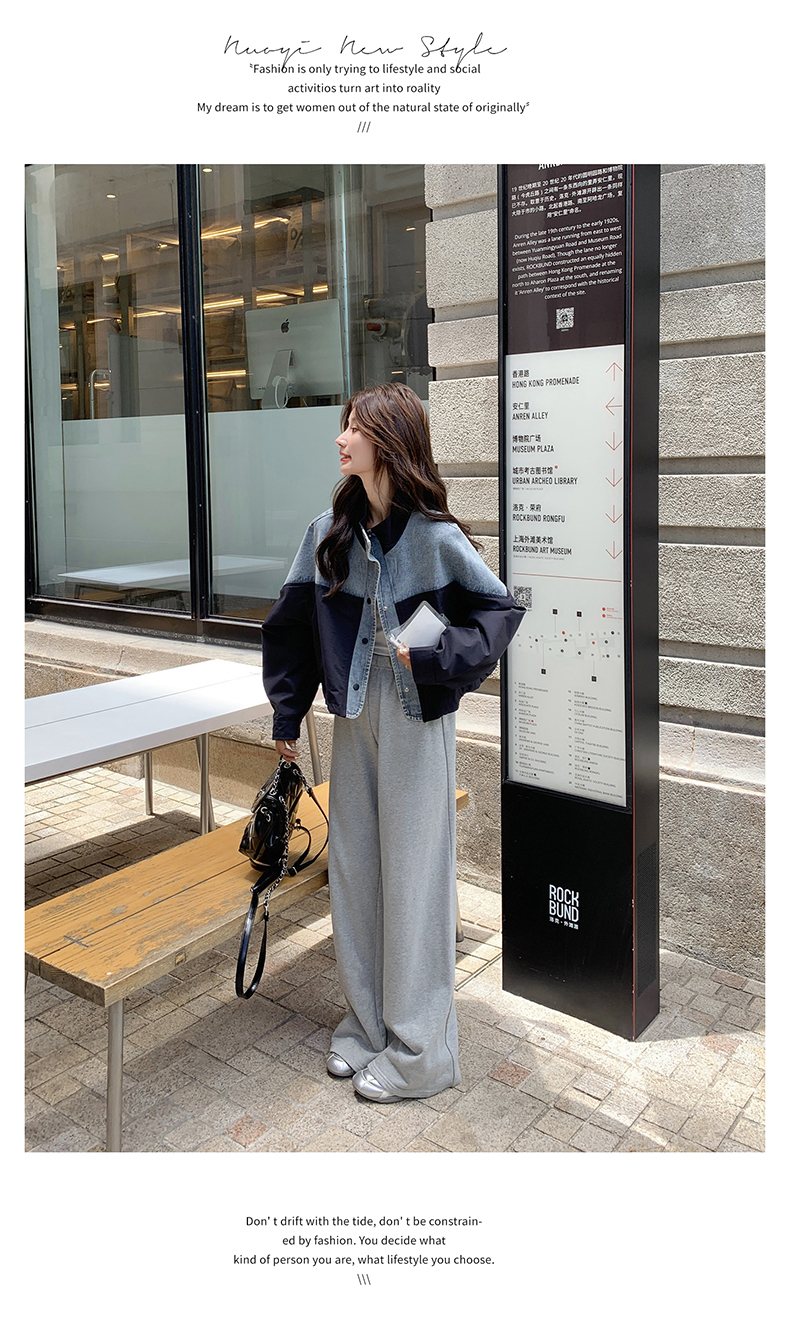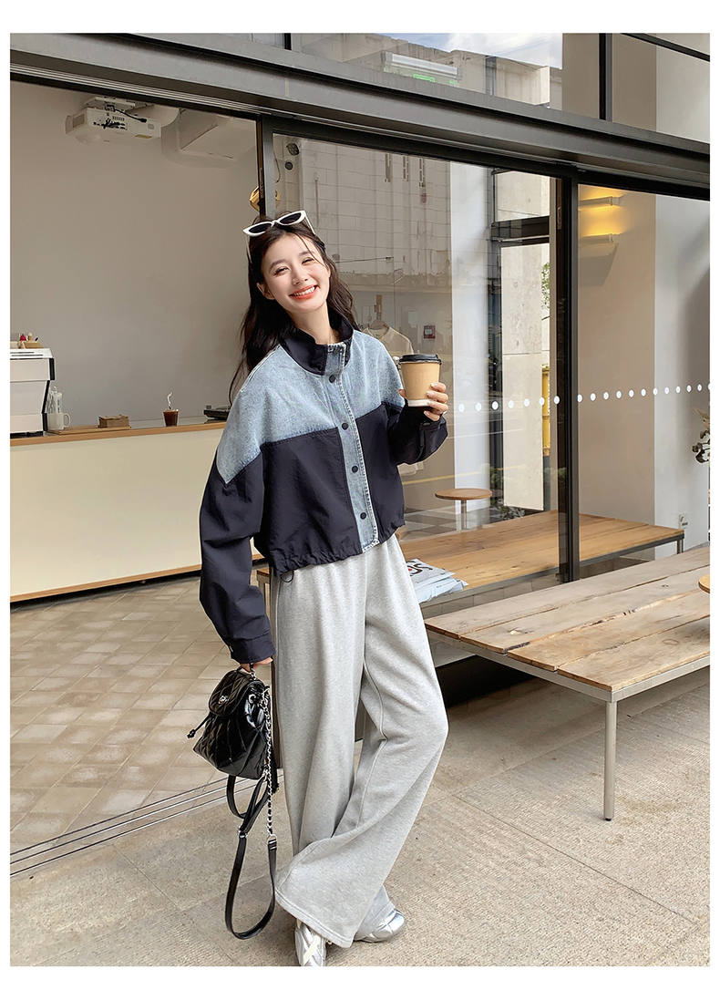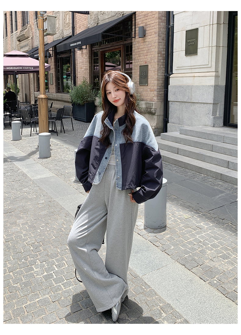 【アウター】おしゃれジャケット 欧米風 秋新作 カラー切替 ハイカラー ゆったりデニムジャケット レディース【JZシリーズ】