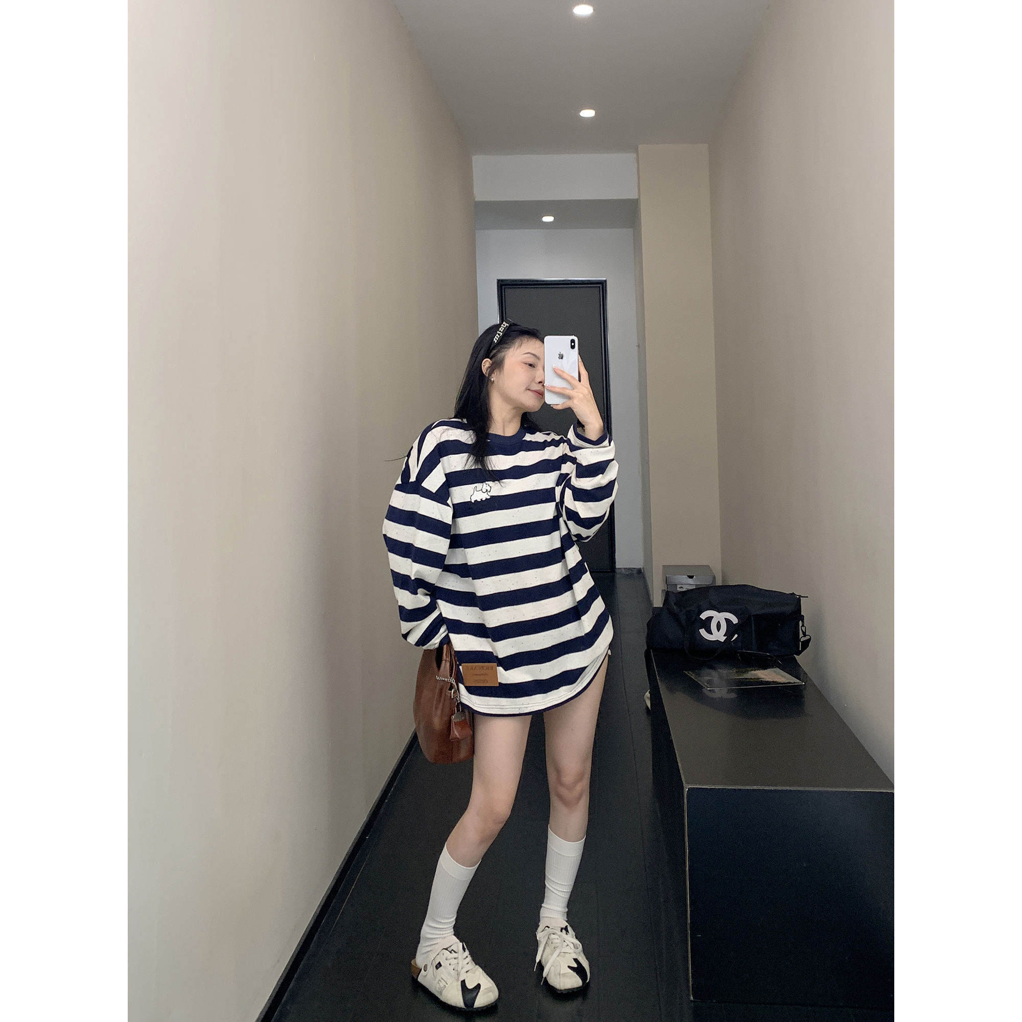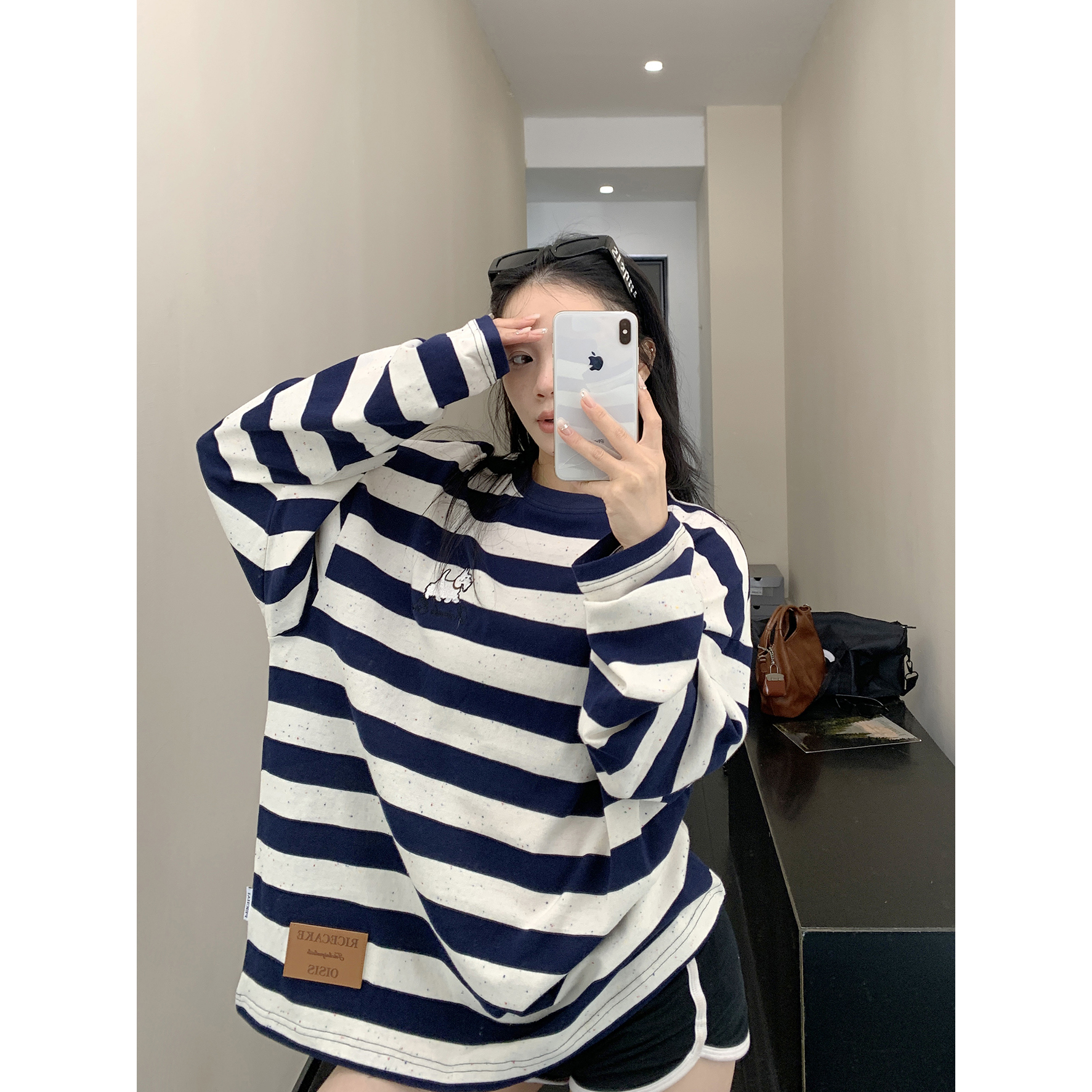 【トップス】春 秋 冬 プリント ストライプ柄 薄手 長袖 Tシャツ 【FCシリーズ】