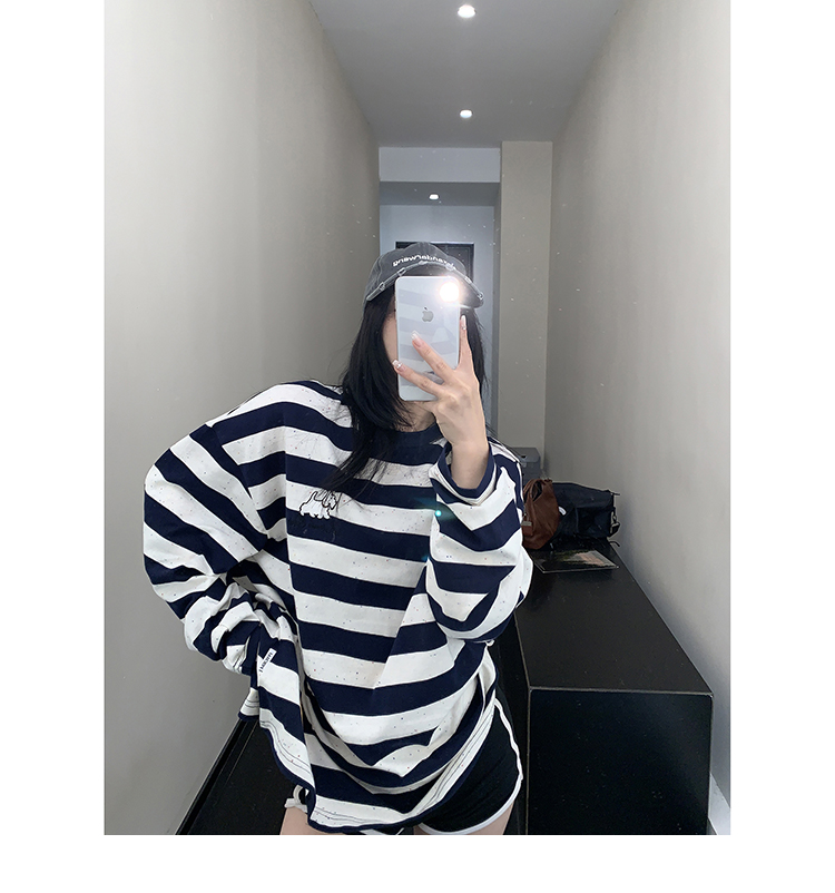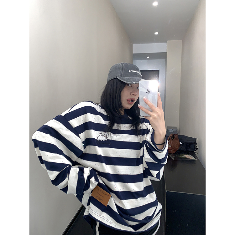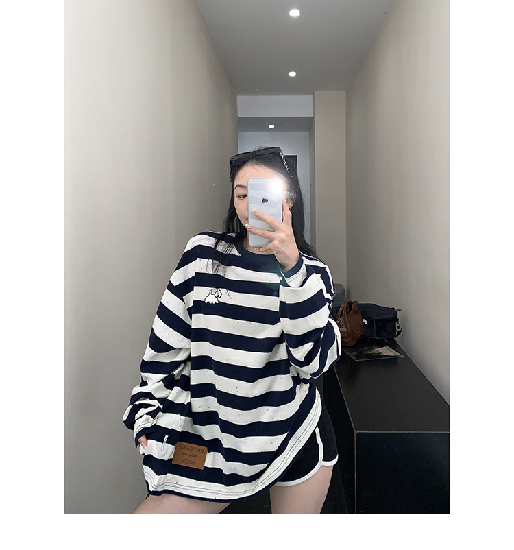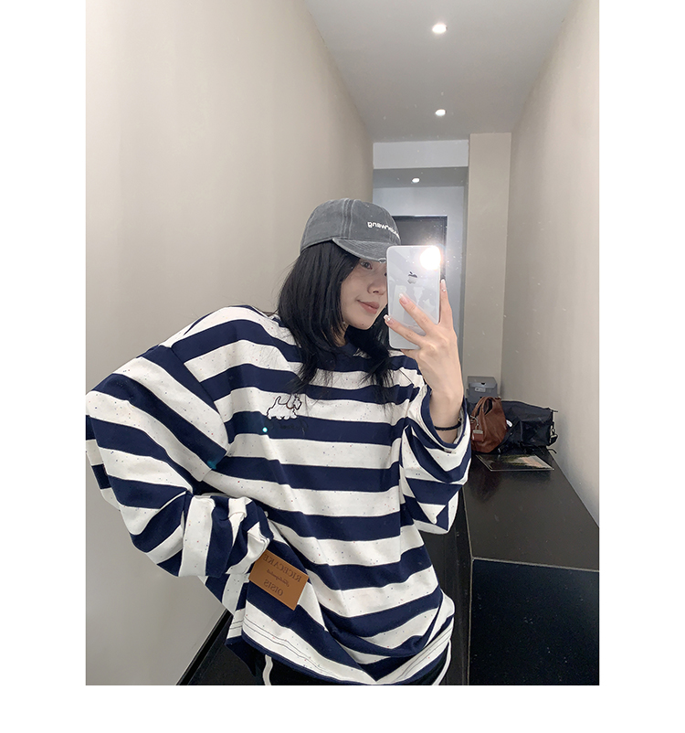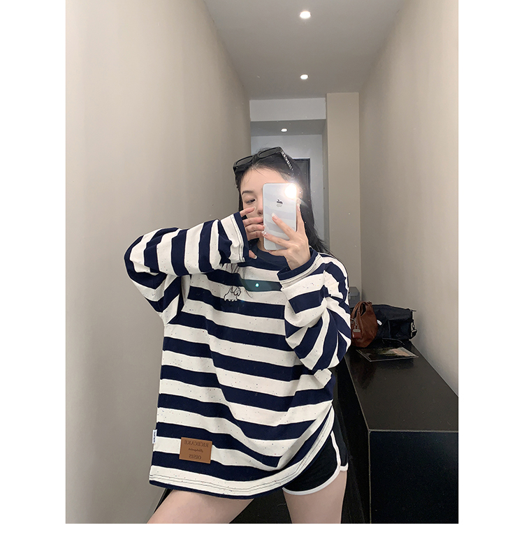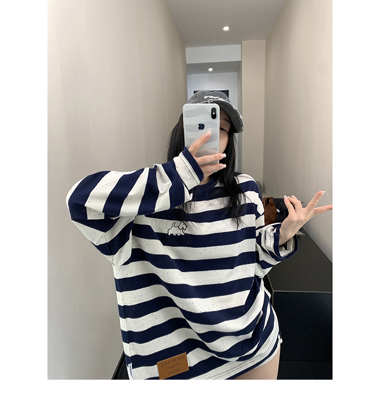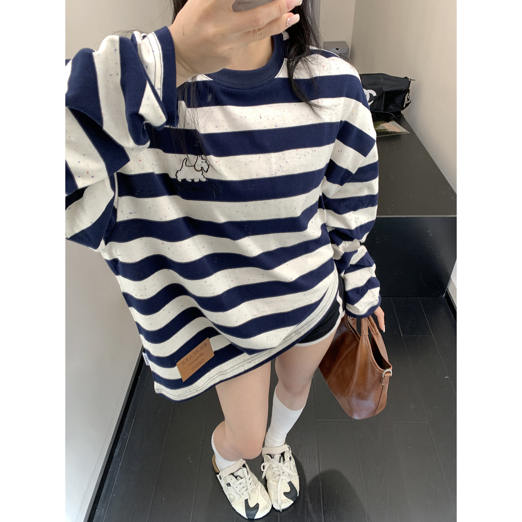 【商品名】【トップス】春 秋  冬 プリント ストライプ柄 薄手 長袖 Tシャツ 【FCシリーズ】