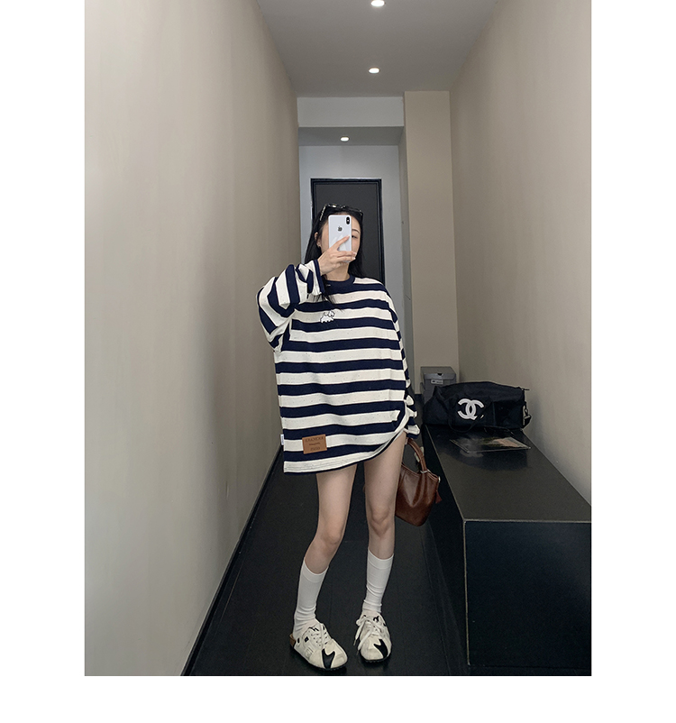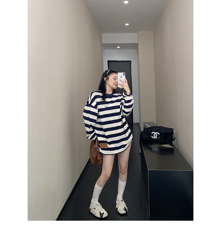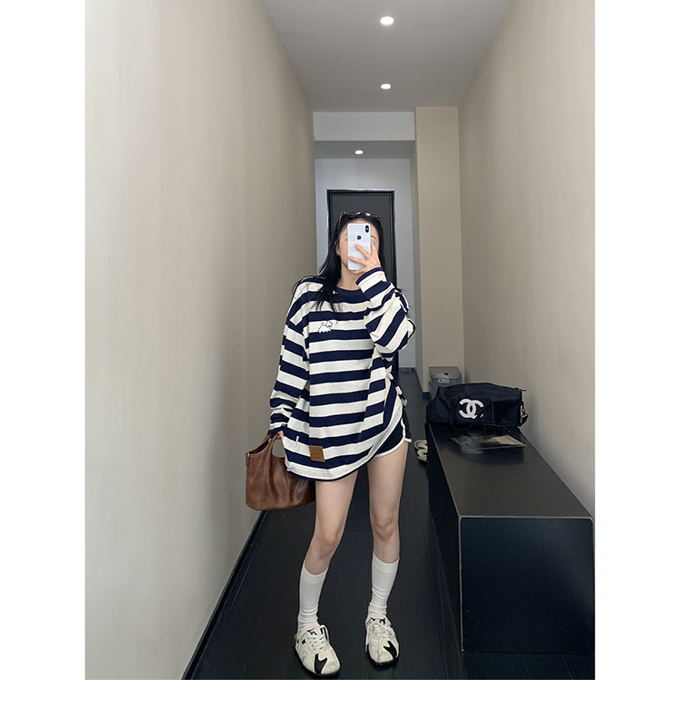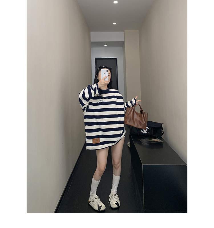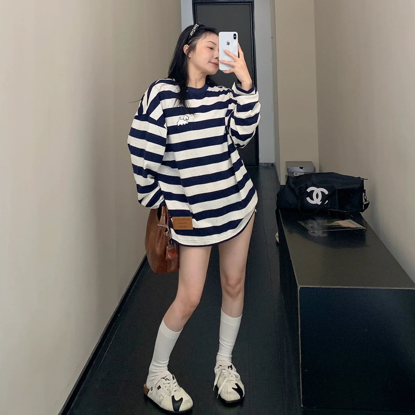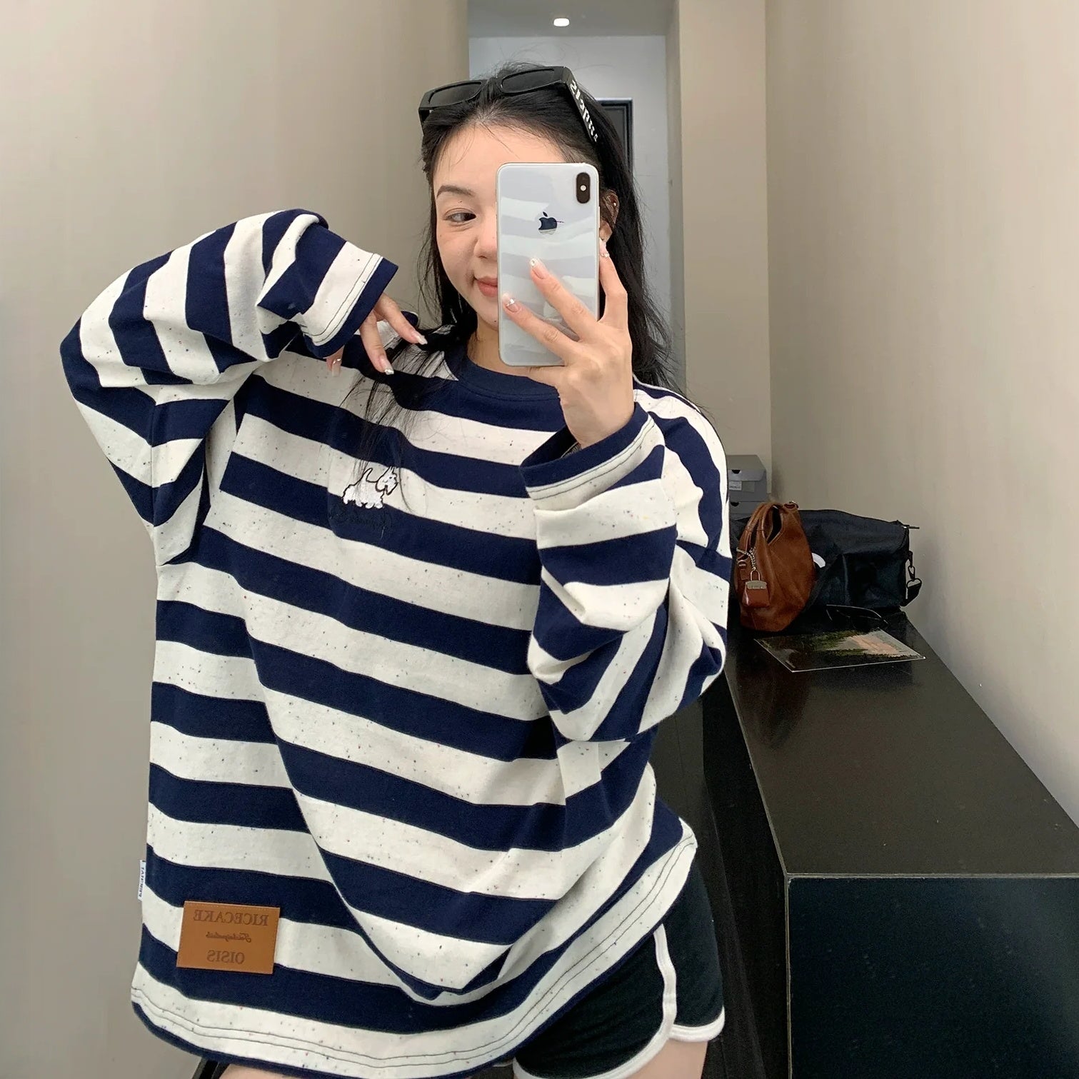 【商品名】【トップス】春 秋  冬 プリント ストライプ柄 薄手 長袖 Tシャツ 【FCシリーズ】