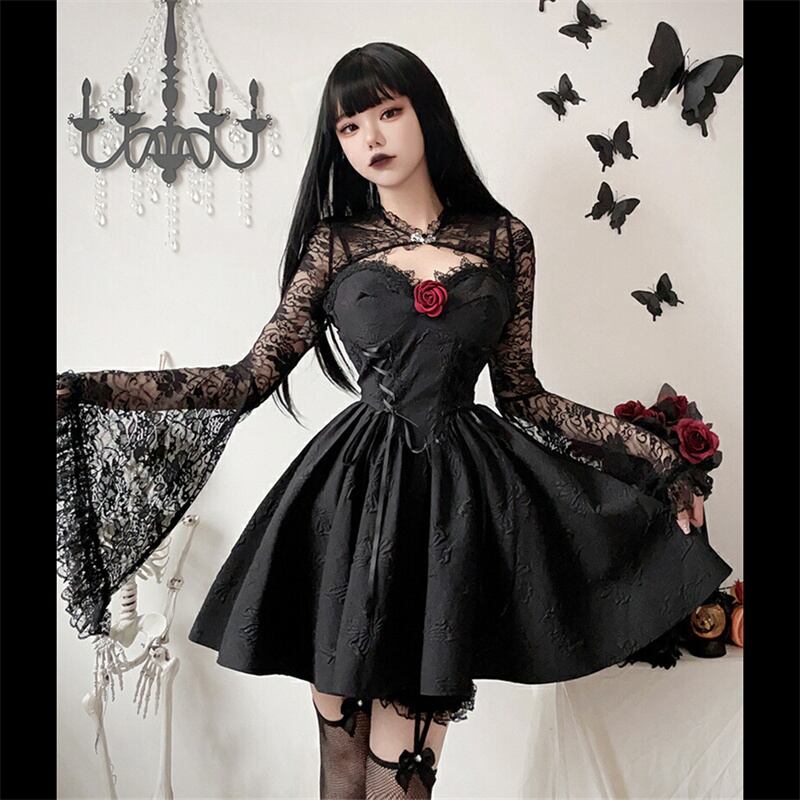 【ハロウィン】ゴシックコスプレ・ダークウィッチ・ヴァンパイア・ブラックワンピース・ブライド・エンジェル衣装