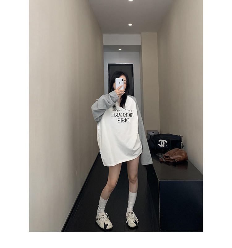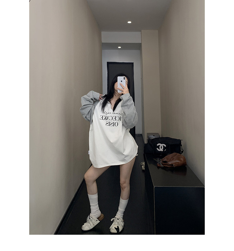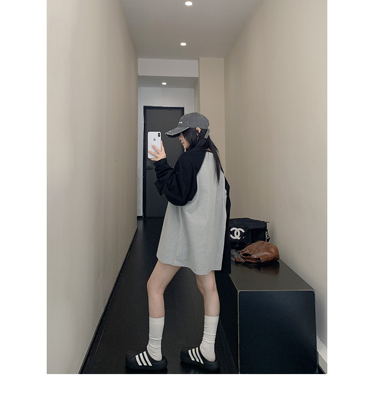 【トップス】フェイクレイヤード フードパーカー 春秋 男女兼用 ゆったり カジュアル トップス【FCシリーズ】