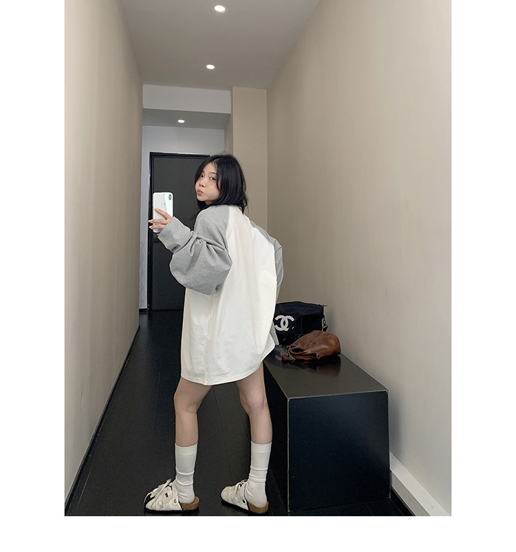 【トップス】ヴィンテージ風 デザイン 犬柄 クルーネック フェイクレイヤード ニットパーカー レディース 秋 ゆったり 着回し トップス【FCシリーズ】