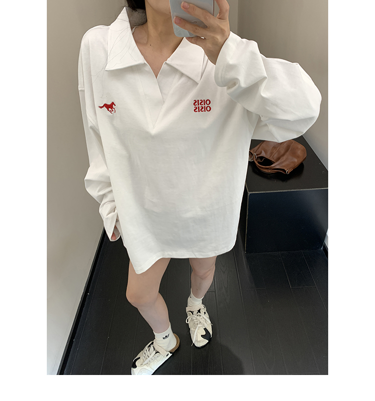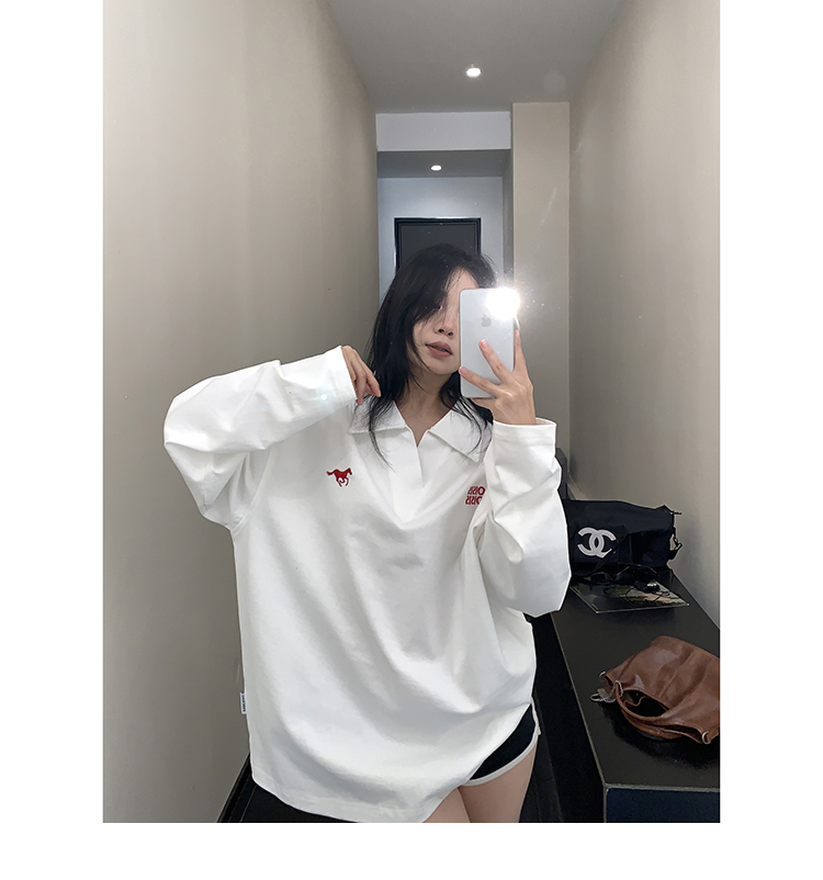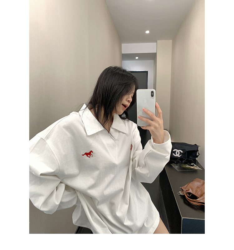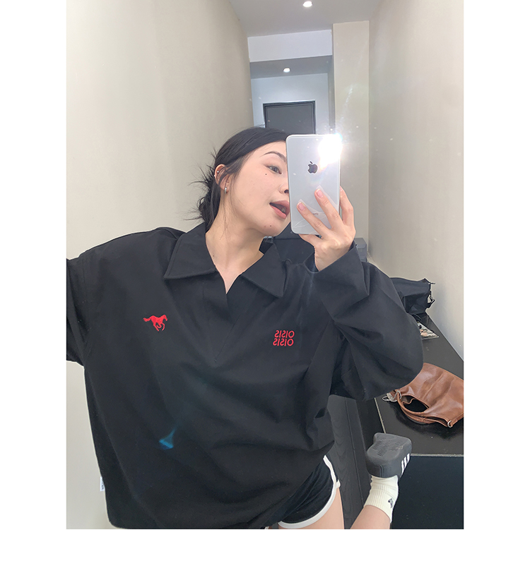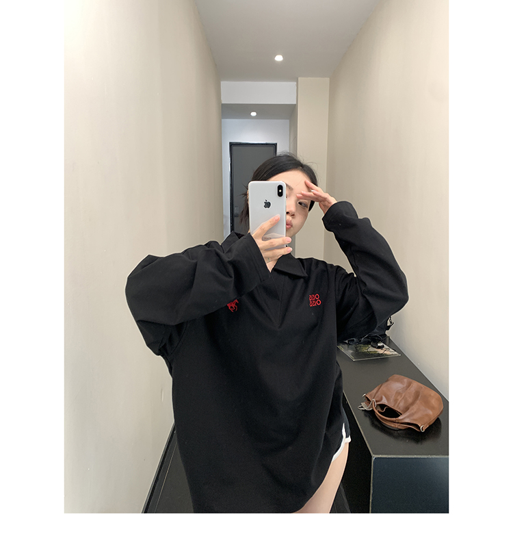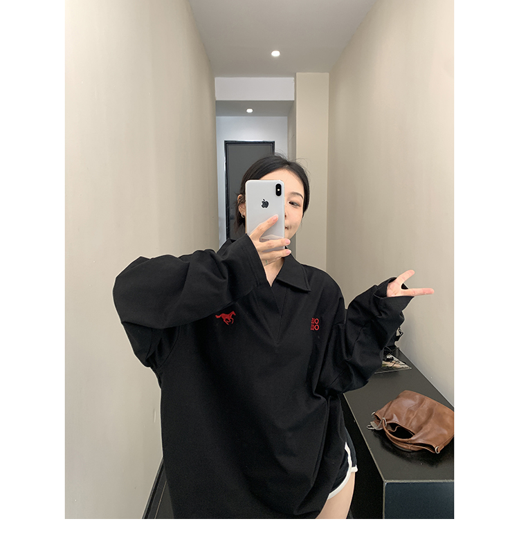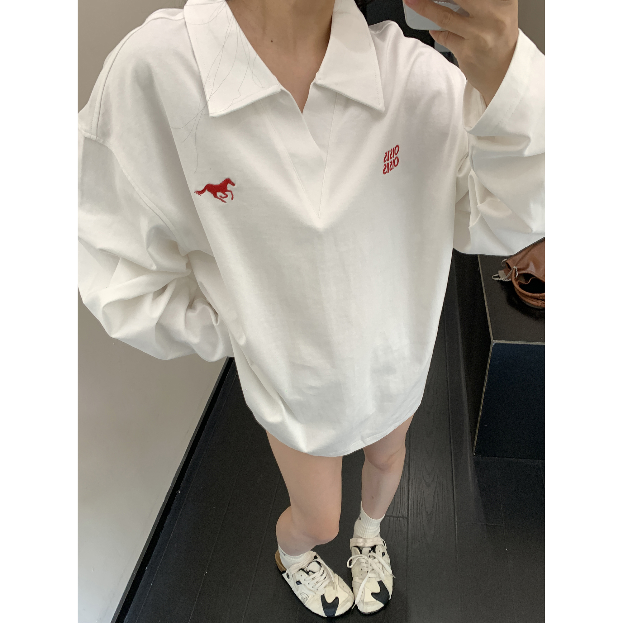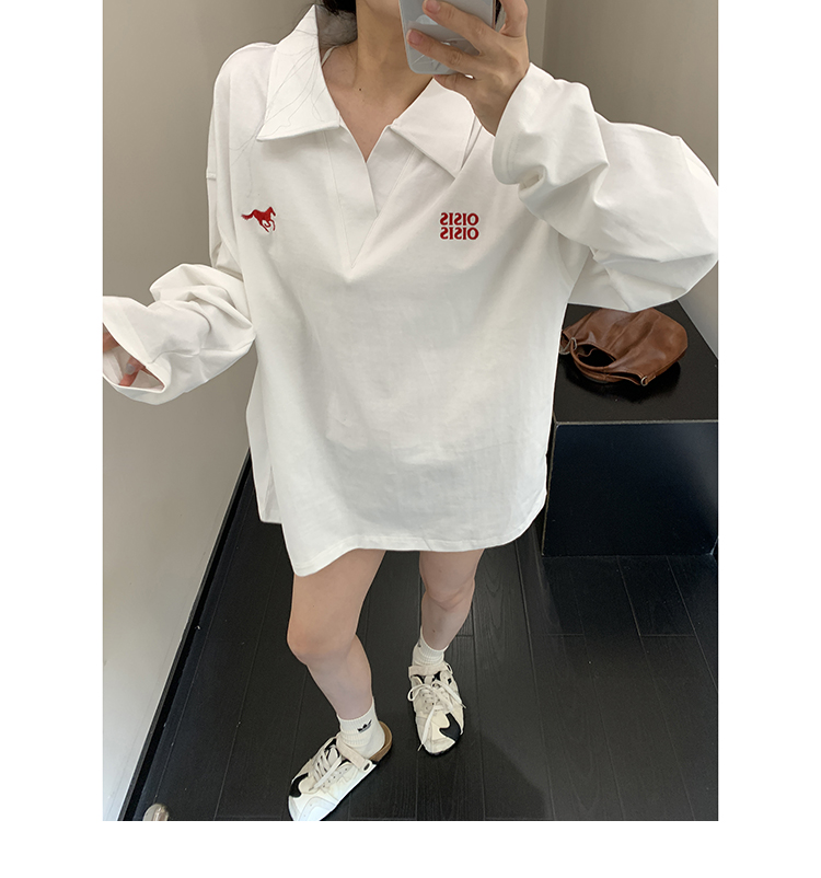 【商品名】【トップス】春 秋 冬 刺繍 Vネック 長袖 Tシャツ 【FCシリーズ】