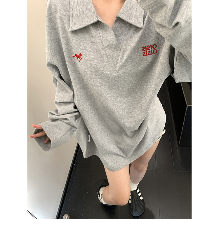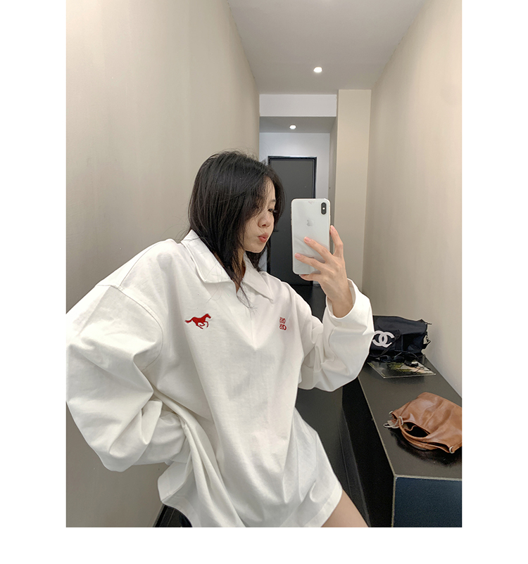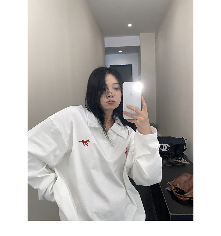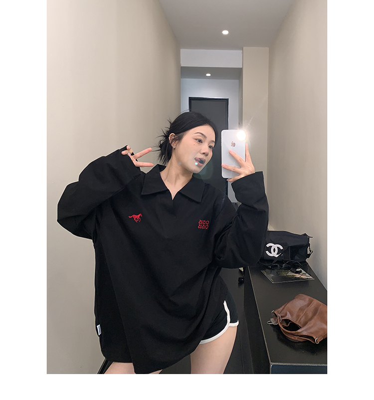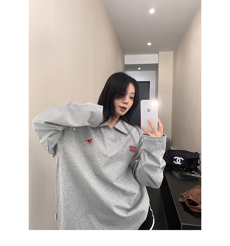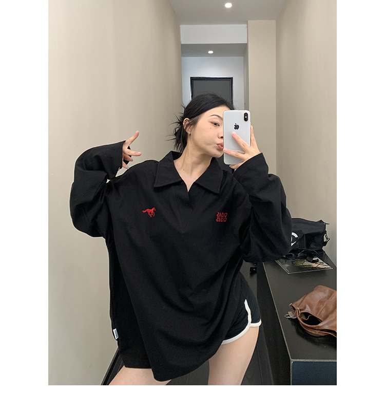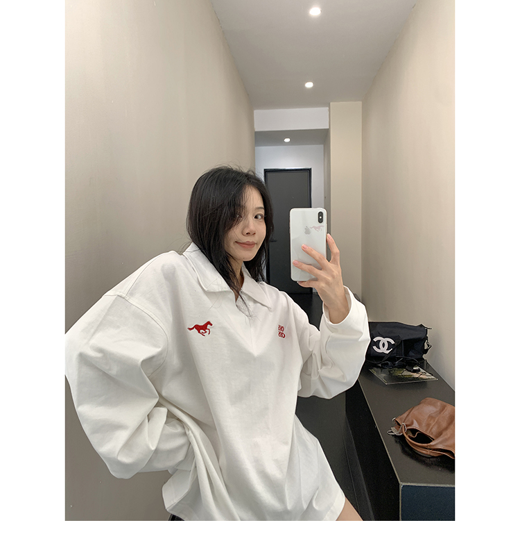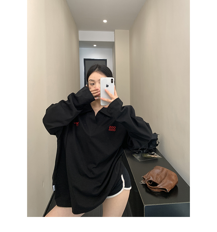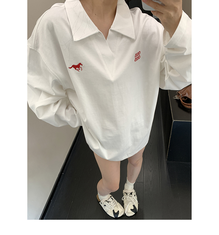 【商品名】【トップス】春 秋 冬 刺繍 Vネック 長袖 Tシャツ 【FCシリーズ】