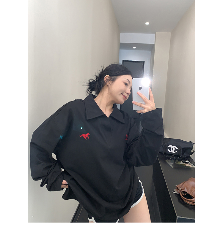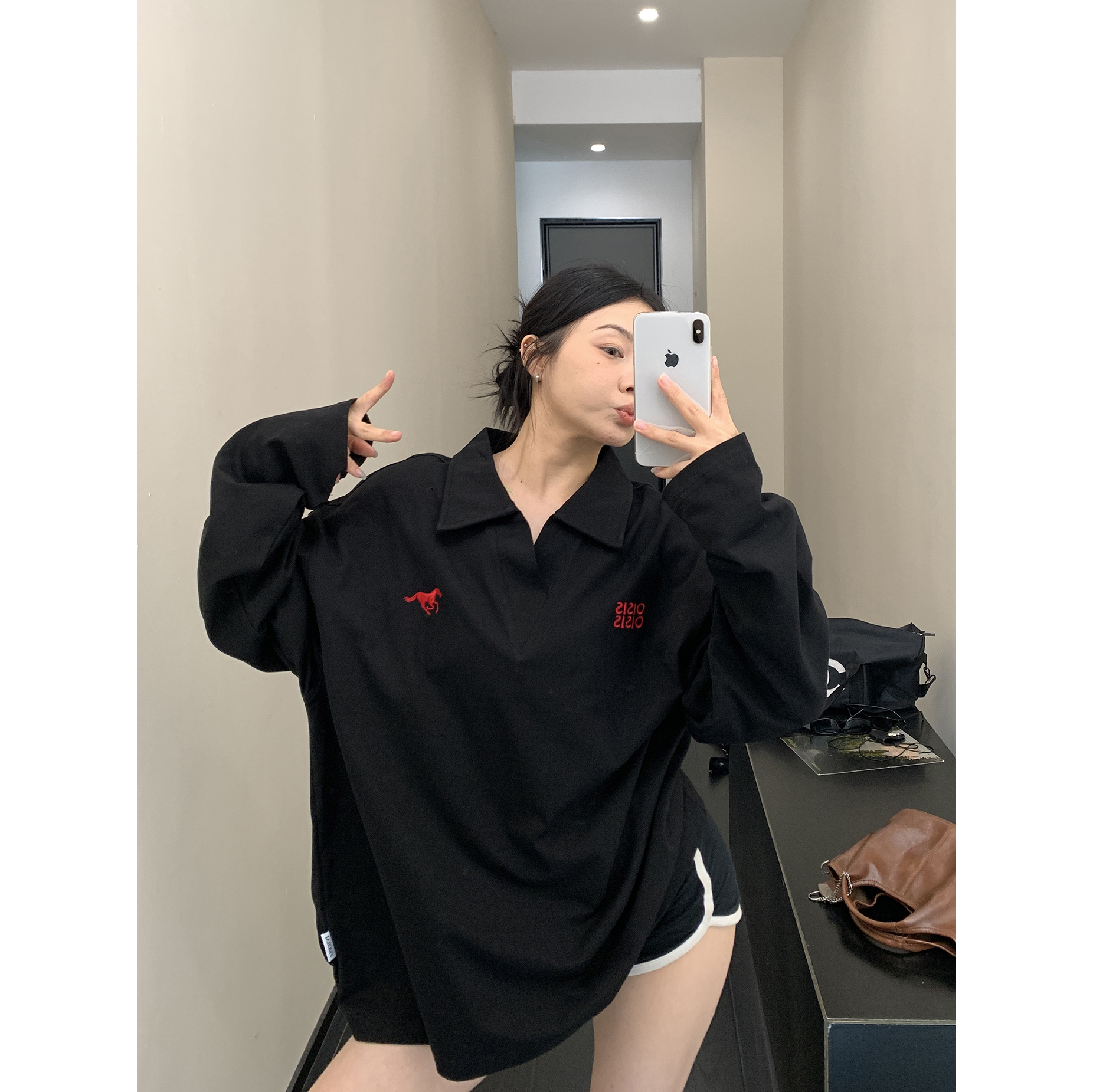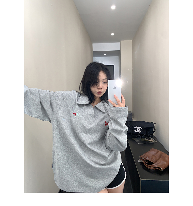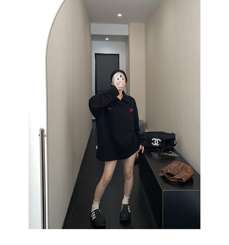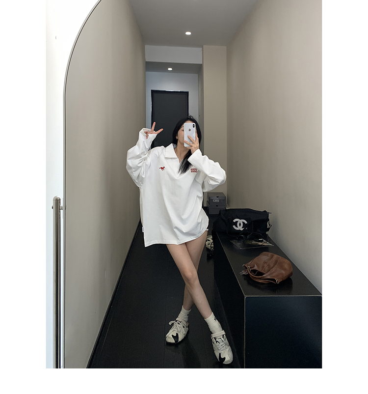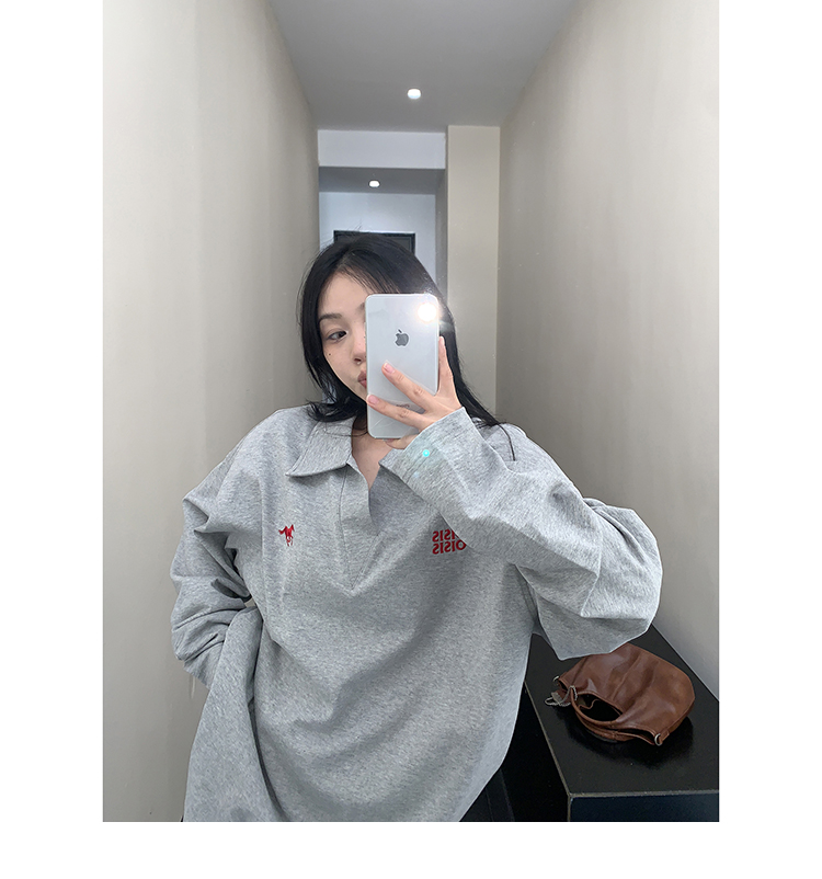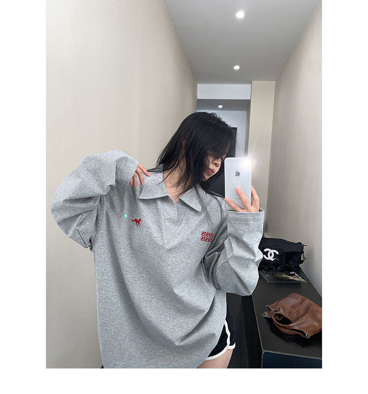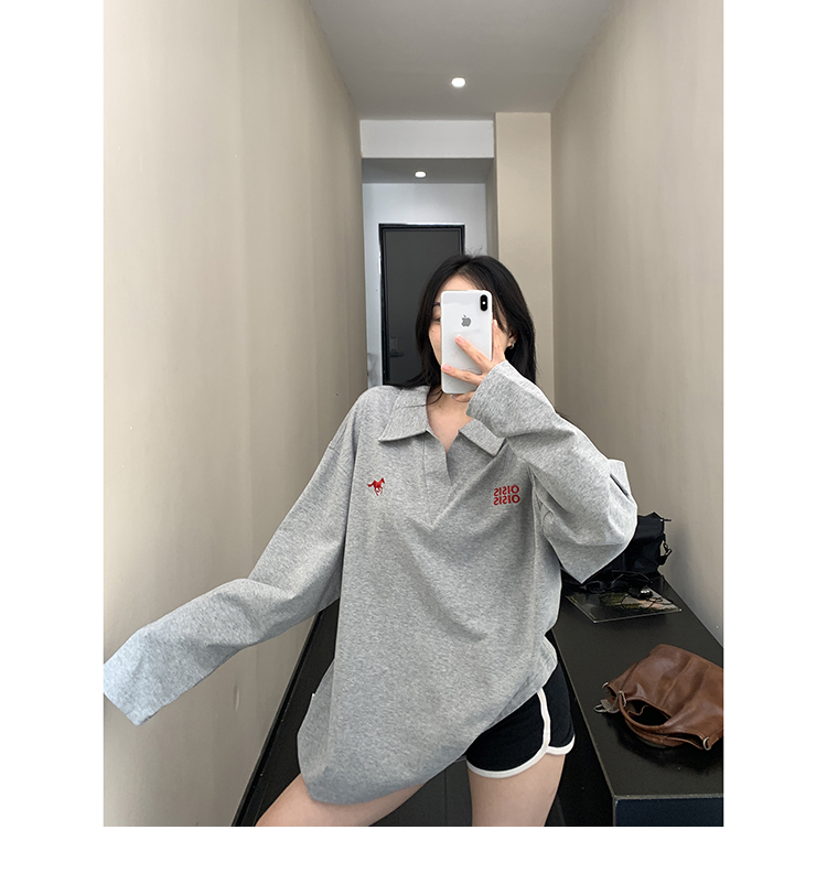 【商品名】【トップス】春 秋 冬 刺繍 Vネック 長袖 Tシャツ 【FCシリーズ】