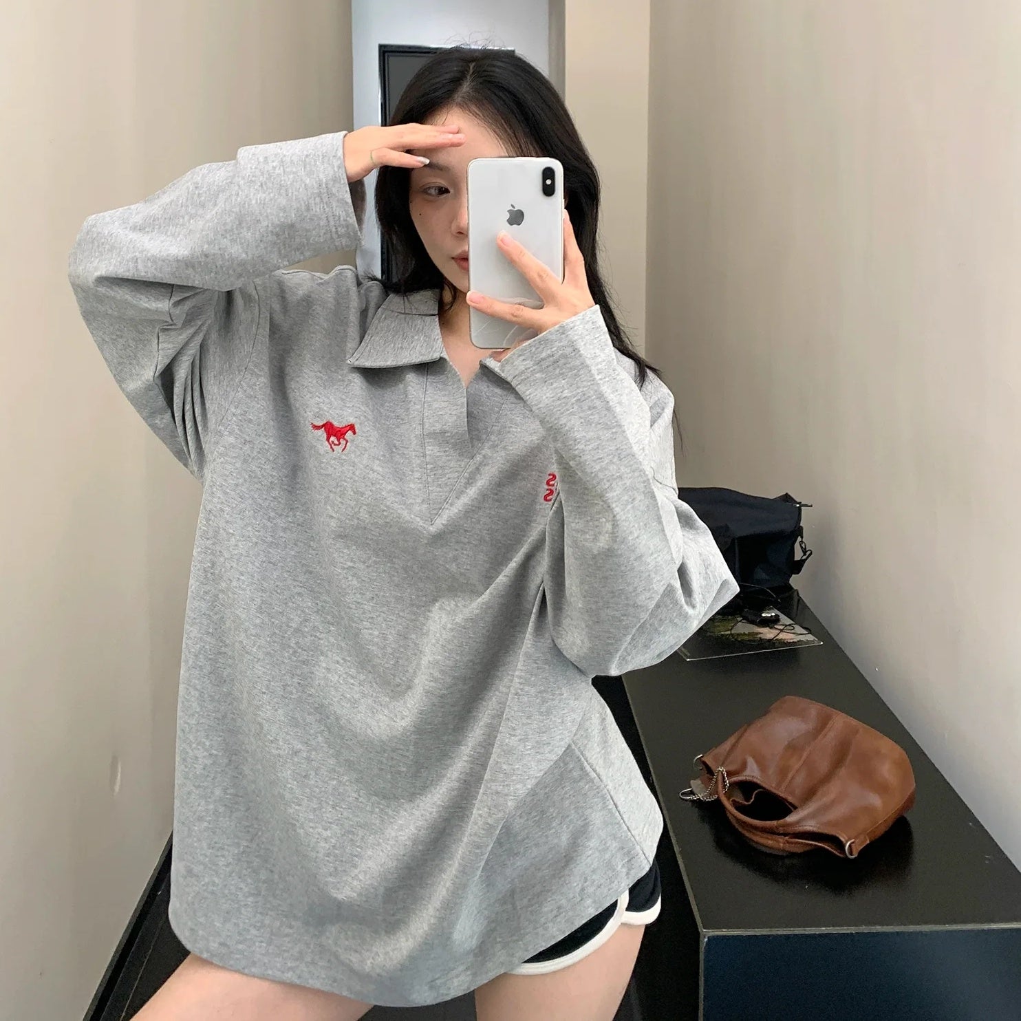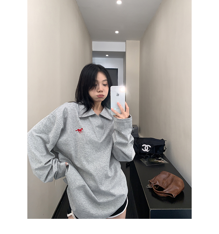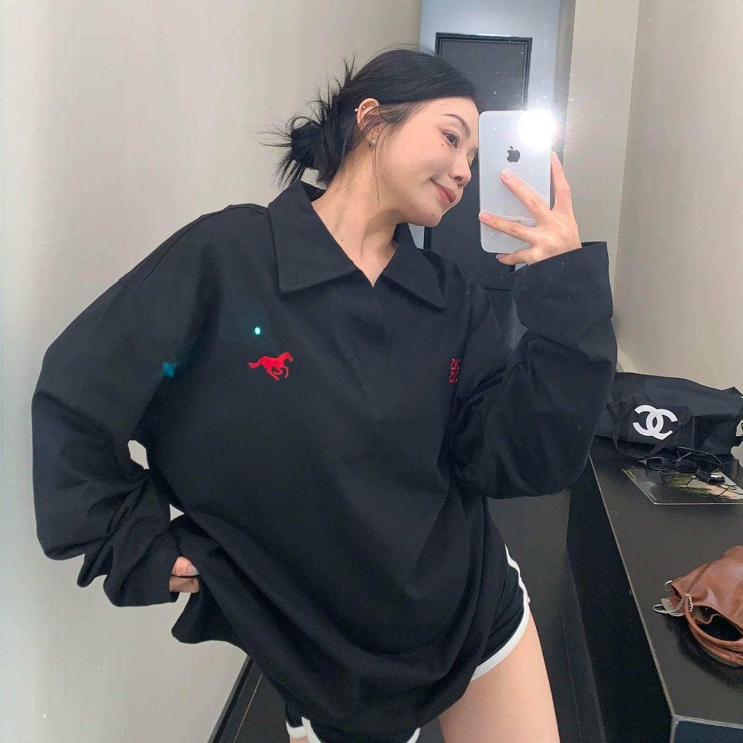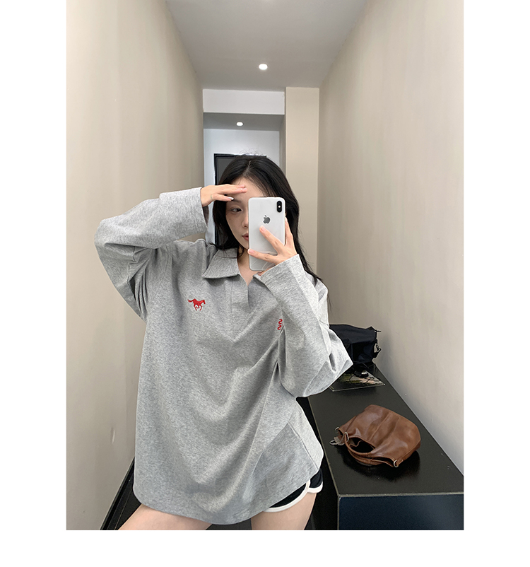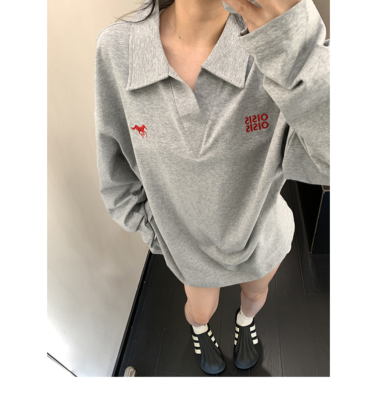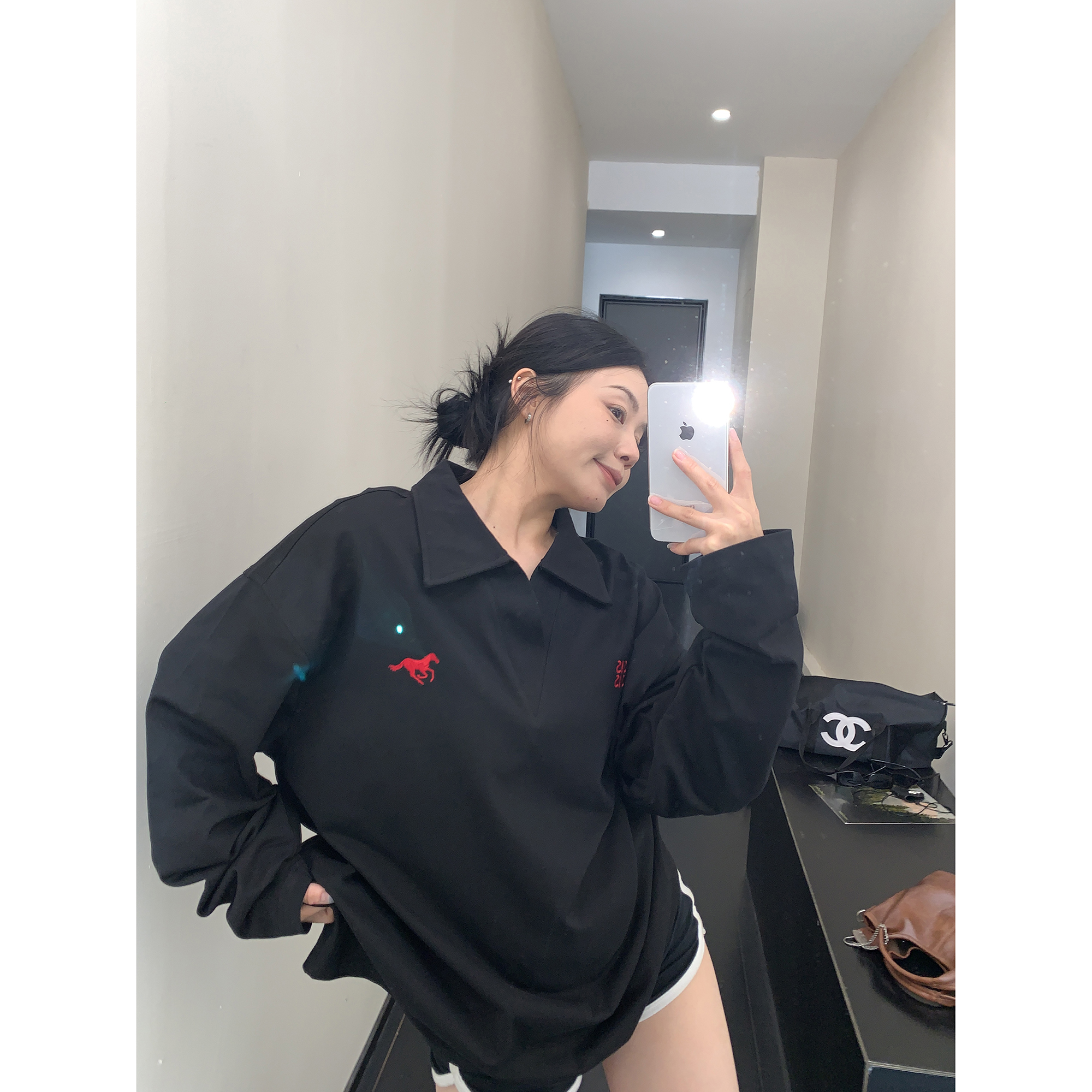 【商品名】【トップス】春 秋 冬 刺繍 Vネック 長袖 Tシャツ 【FCシリーズ】