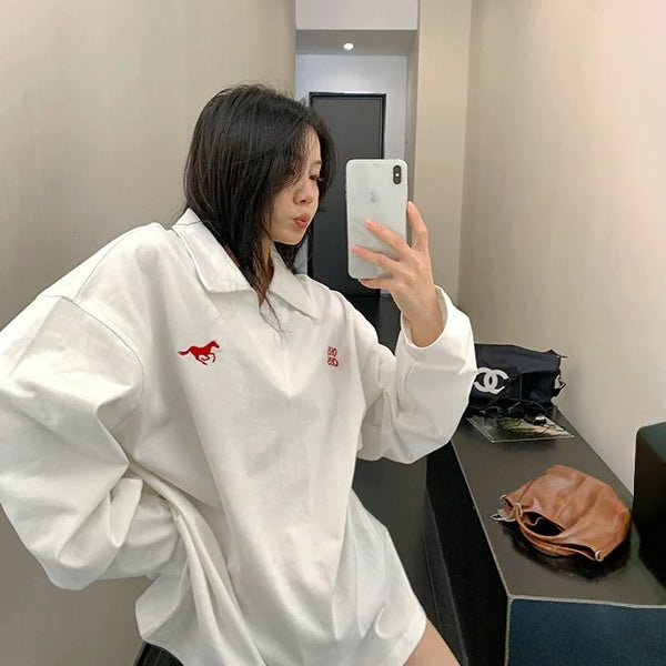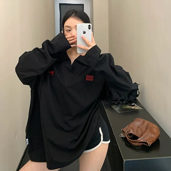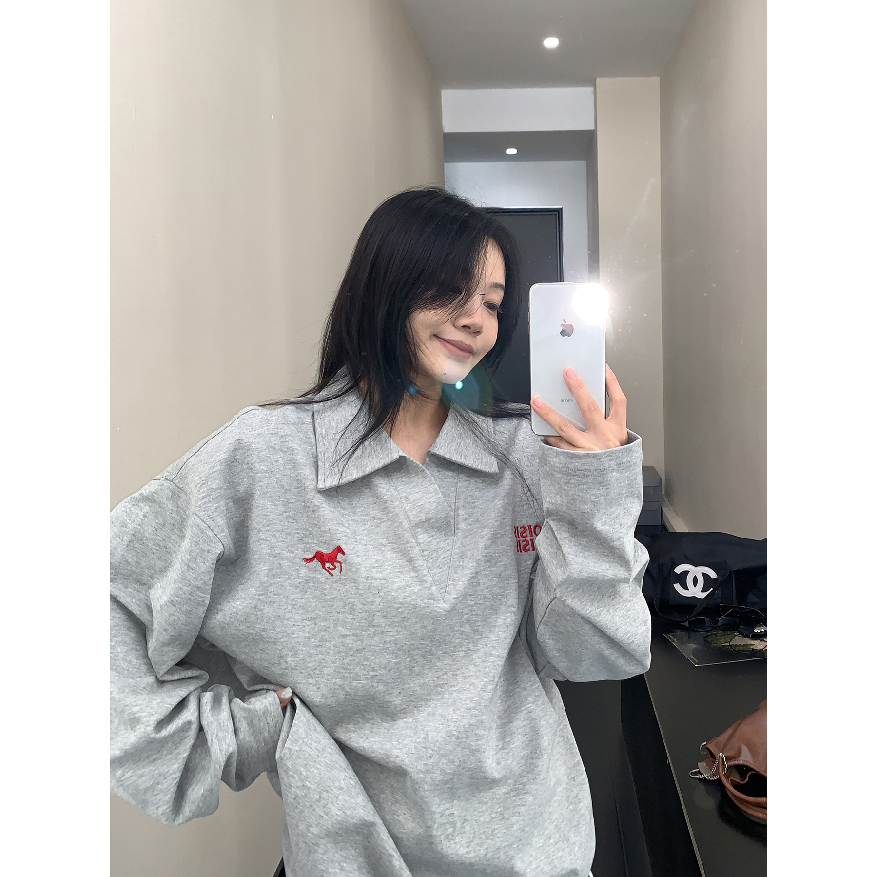 【トップス】秋冬 オーバーサイズ 刺繍 裏起毛 フード付き スウェットシャツ パーカー【FCシリーズ】