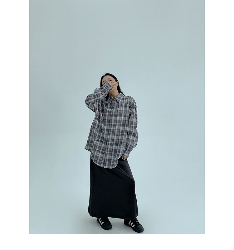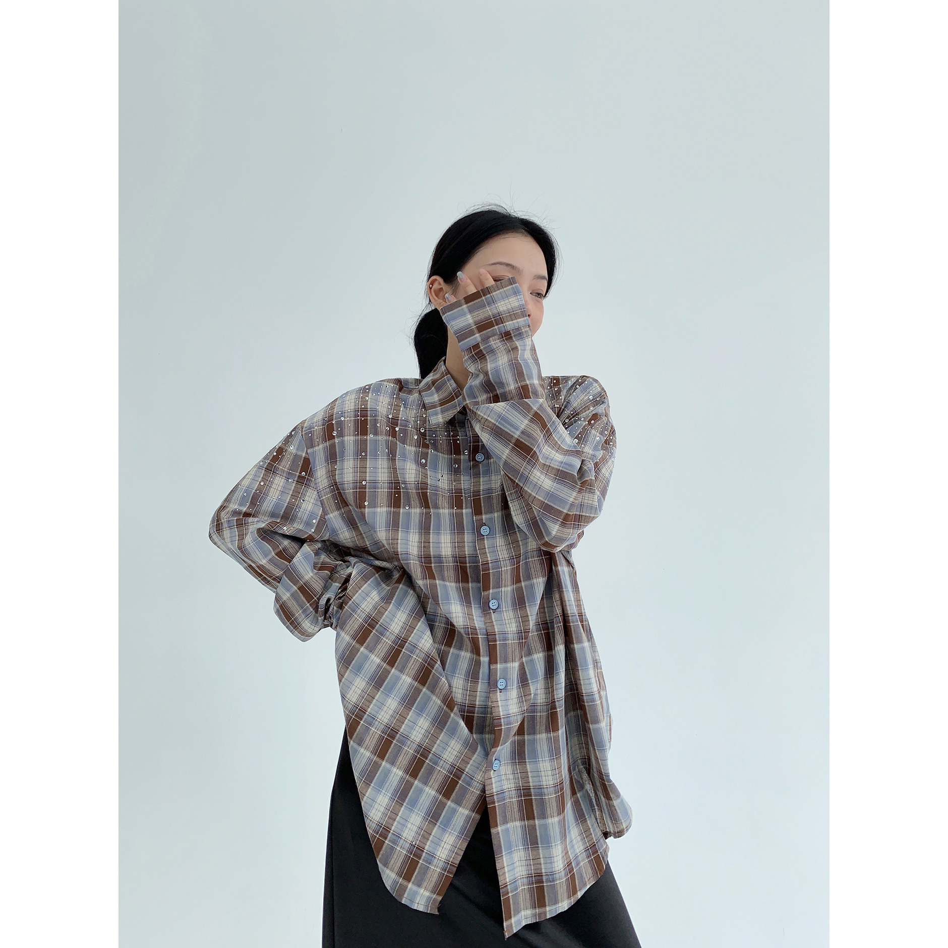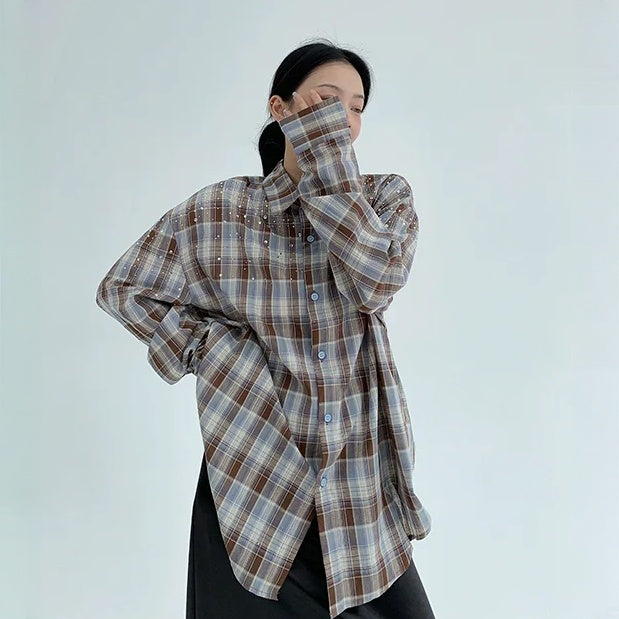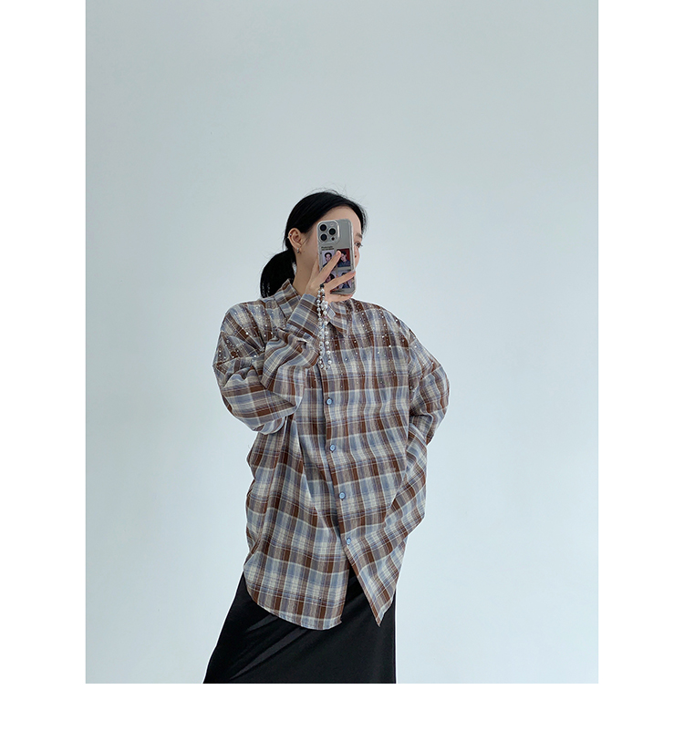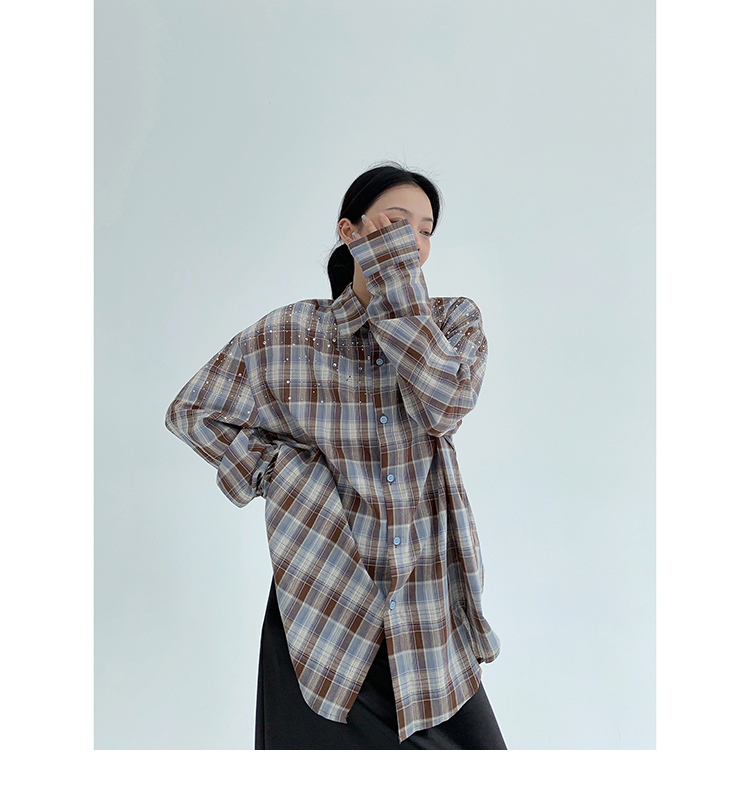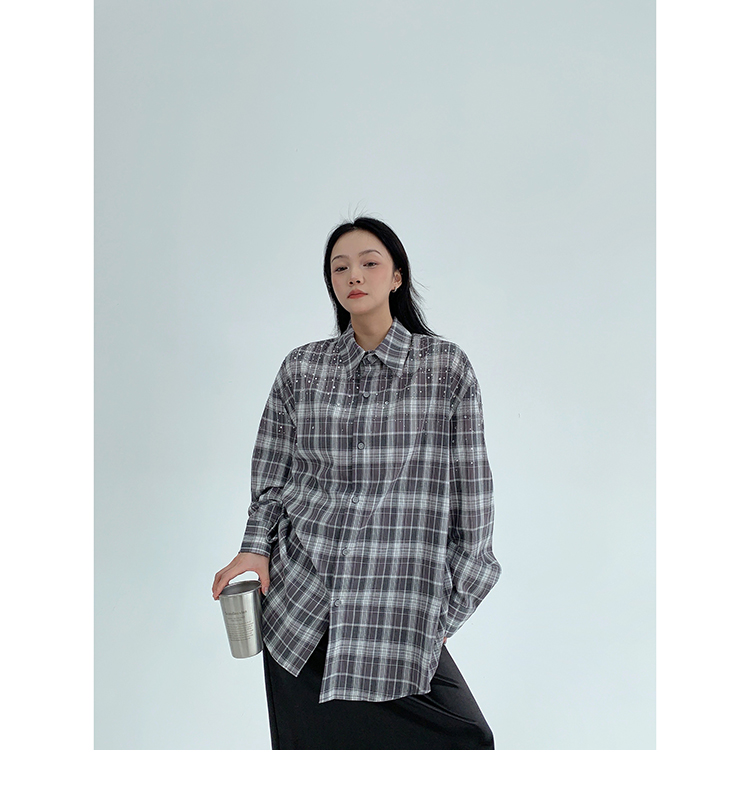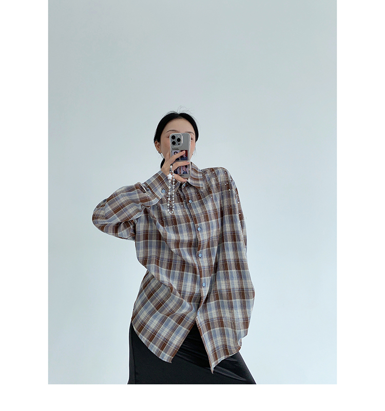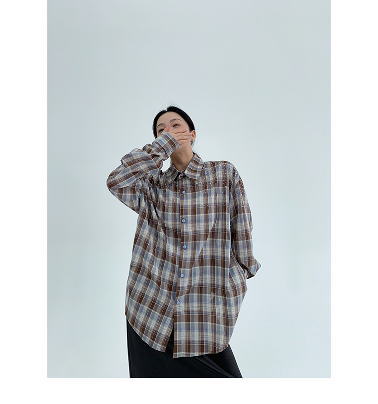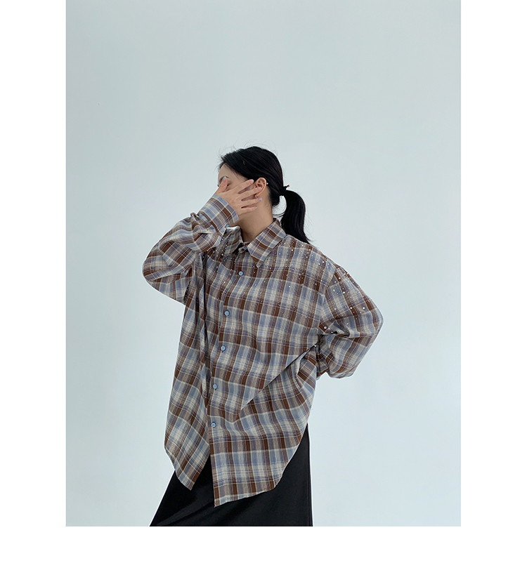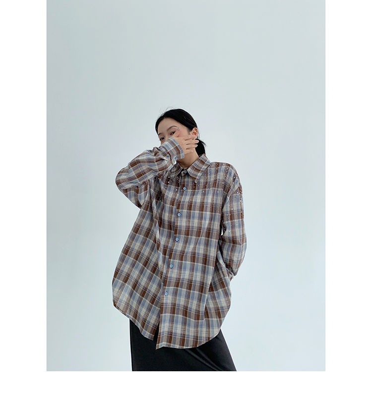 【商品名】【トップス】春 秋 冬 レトロ ラインストーン チェック 長袖シャツ 【FCシリーズ】