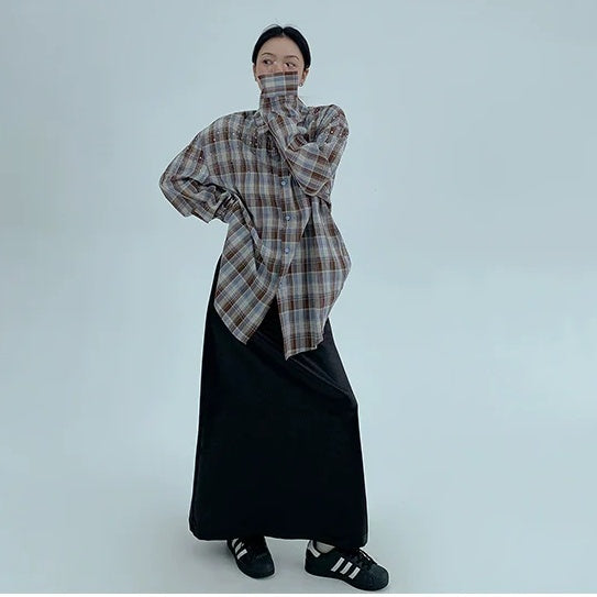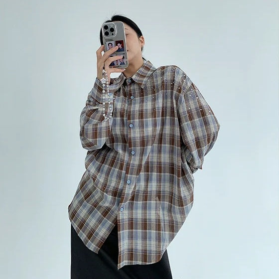 【トップス】春 秋 冬 レトロ ラインストーン チェック 長袖シャツ 【FCシリーズ】