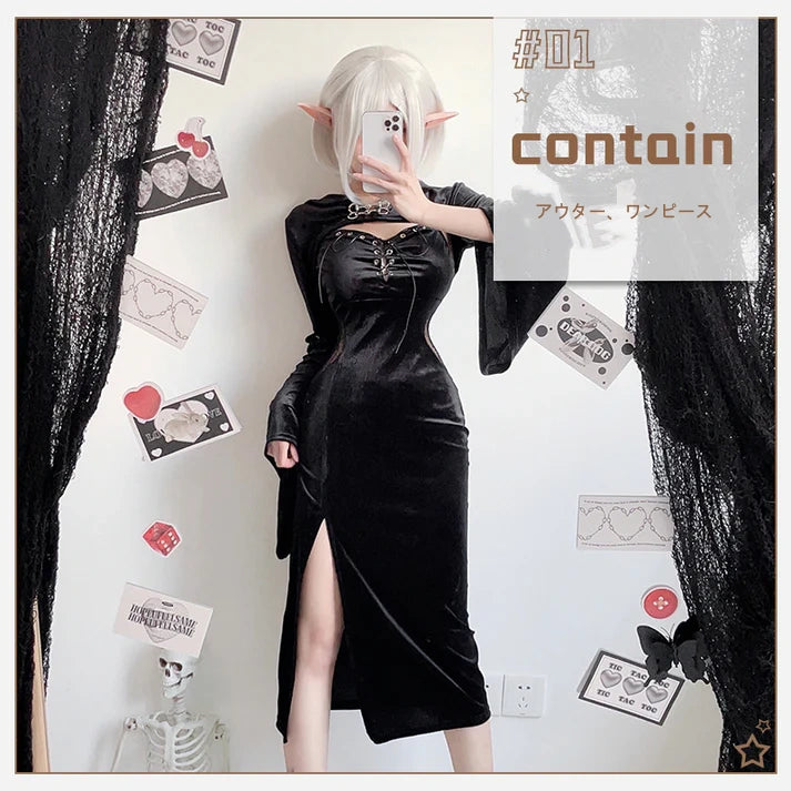 【ハロウィン】衣装 レディース ゴシック ダーク ロングドレス 魔女 吸血鬼 花嫁 コスチューム