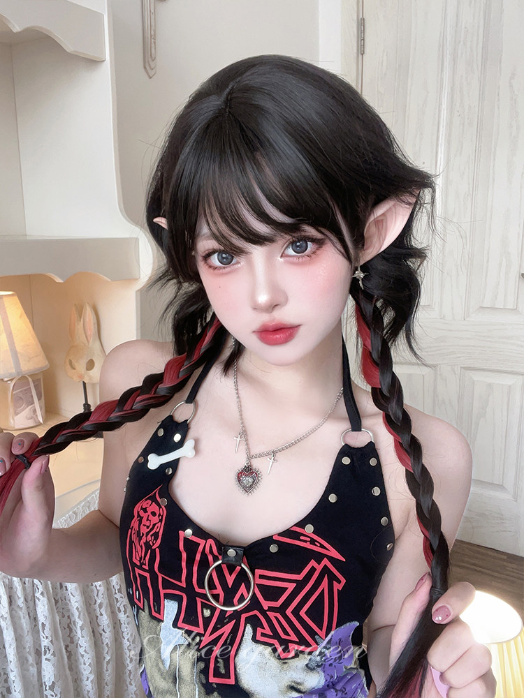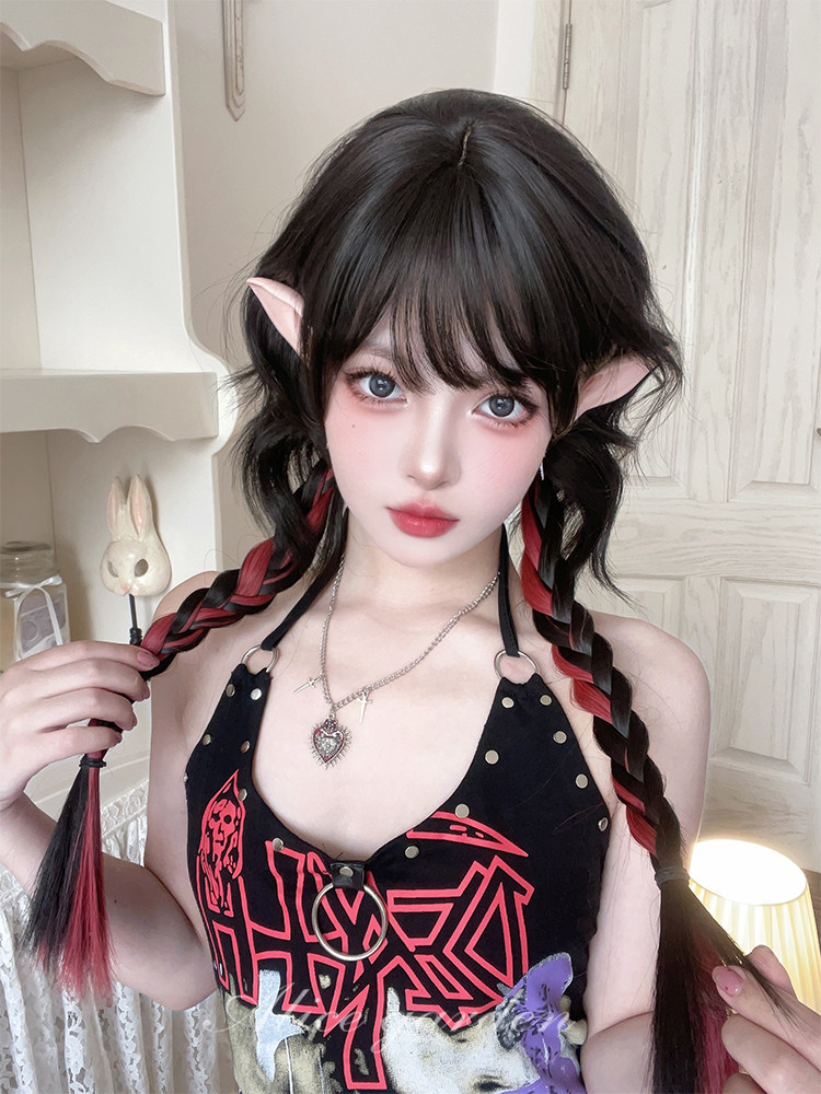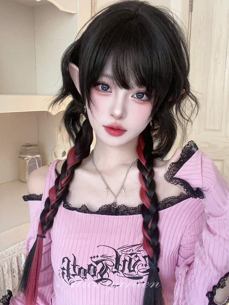 【商品名】【ハロウィン】ウィッグ レディース ロング ミディアム 自然 前髪あり ロリータ 可愛い ツインブレード JK風 セミカール