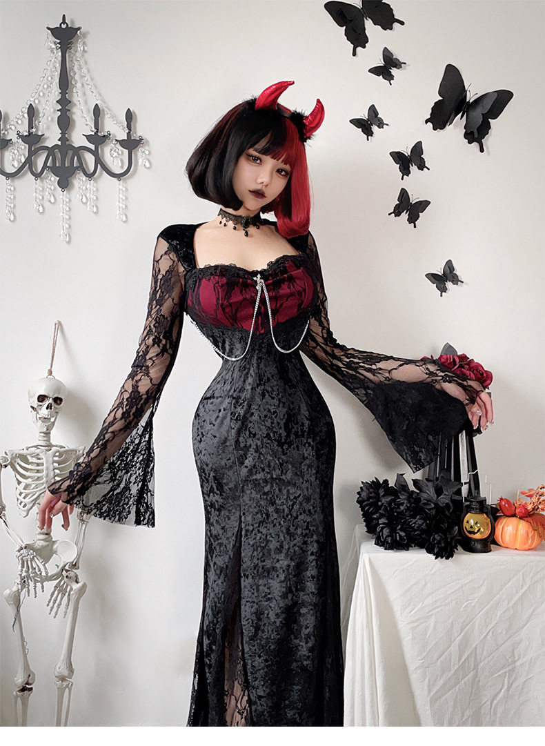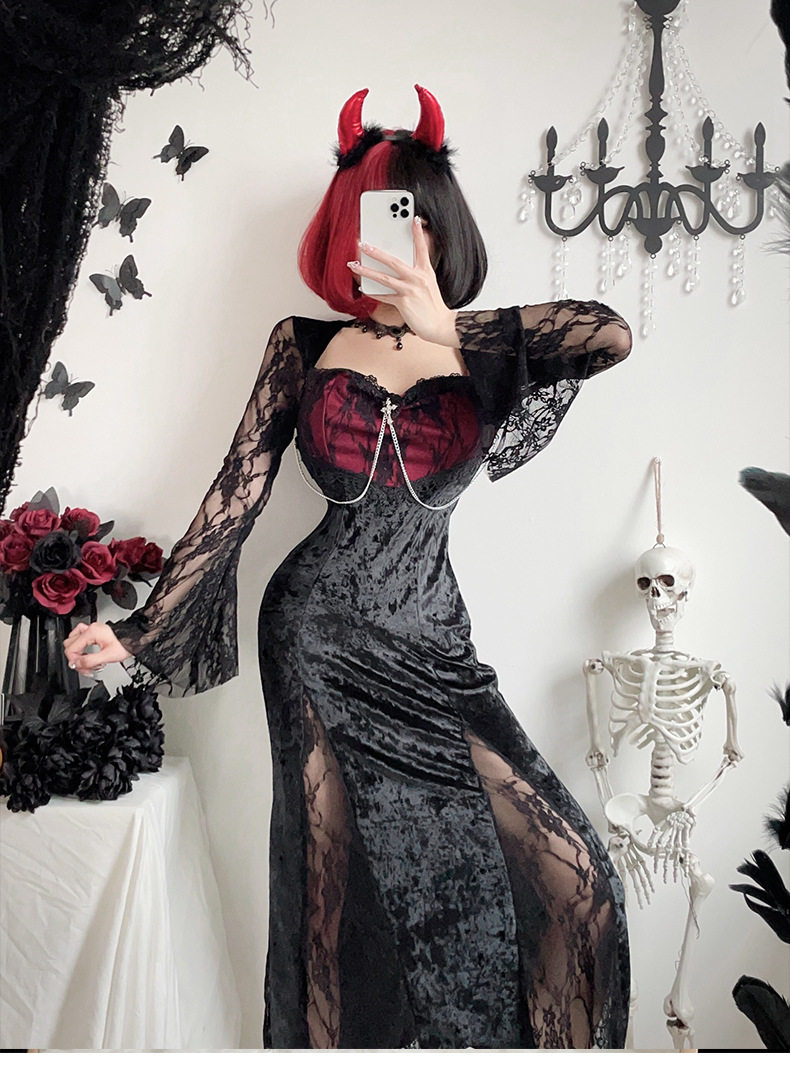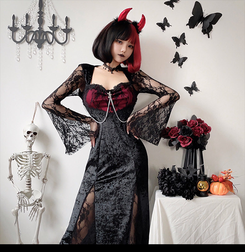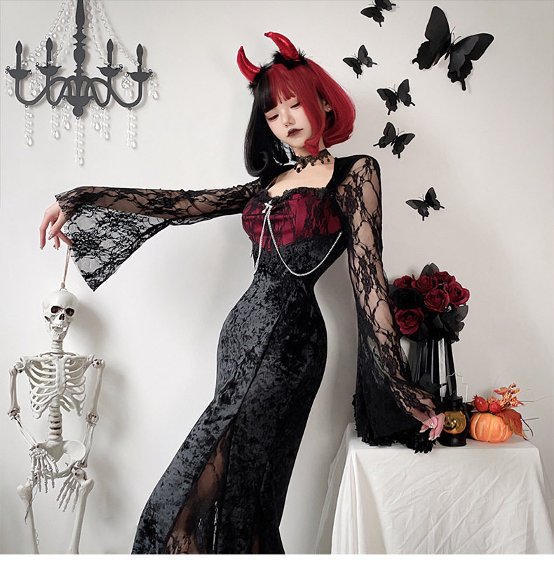 【ハロウィン】衣装 レディース ゴシック ダーク ロングドレス 魔女 吸血鬼 花嫁 ヨーロピアン