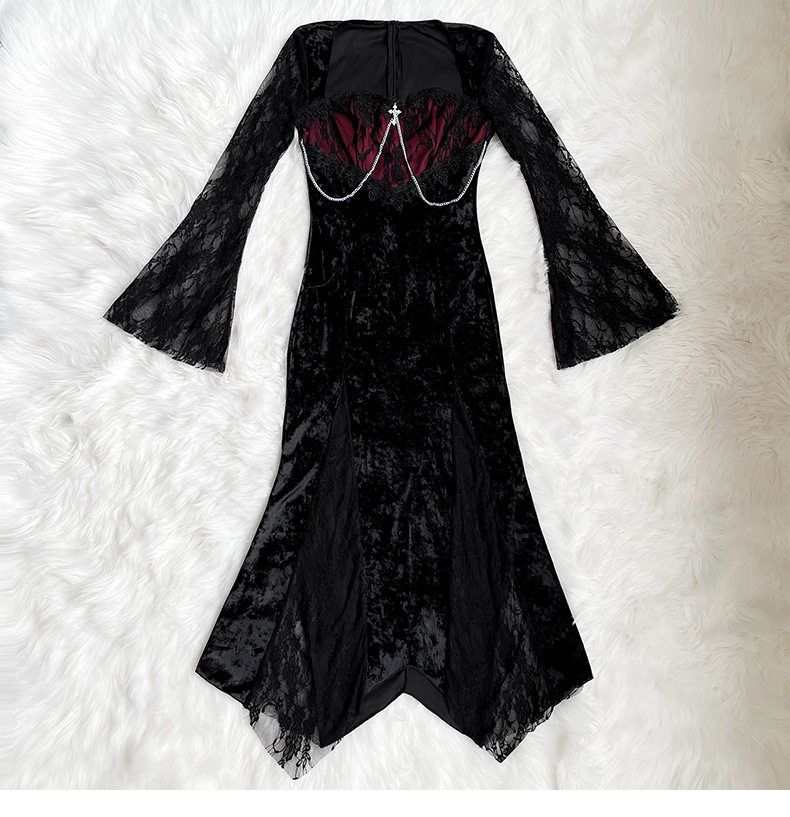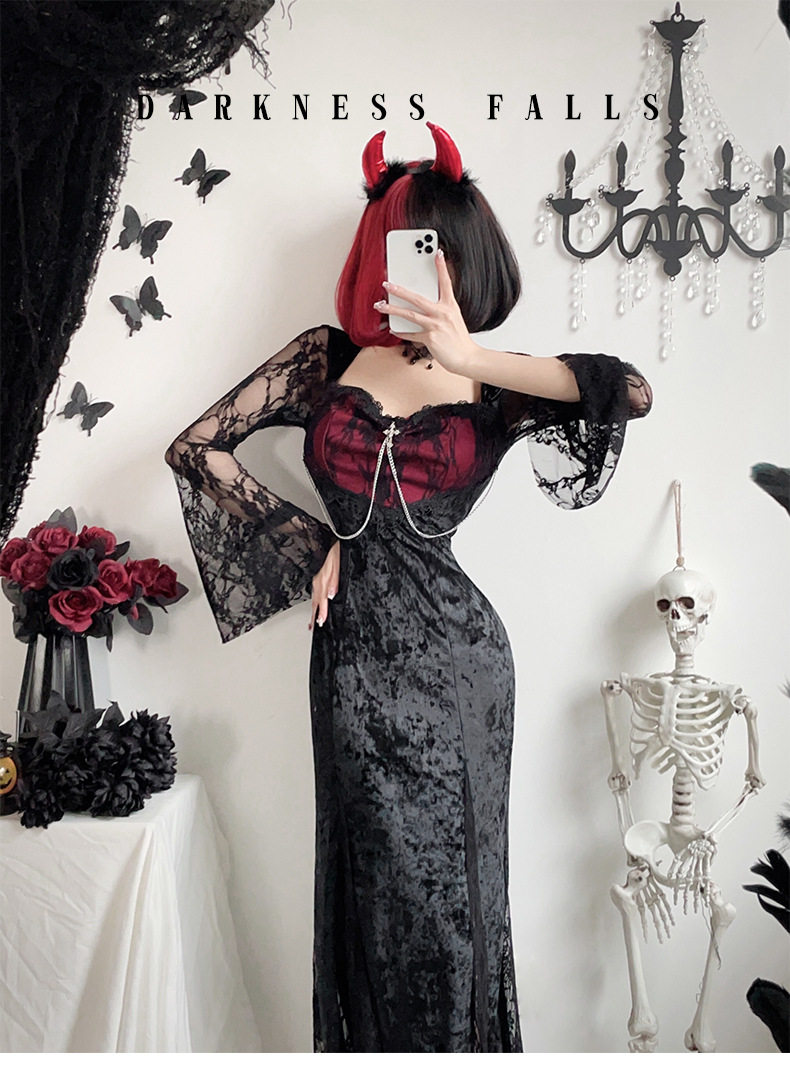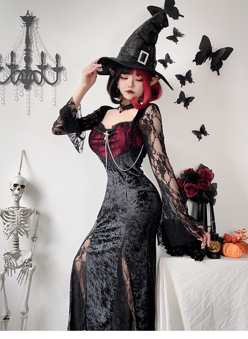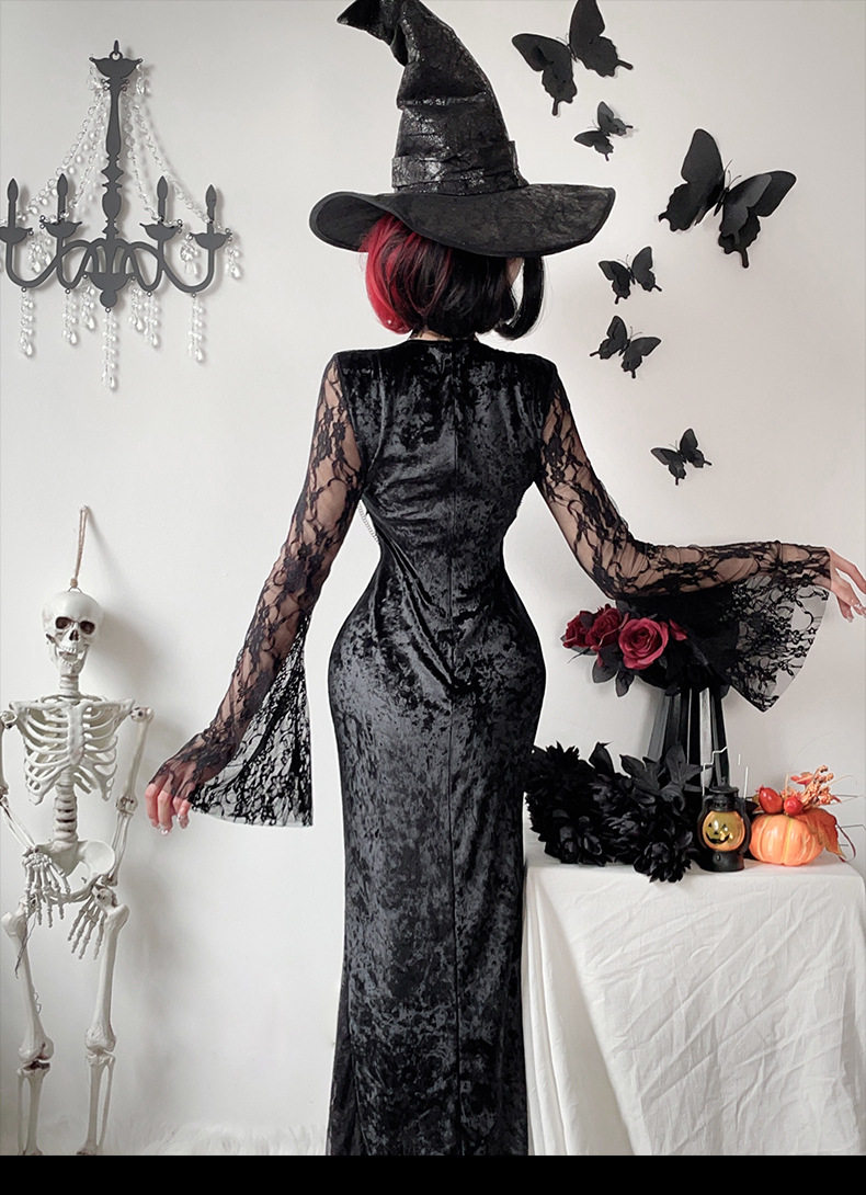 【ハロウィン】衣装 レディース ゴシック ダーク ロングドレス 魔女 吸血鬼 花嫁 ヨーロピアン