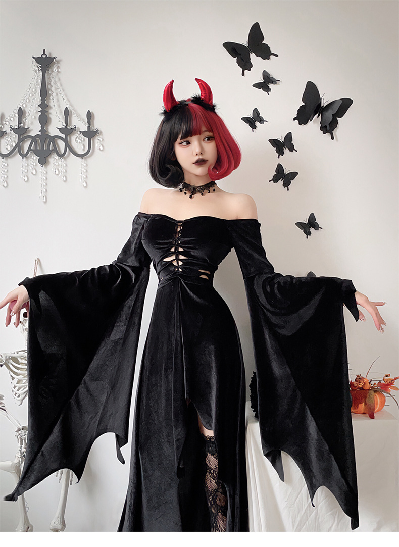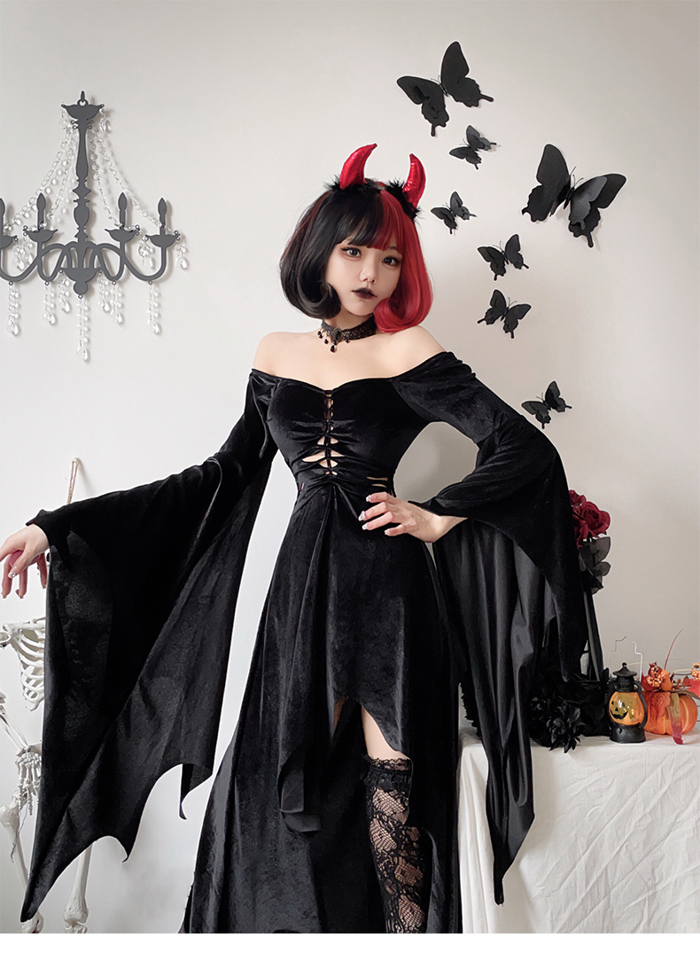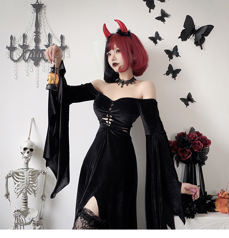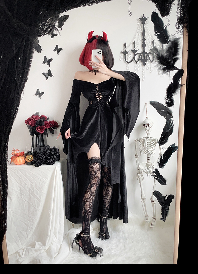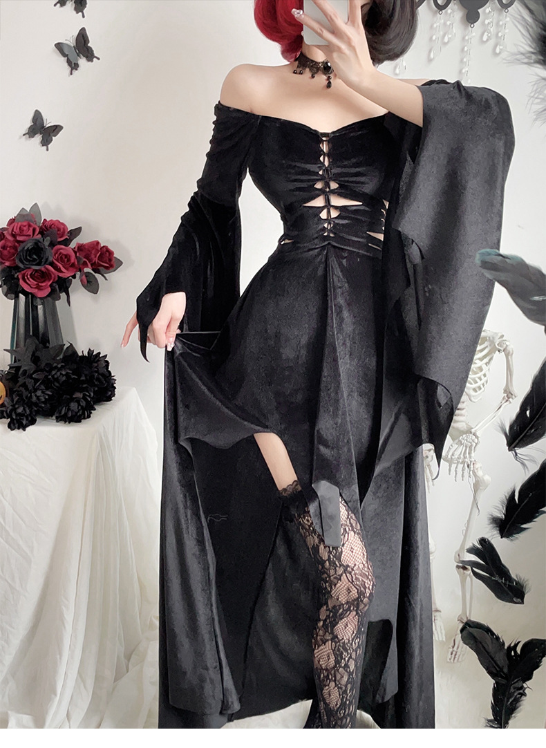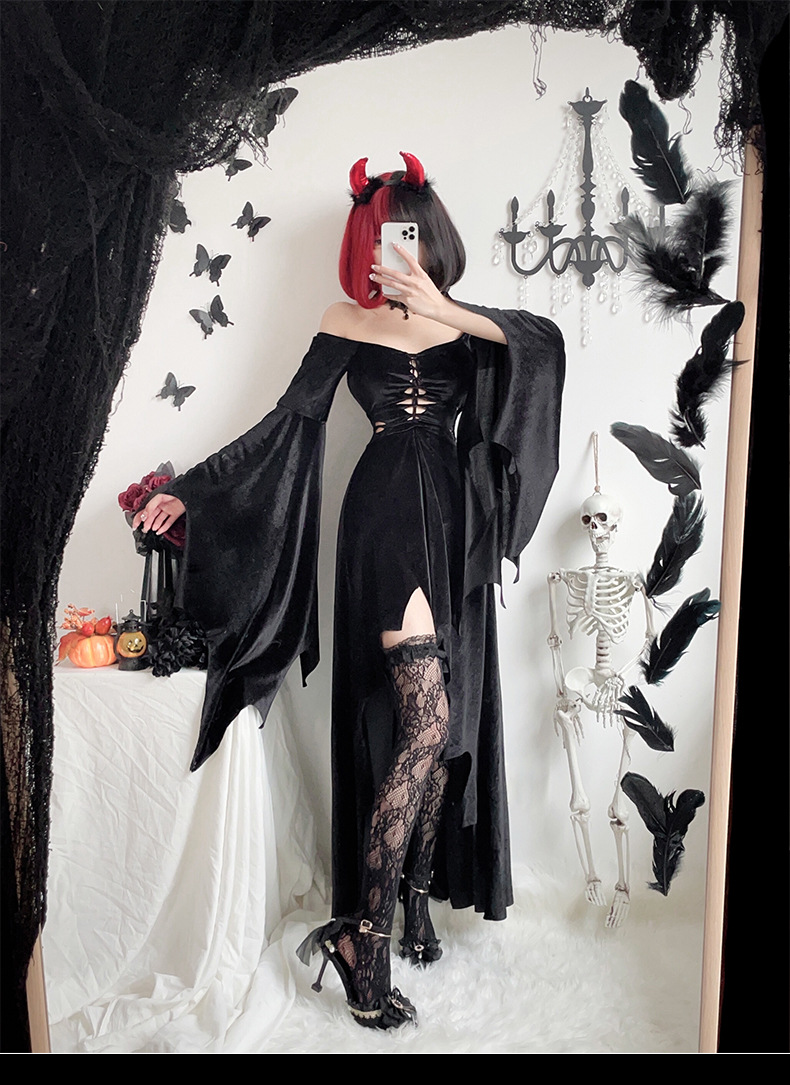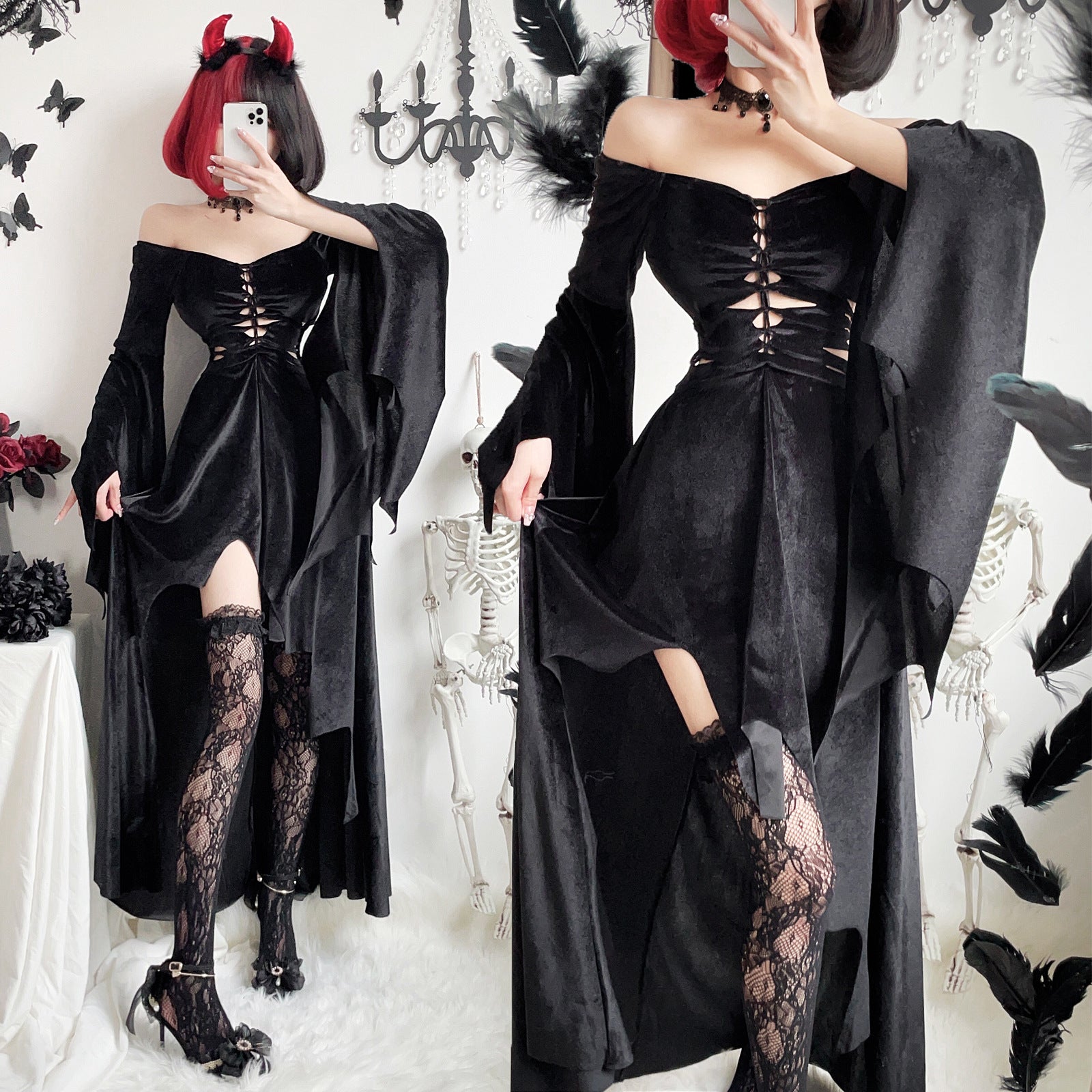 【ハロウィン】ゴシック ダーク 魔女 吸血鬼 死神 ロングドレス ブラック コスチューム