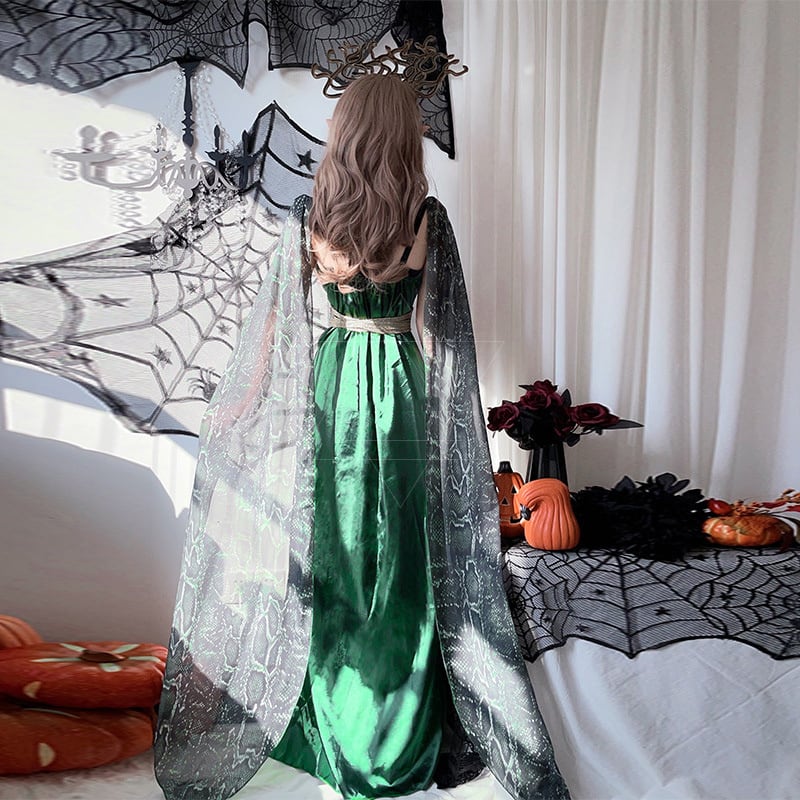【ハロウィン】レディース ギリシャ神話 メドゥーサ コスプレ ヘビヘッド マント付き ドレス 役割衣装
