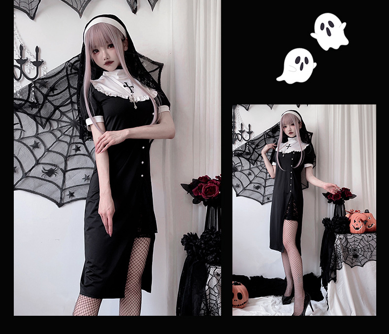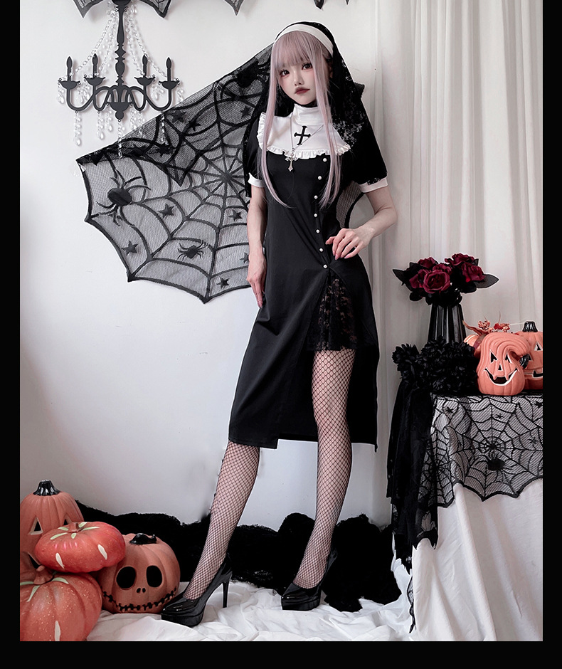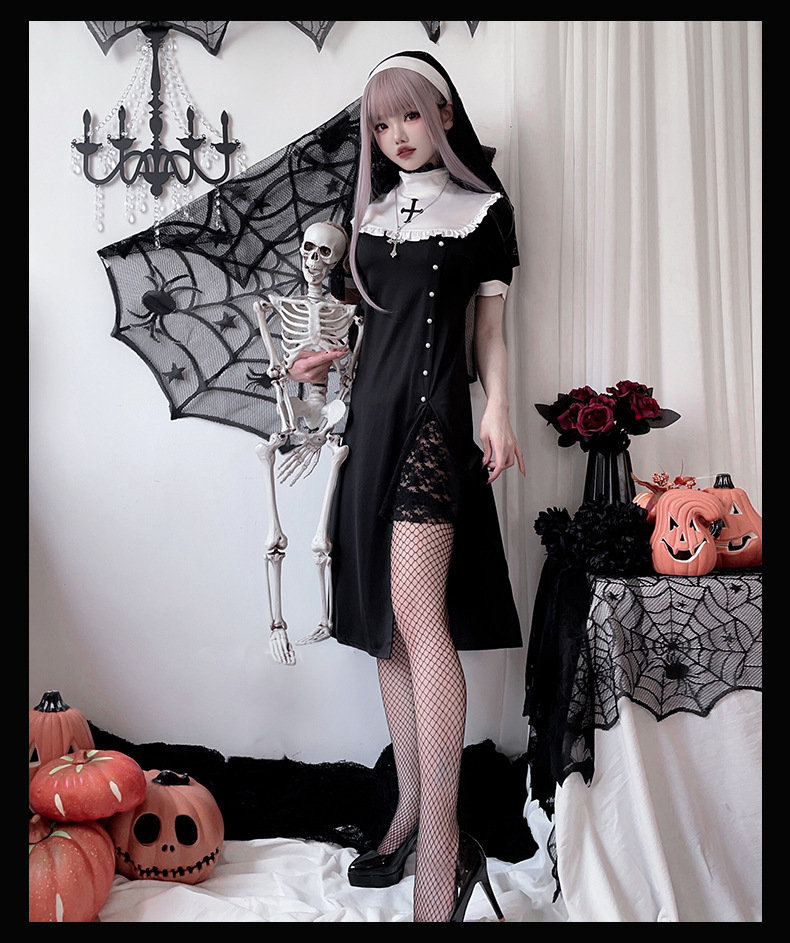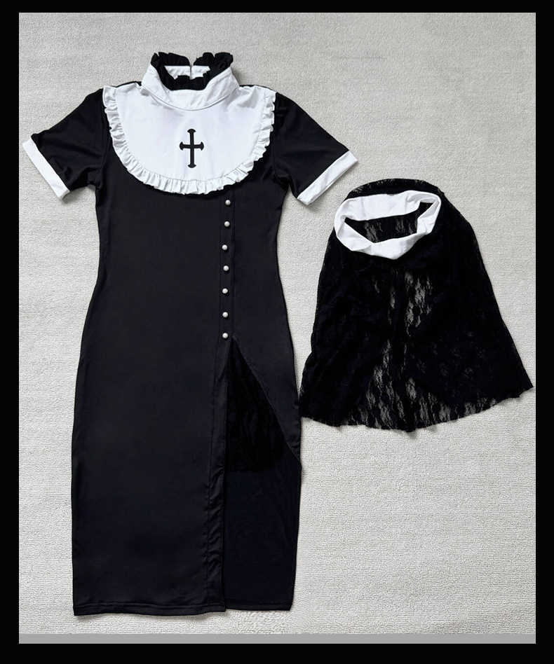 【ハロウィン】レディース 吸血鬼 修道女 十字架 ドレス ゴシック ダーク コスプレ ステージ衣装