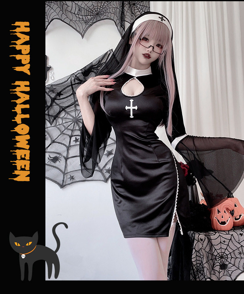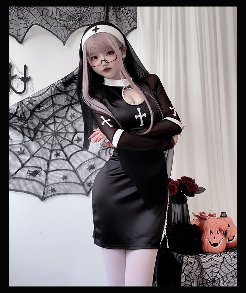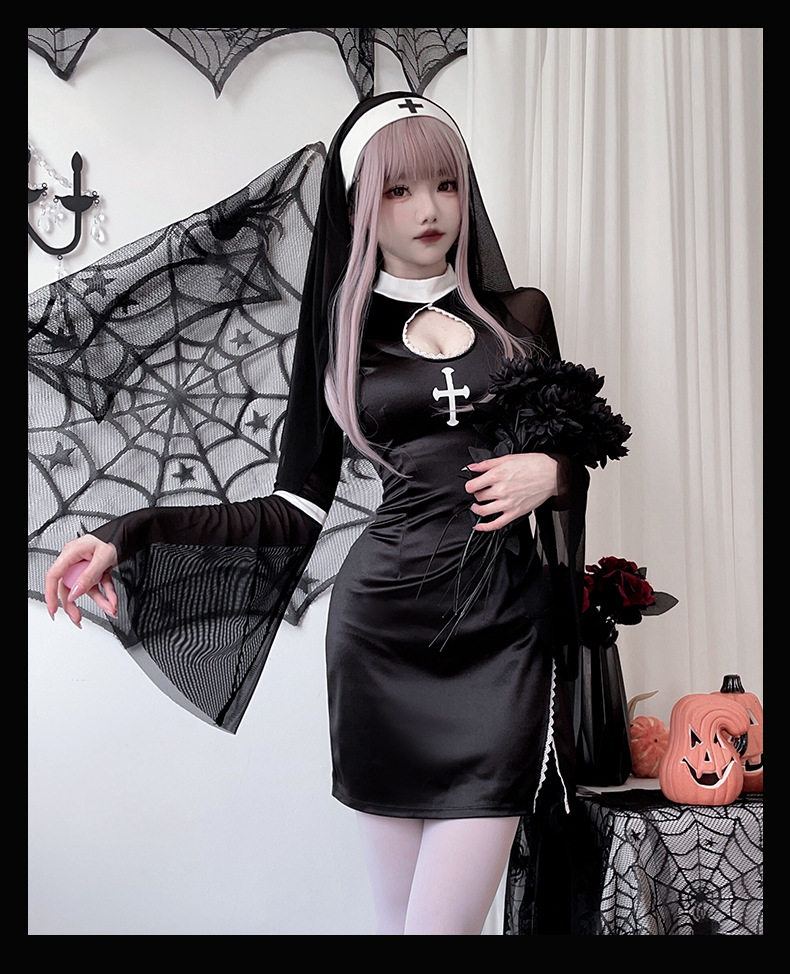 【ハロウィン】コスプレ 吸血鬼 修道女 コスチューム 十字架 ダークゴシック風 ロールプレイ 衣装 レディース