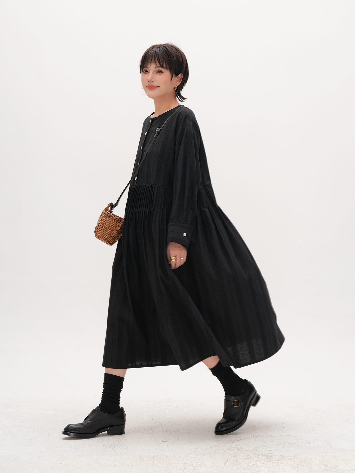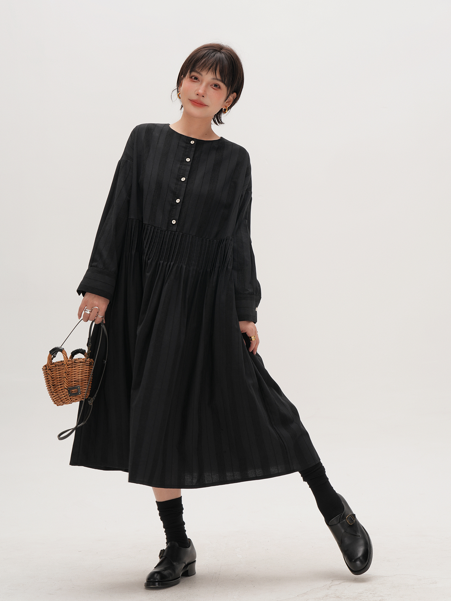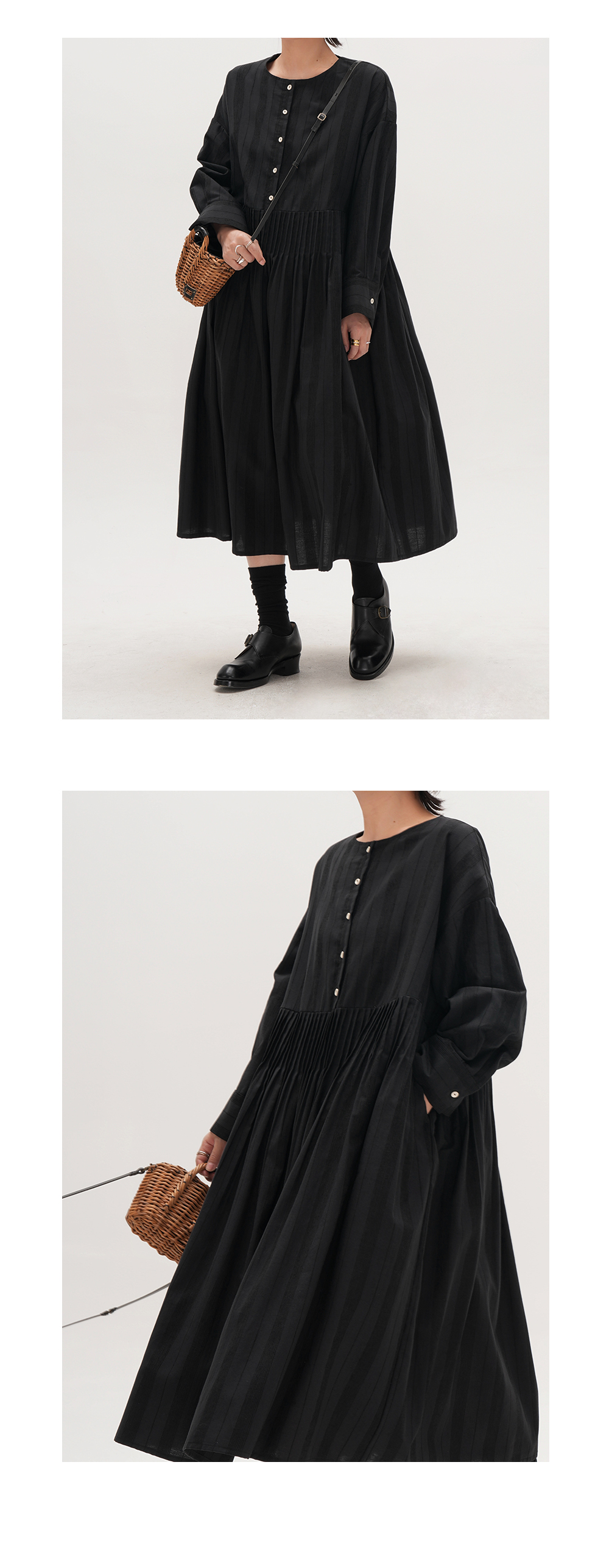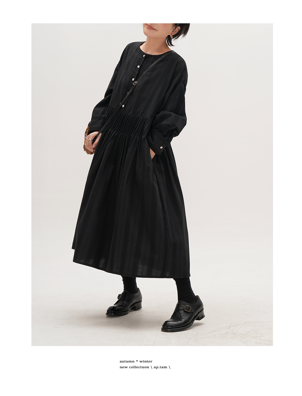 【ワンピース】フレンチレトロ 切替デザイン 大ポケット 長袖 ワンピース 秋新作 ゆったり 【JZシリーズ】