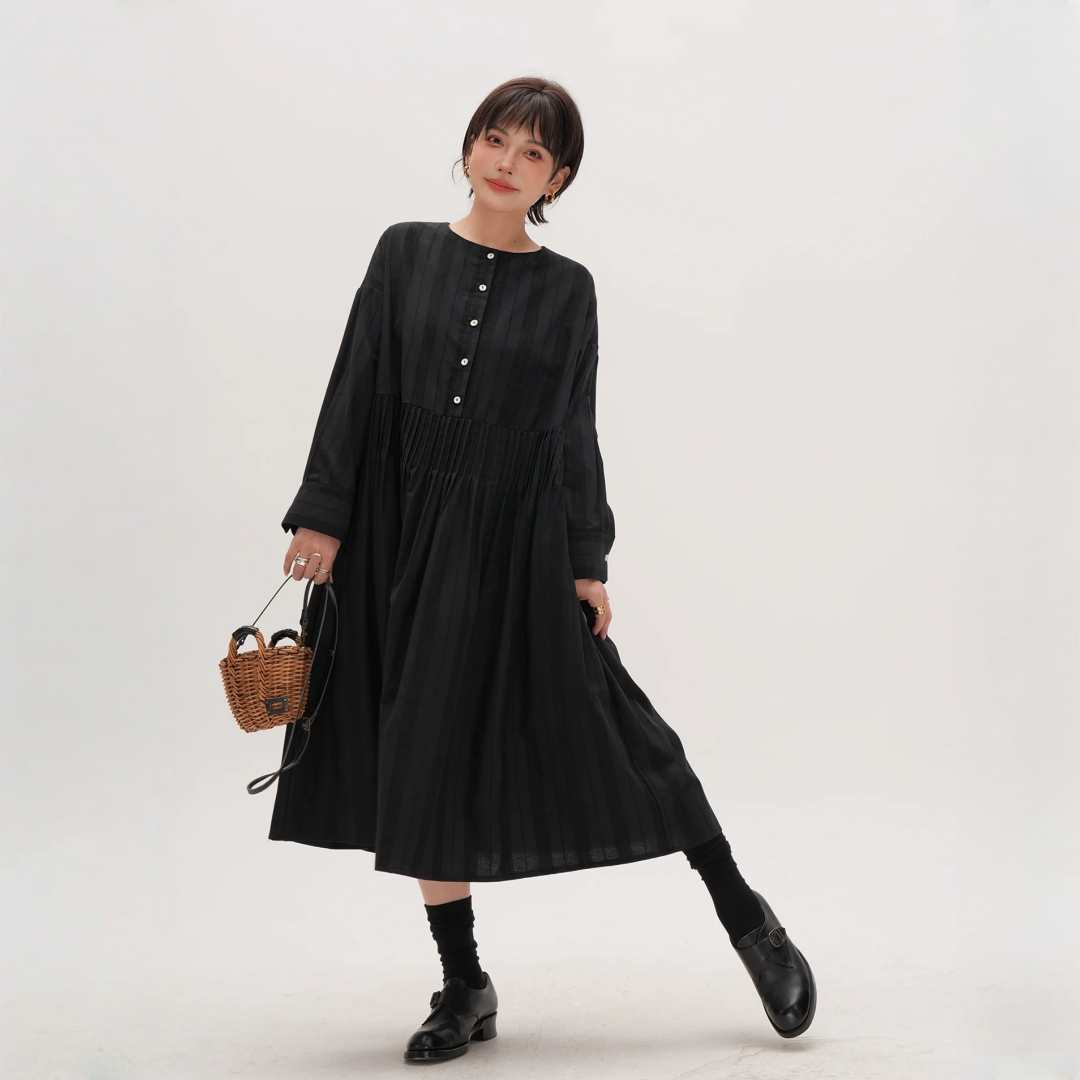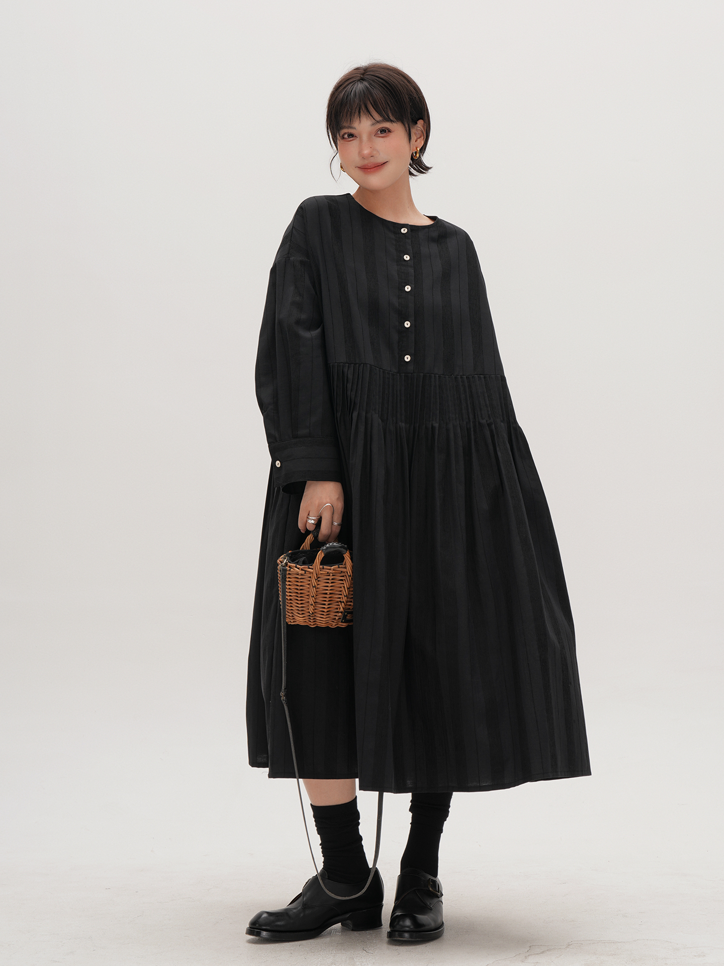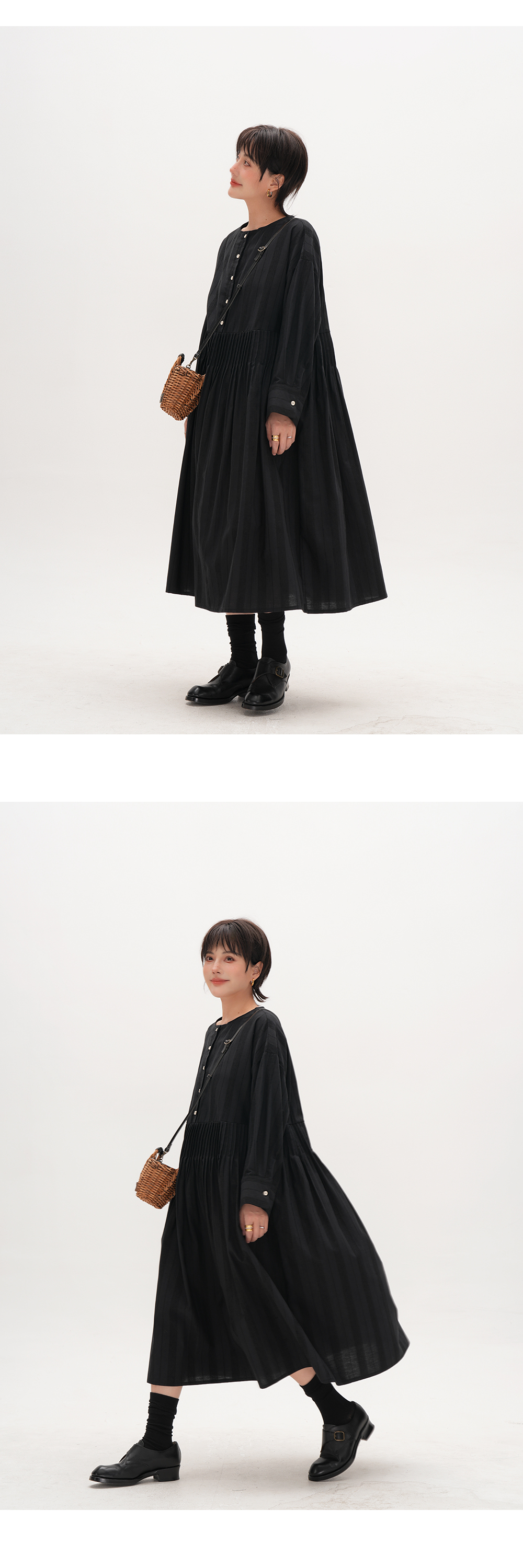 【ワンピース】フレンチレトロ 切替デザイン 大ポケット 長袖 ワンピース 秋新作 ゆったり 【JZシリーズ】