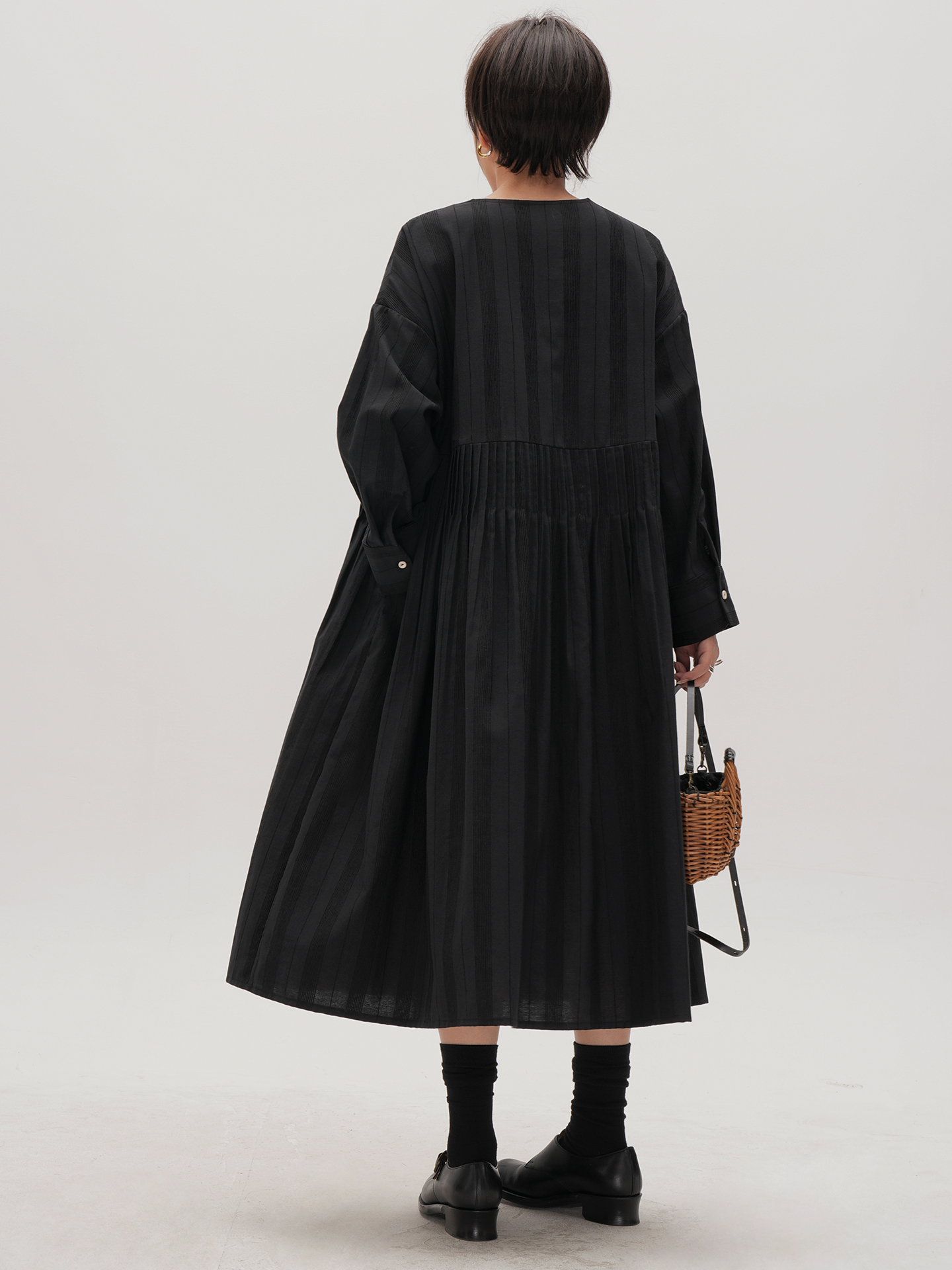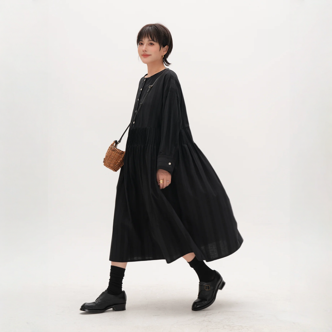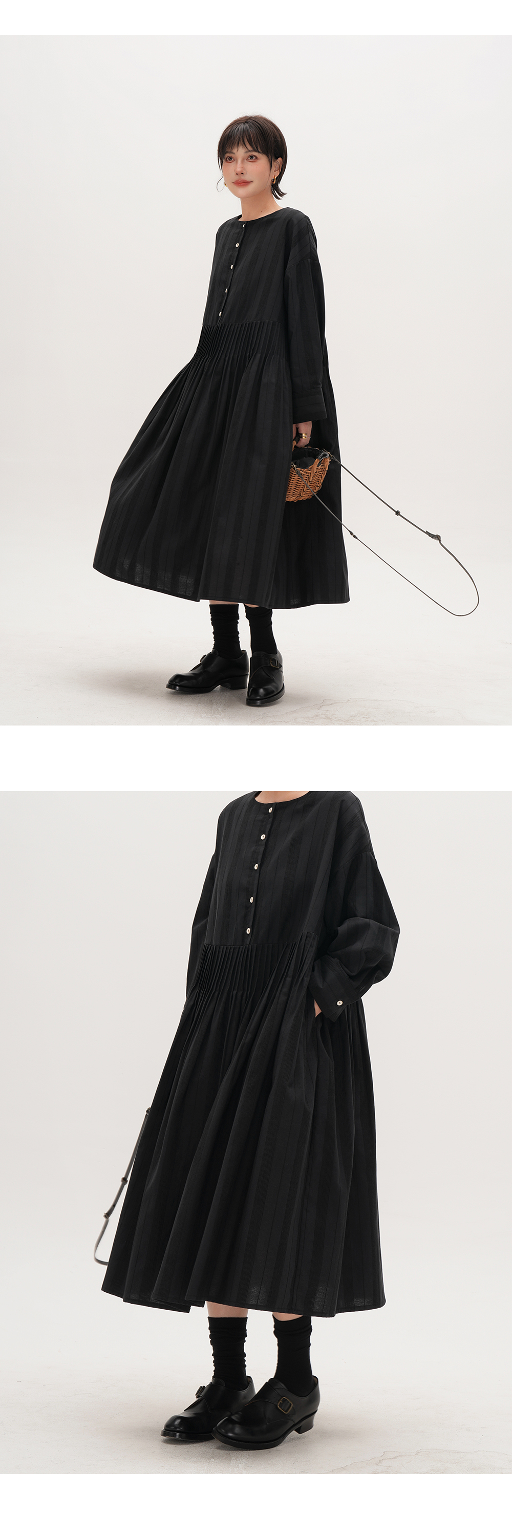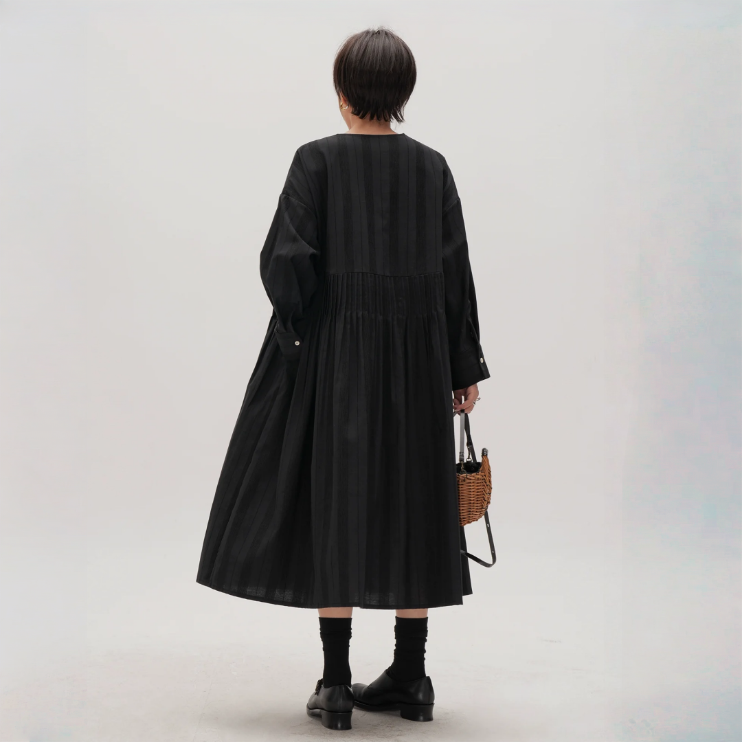 【ワンピース】フレンチレトロ 切替デザイン 大ポケット 長袖 ワンピース 秋新作 ゆったり 【JZシリーズ】