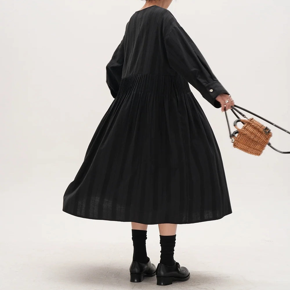 【ワンピース】細見え 日系 Vネック 無地 長袖ワンピース 切替デザイン ゆったり 気質ロング【JZシリーズ】【AHシリーズ】