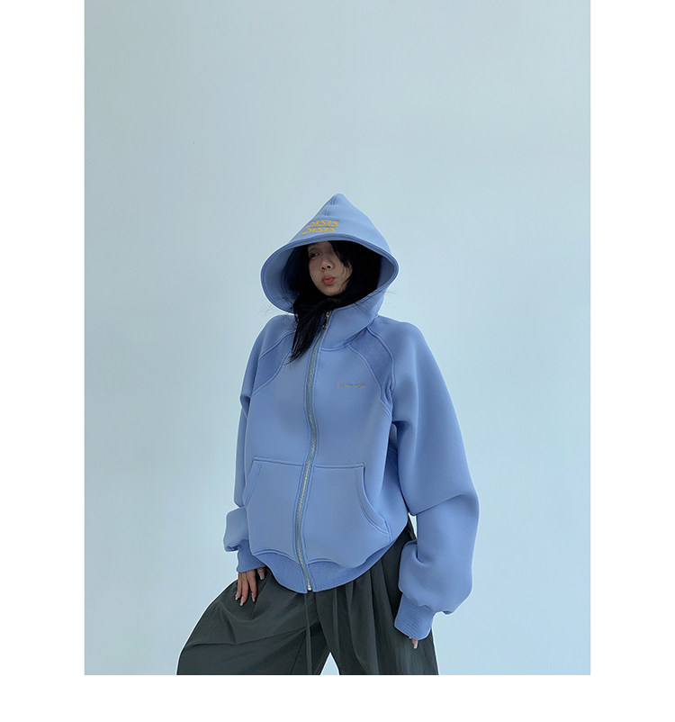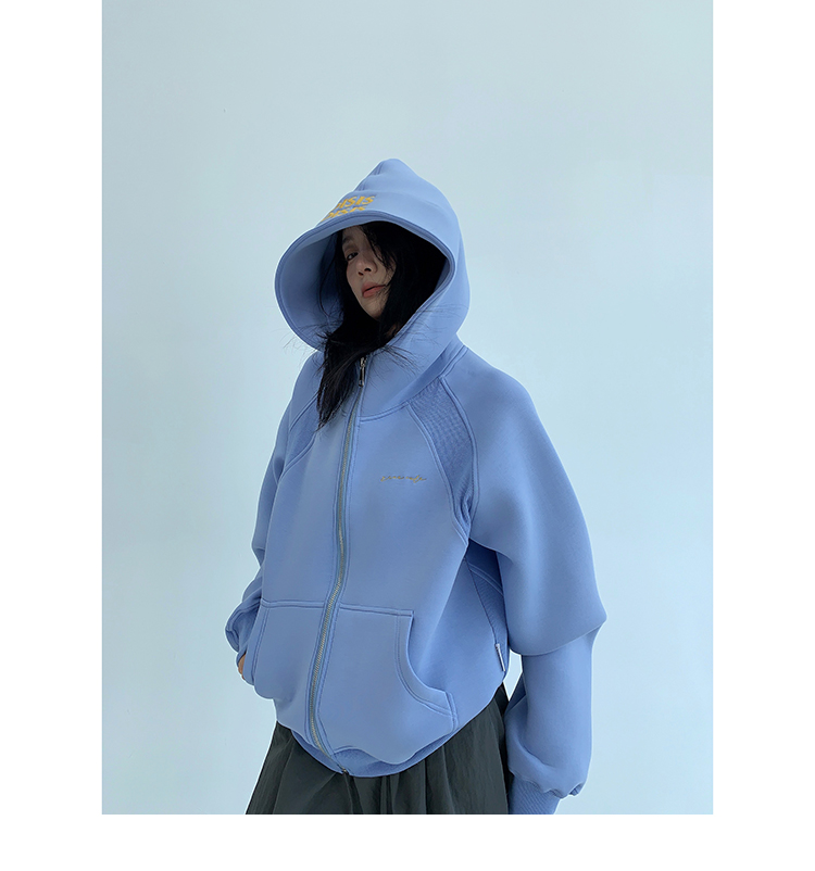 【アウター】春 秋 冬 シンプル構造切り替え 刺繍 フード付き ジャケット【FCシリーズ】