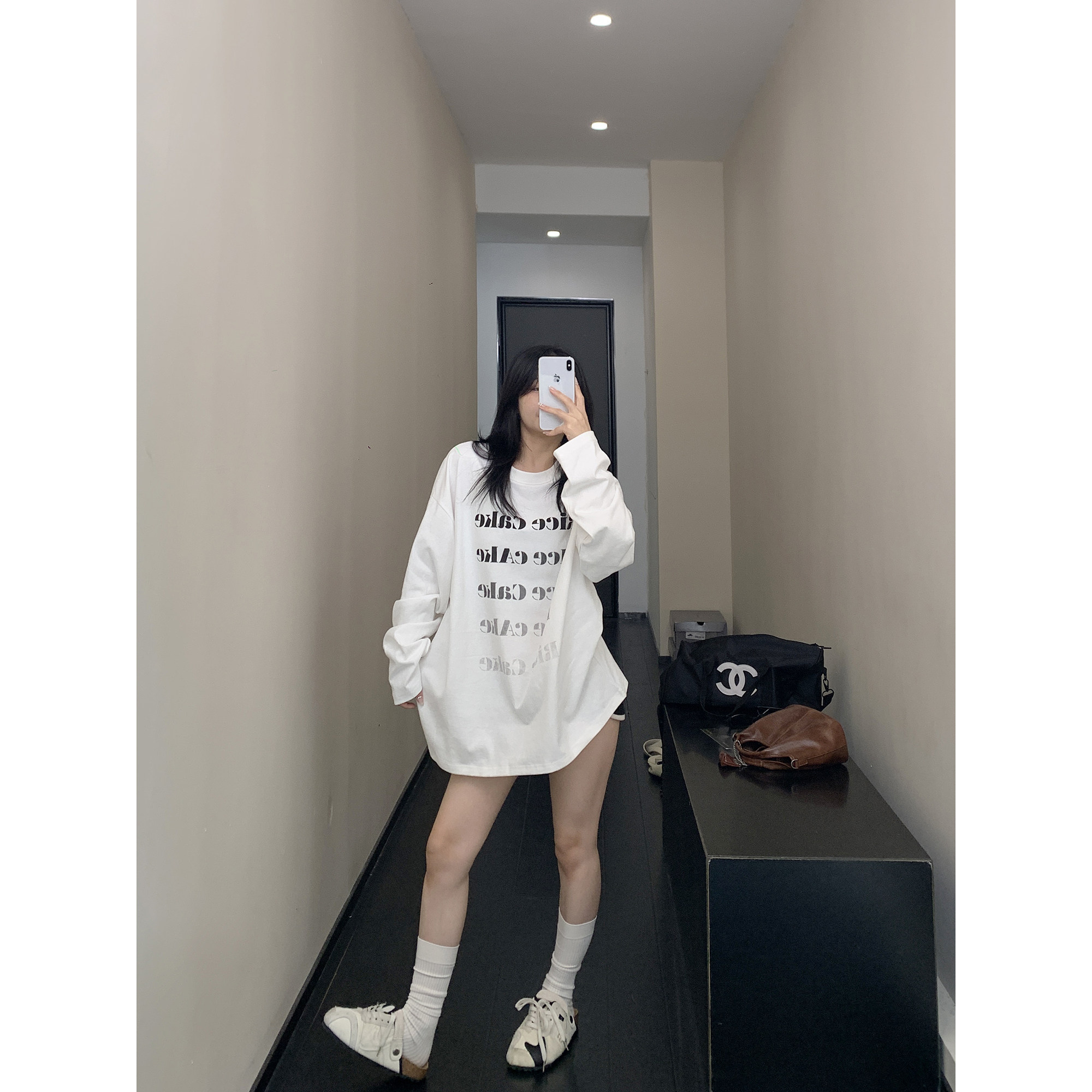 【商品名】【トップス】春 秋 冬 コットン100% アルファベット プリント ゆるリラックス Tシャツ