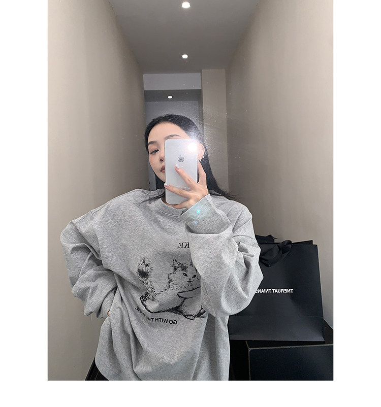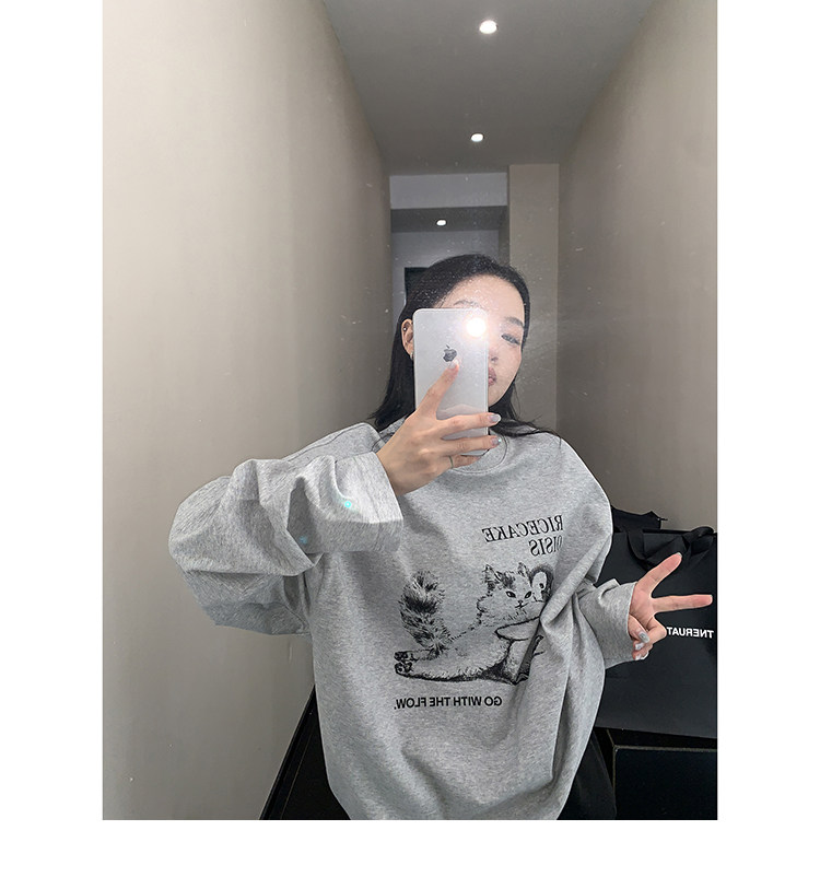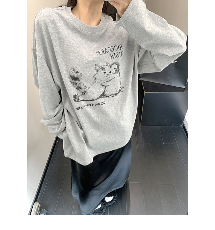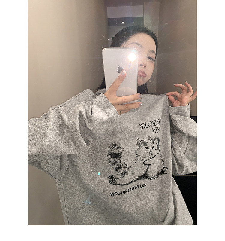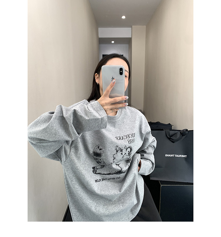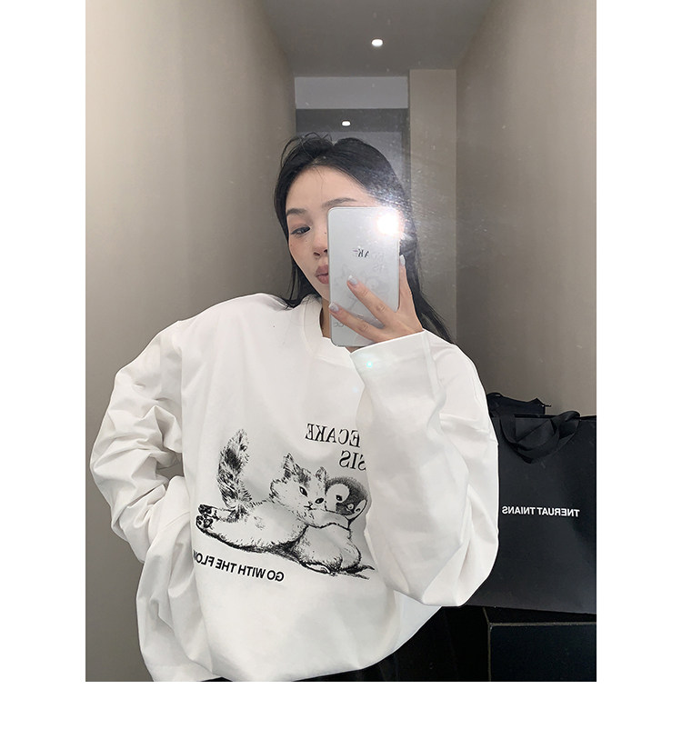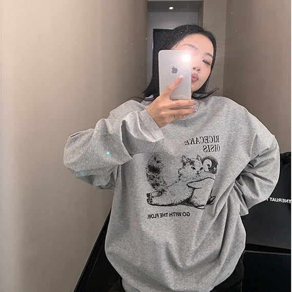 【トップス】アメリカンレトロ 猫モチーフ 猫柄 ネコ クルーネック ニット ルーズ 秋新作【FCシリーズ】