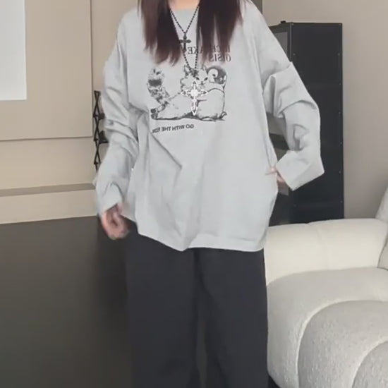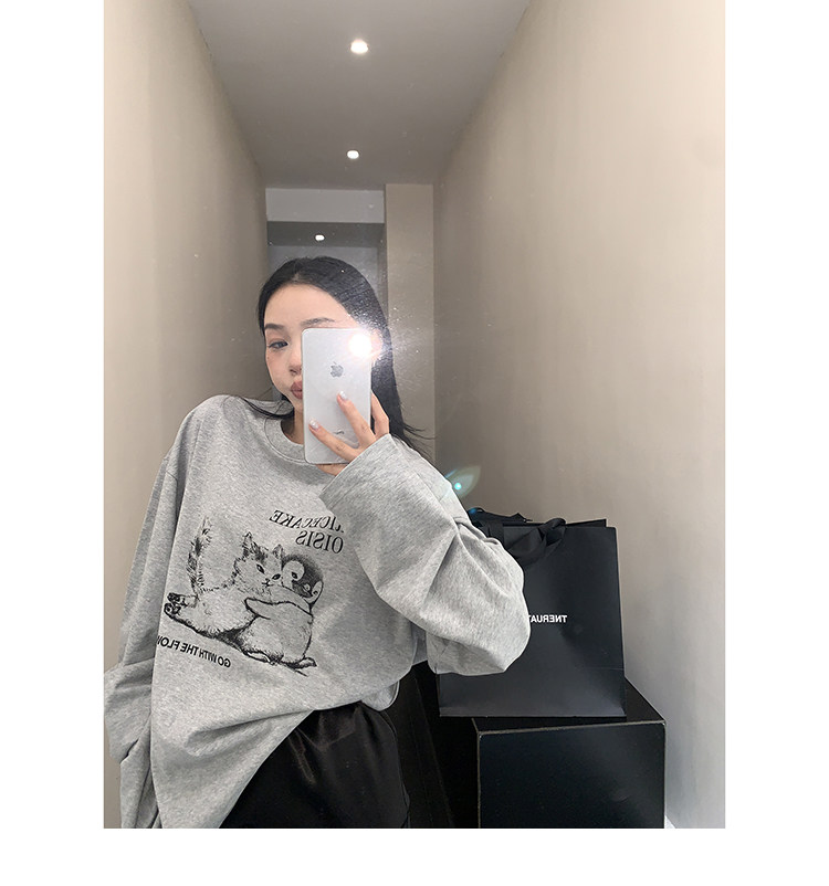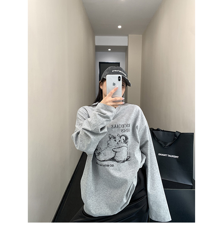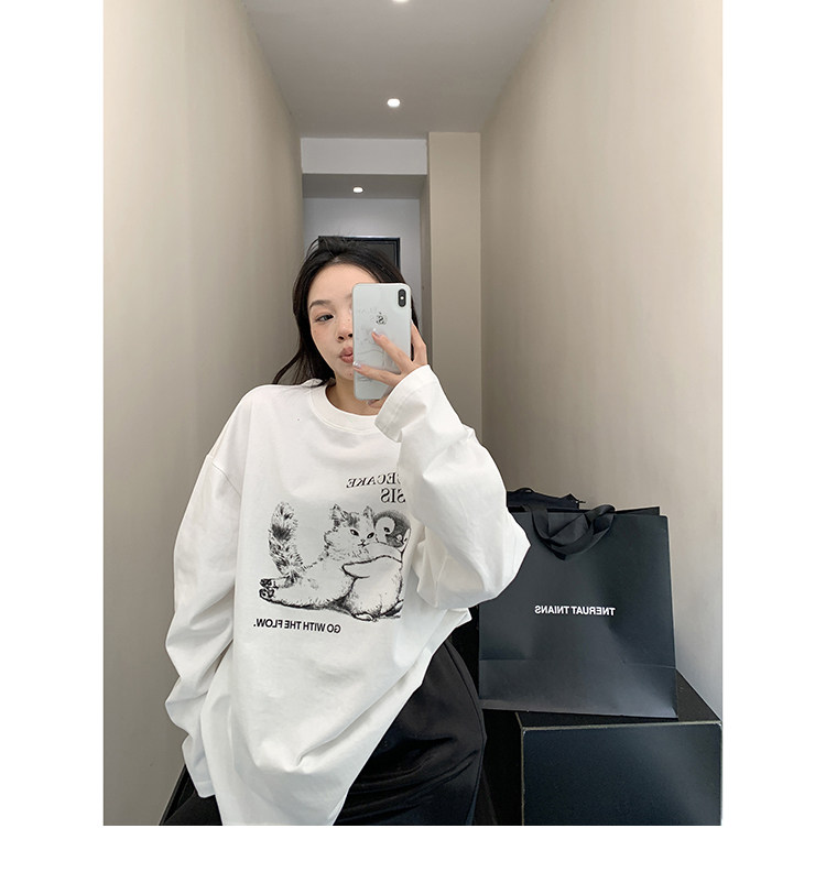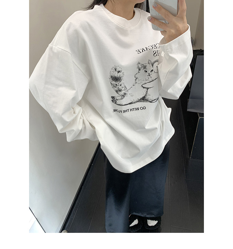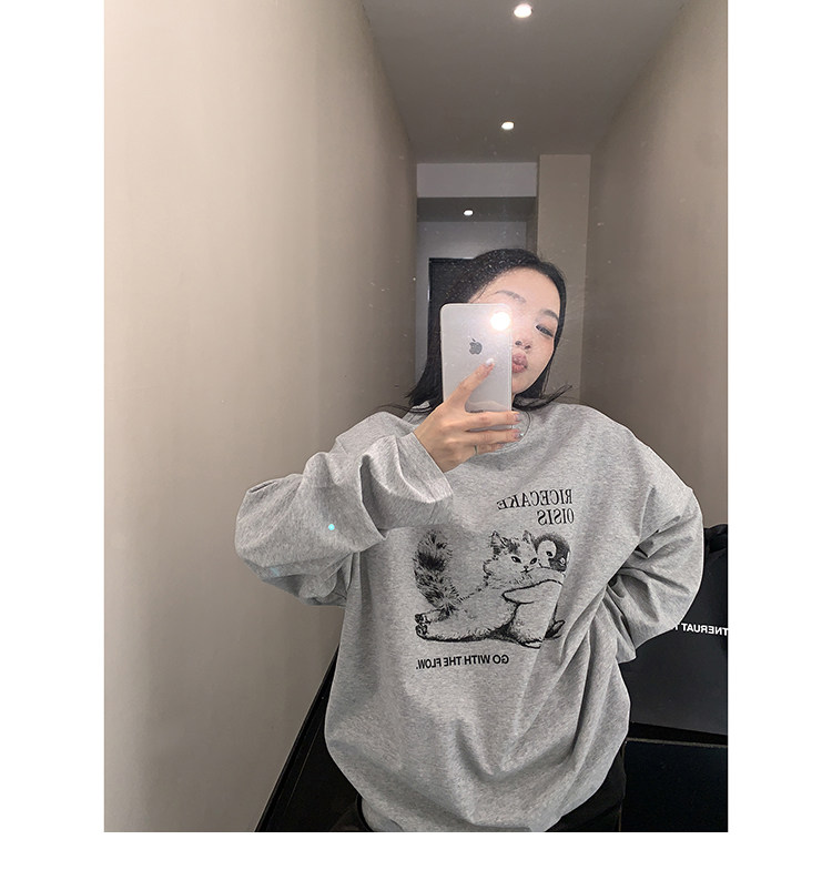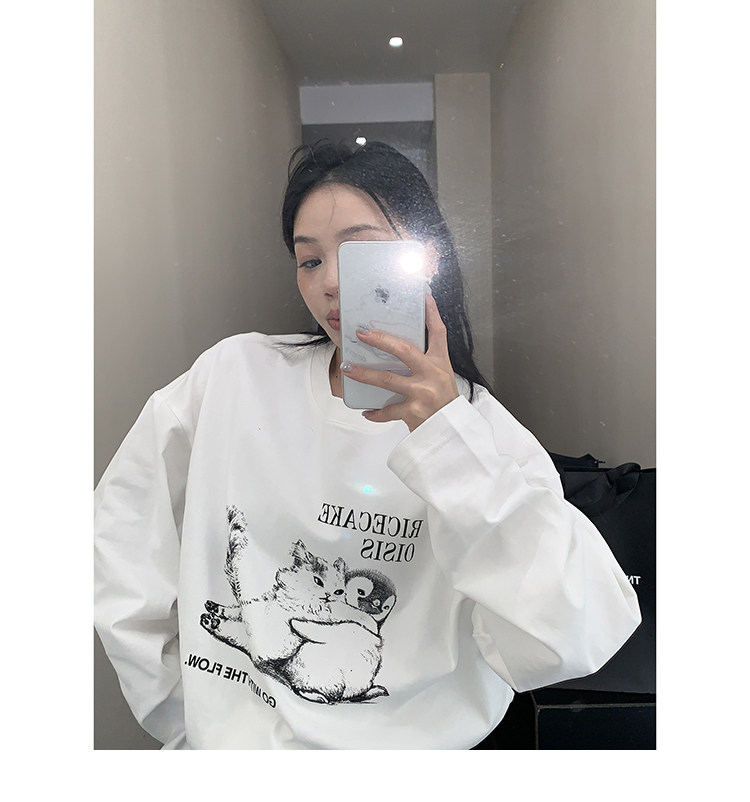 【トップス】アメリカンレトロ 猫モチーフ 猫柄 ネコ クルーネック ニット ルーズ 秋新作【FCシリーズ】