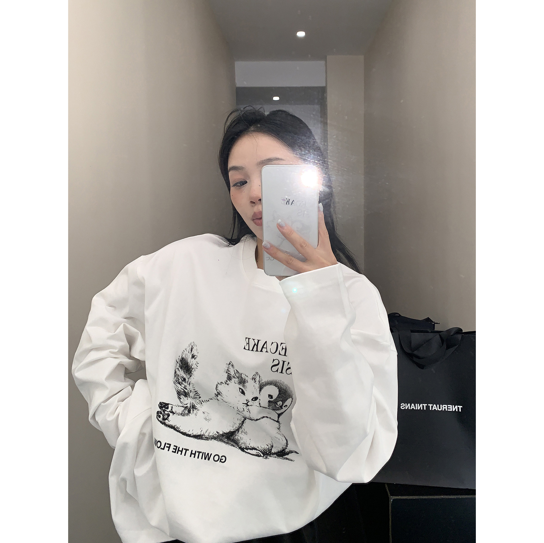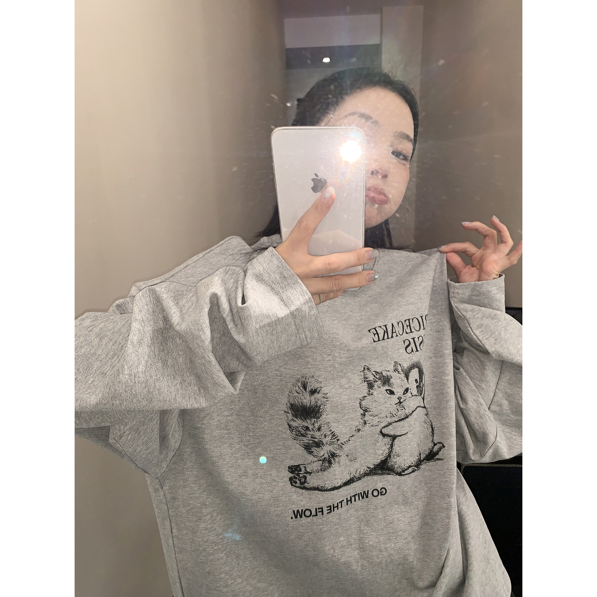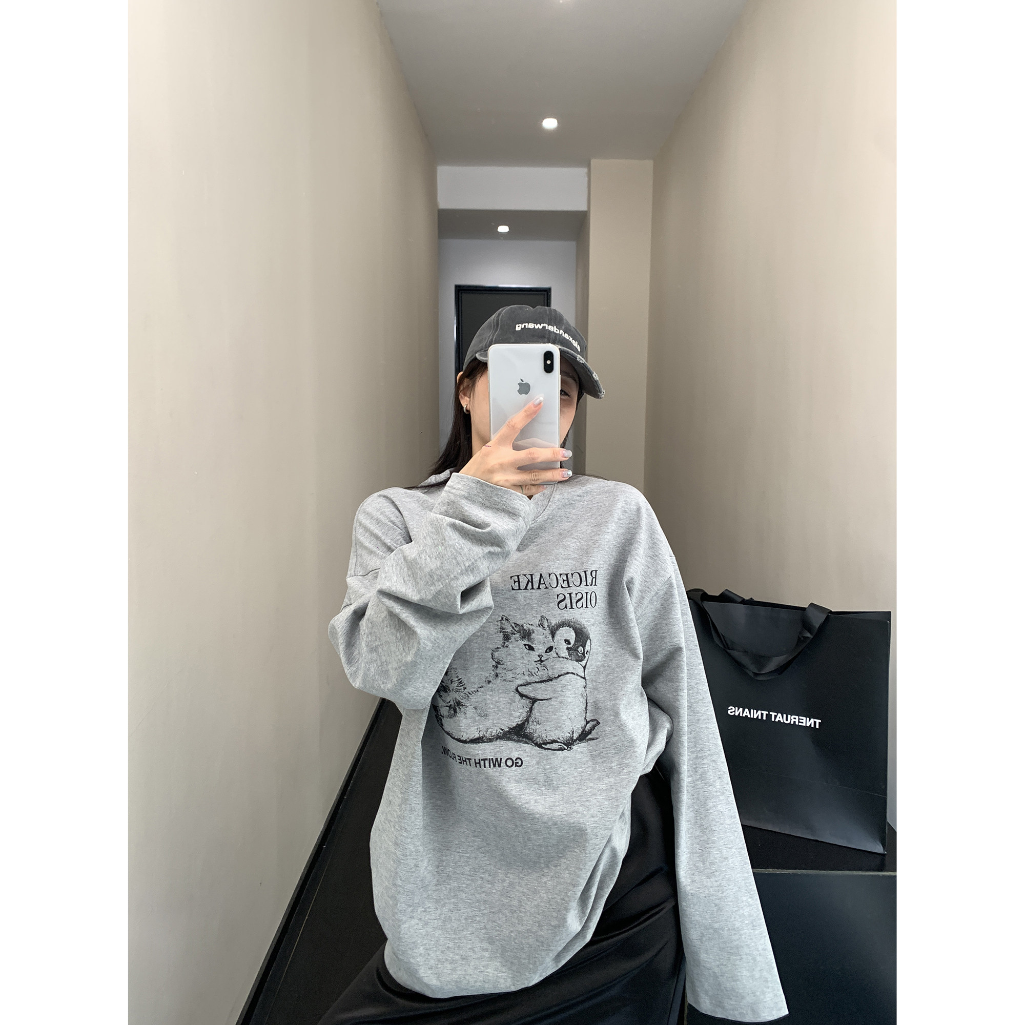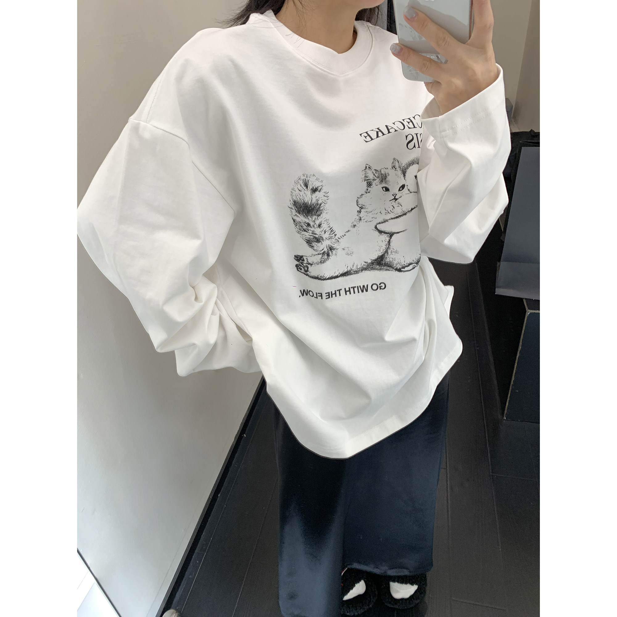 【トップス】アメリカンレトロ 猫モチーフ 猫柄 ネコ クルーネック ニット ルーズ 秋新作【FCシリーズ】