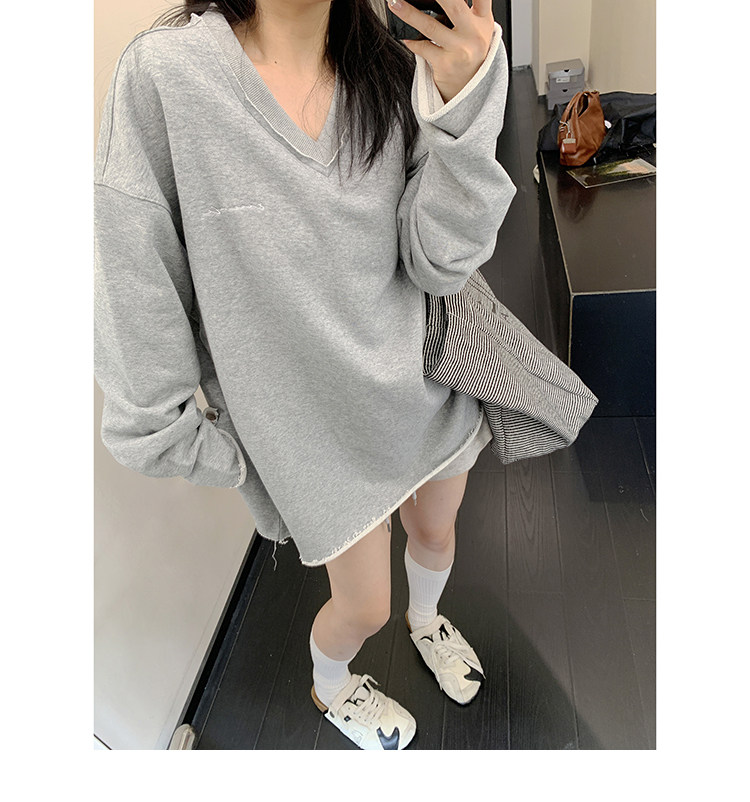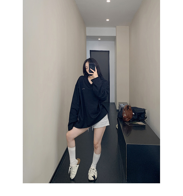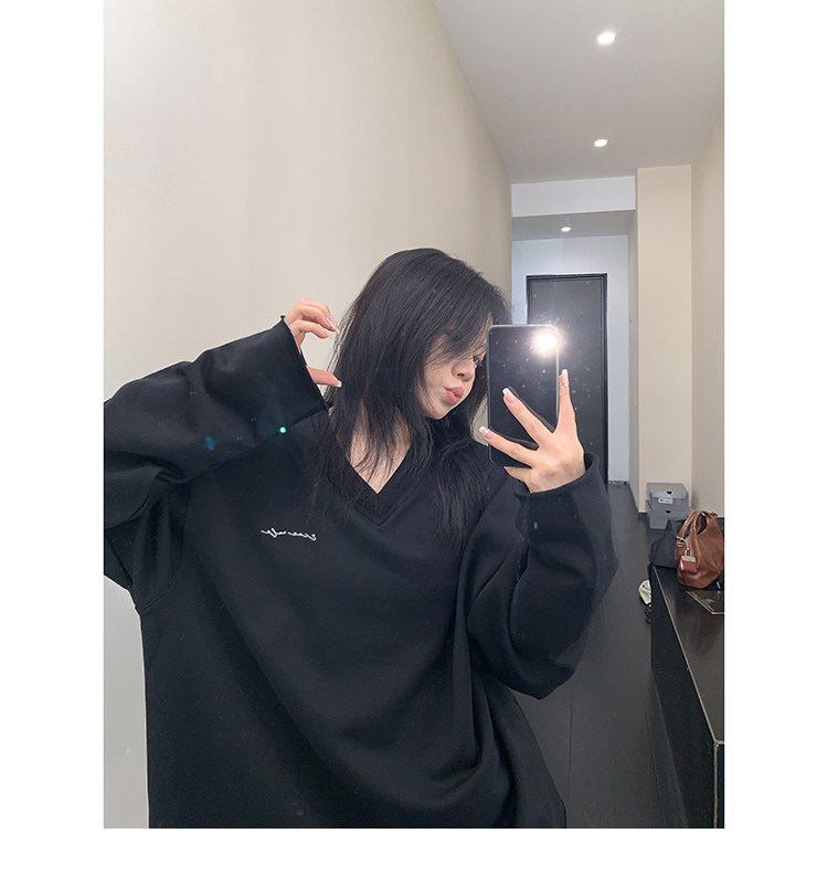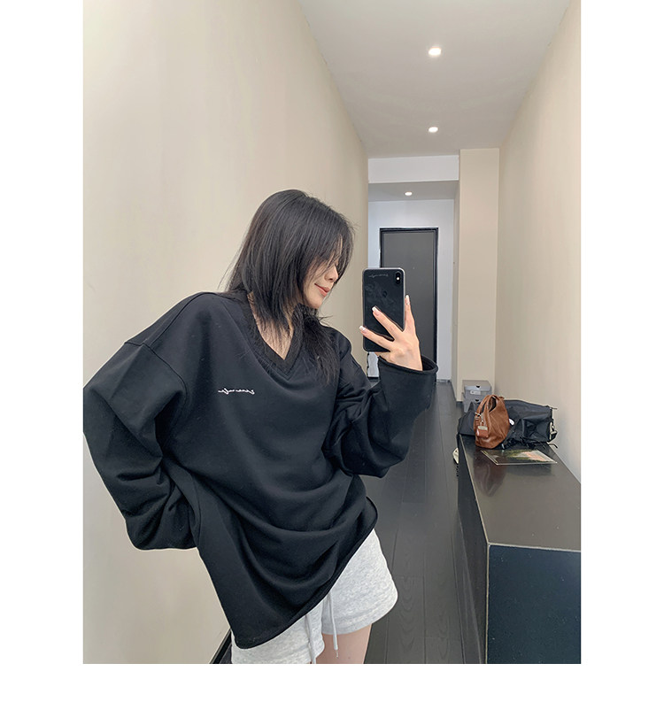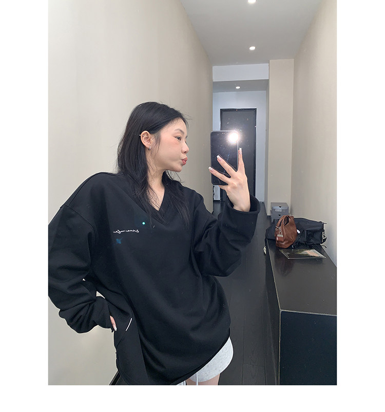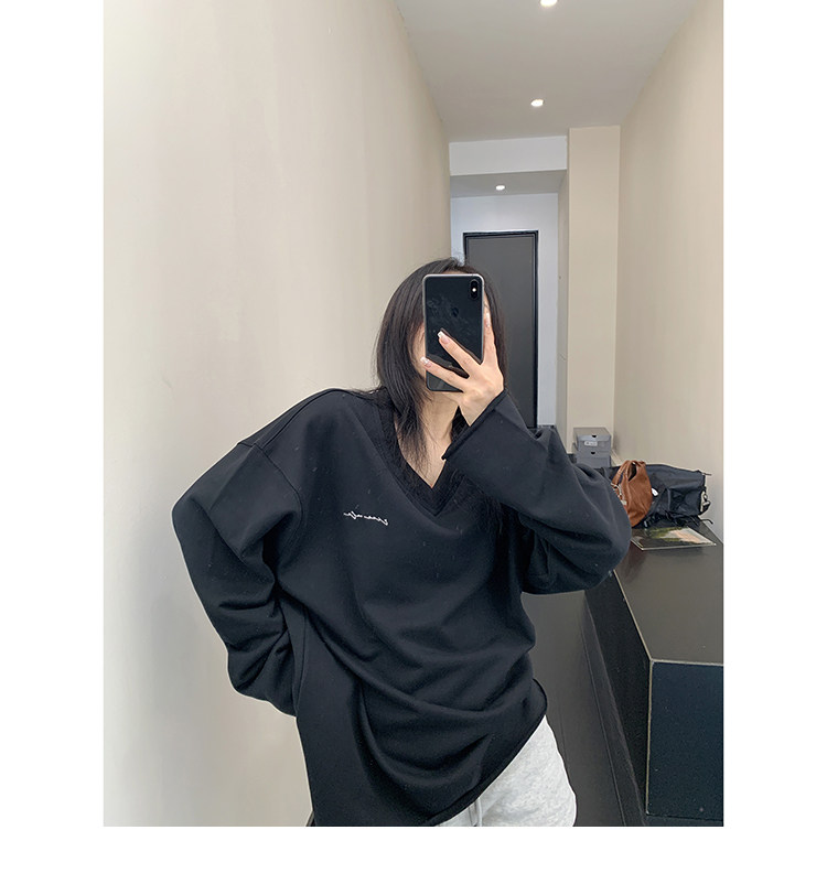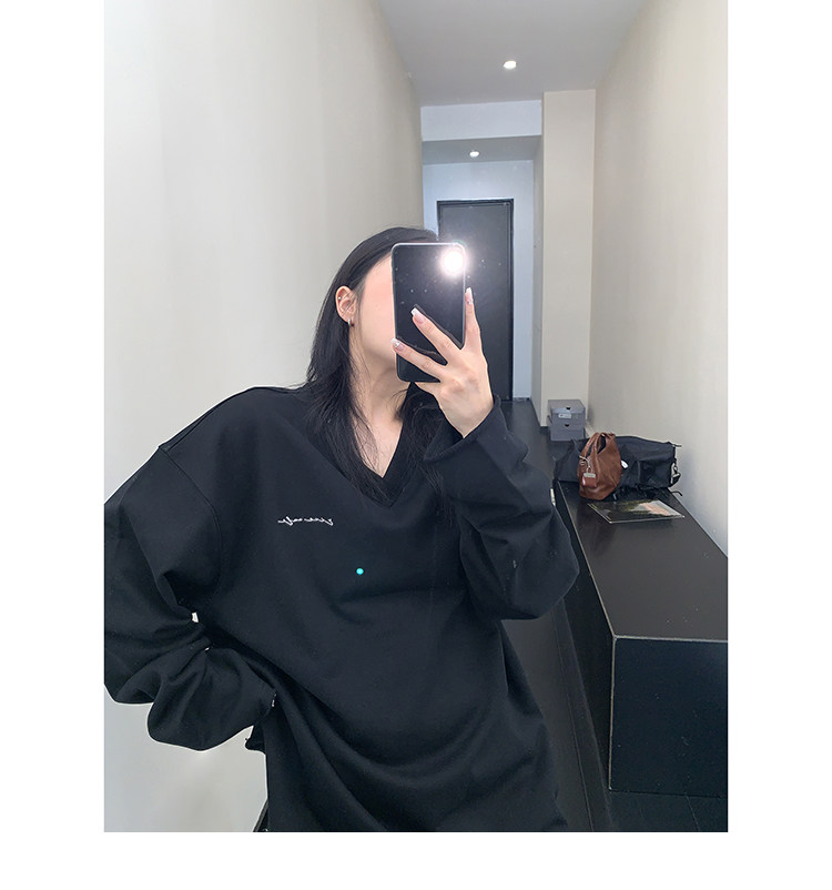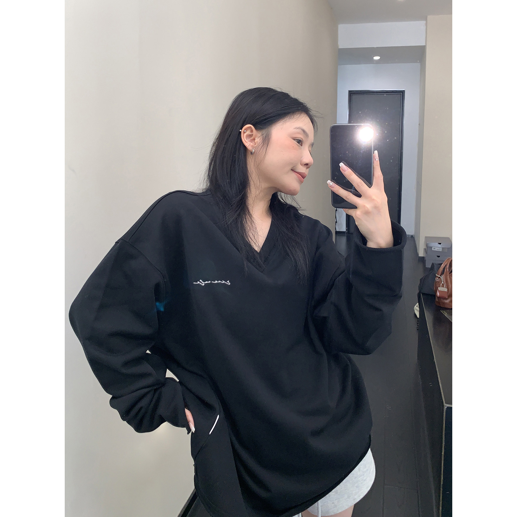 【商品名】【トップス】春 秋 冬 Vネック 刺繍 ゆるリラックス Tシャツ 【FCシリーズ】