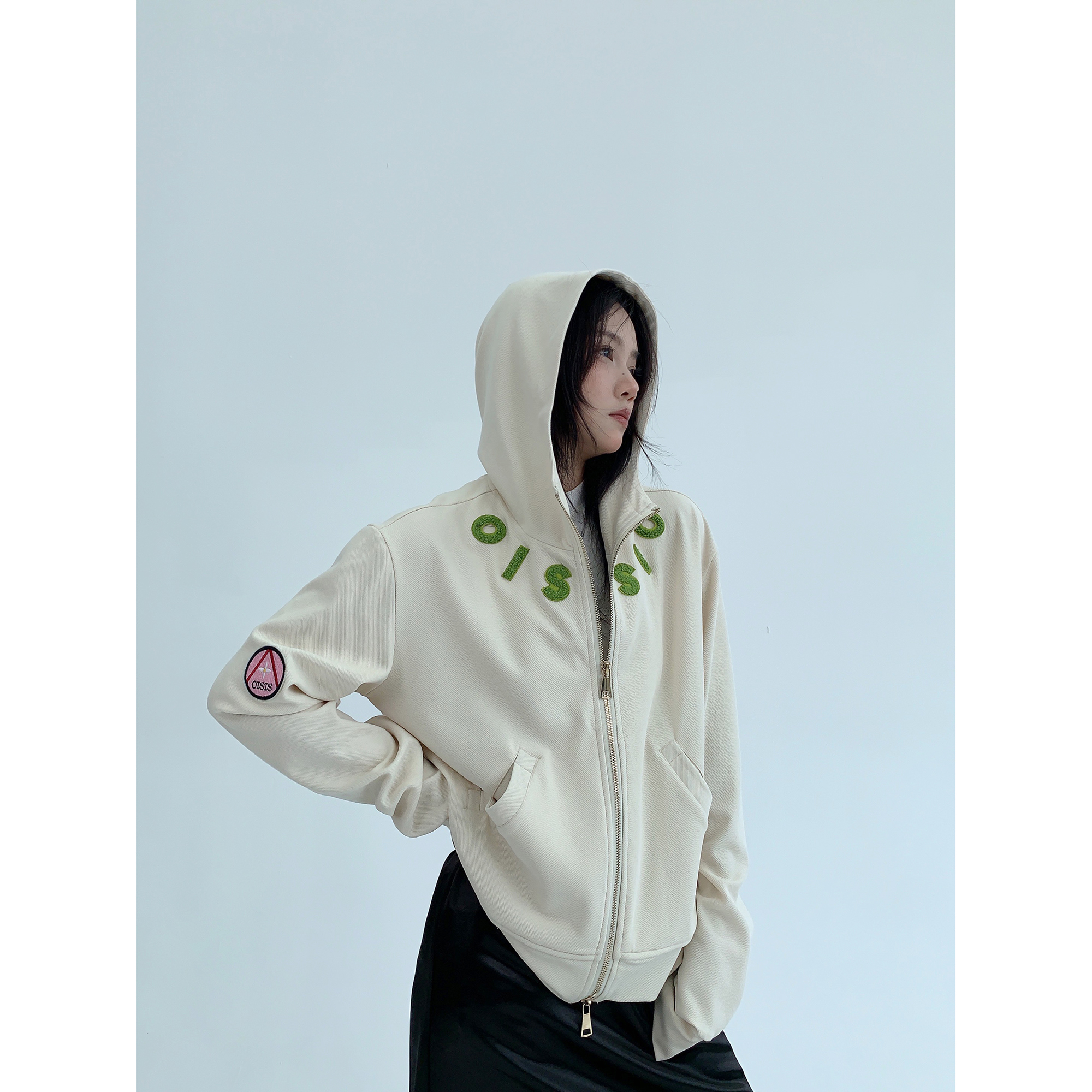 【トップス】💖カップルでも着られる!ワイドフーディ 裏起毛 重工パッチ&刺繍 レディース 冬新作【FCシリーズ】