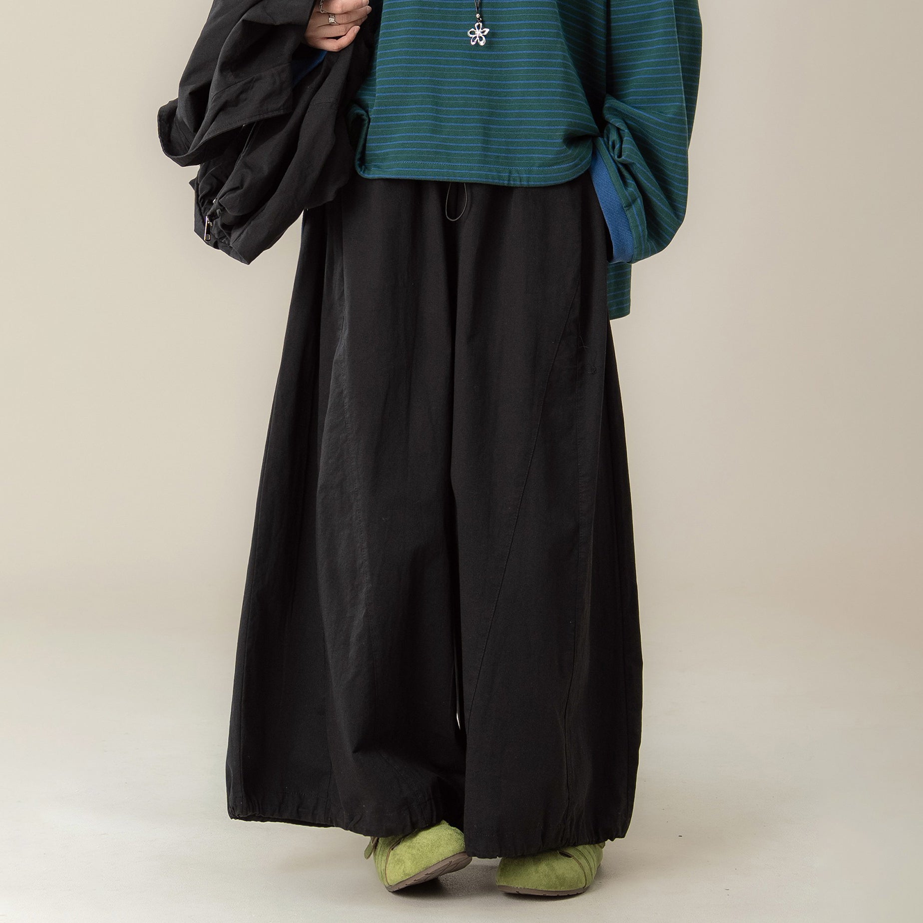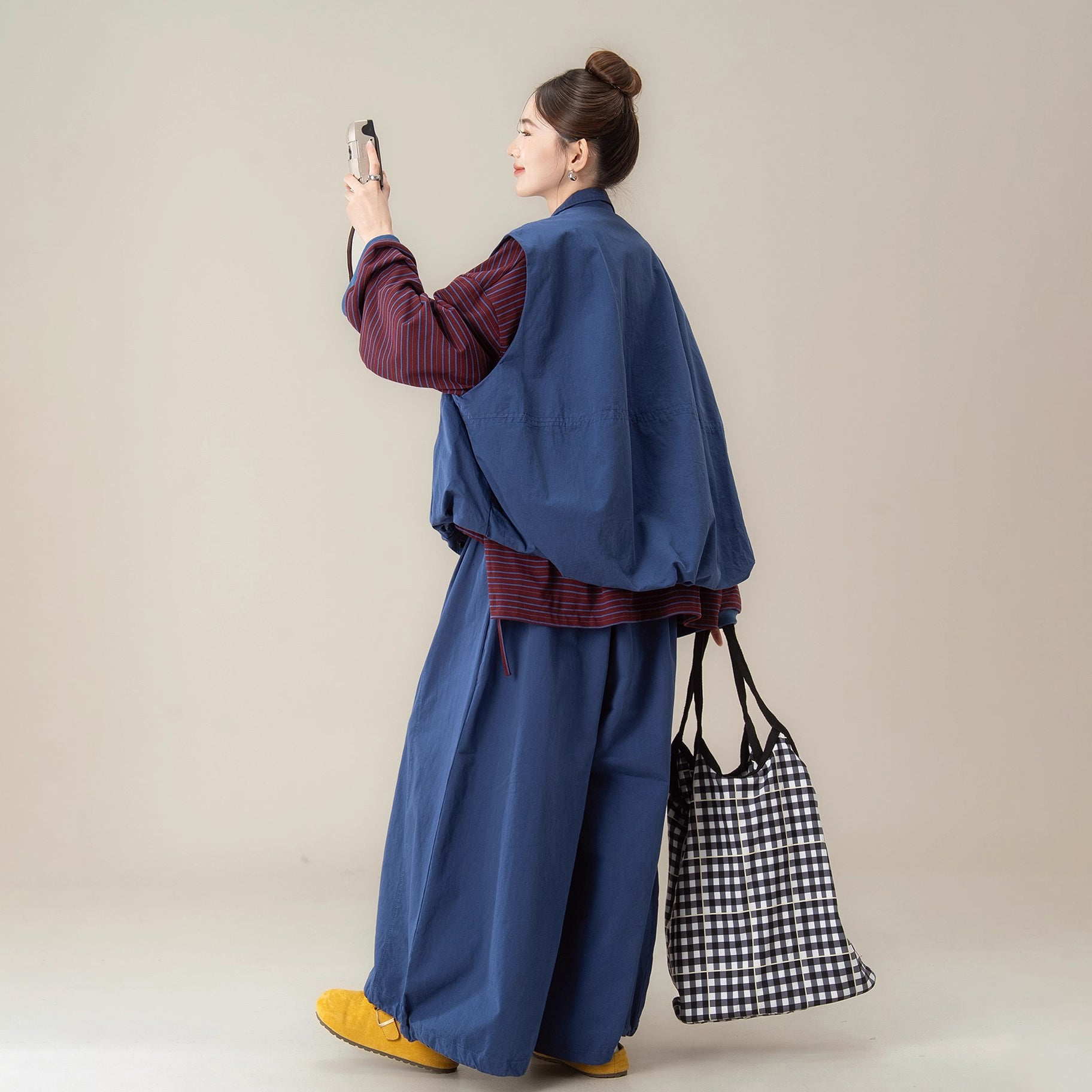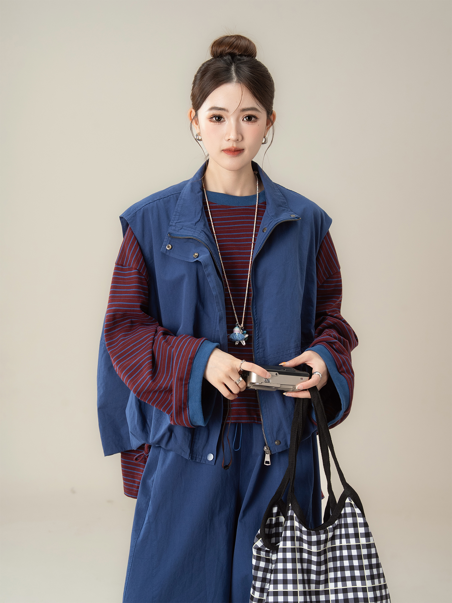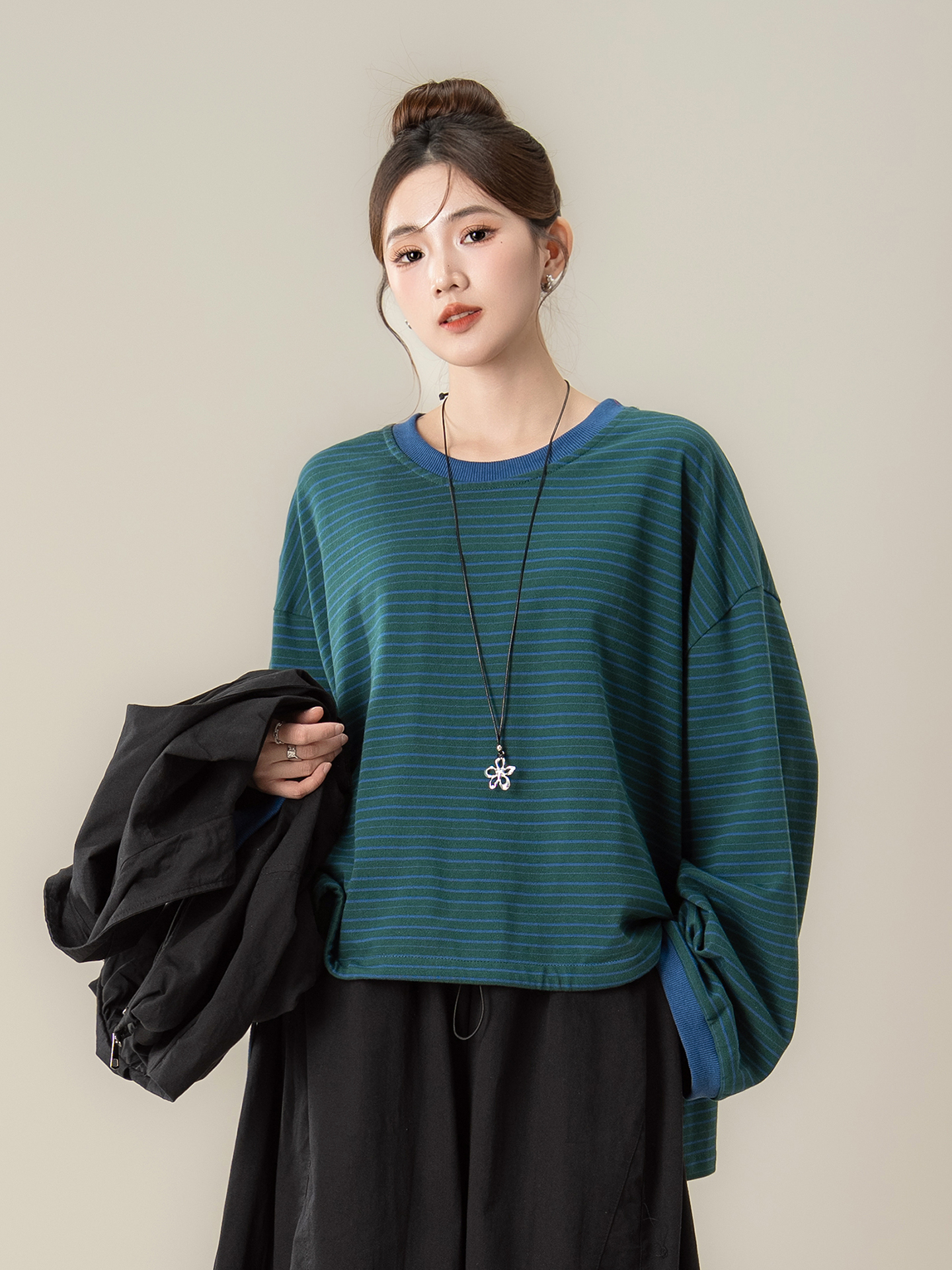 【商品名】【単品注文】【セットアップ】秋新作 ゆったり ストライプTシャツ+ベスト+ワイドパンツ 上下セット 体型カバー お洒落【JZシリーズ】
