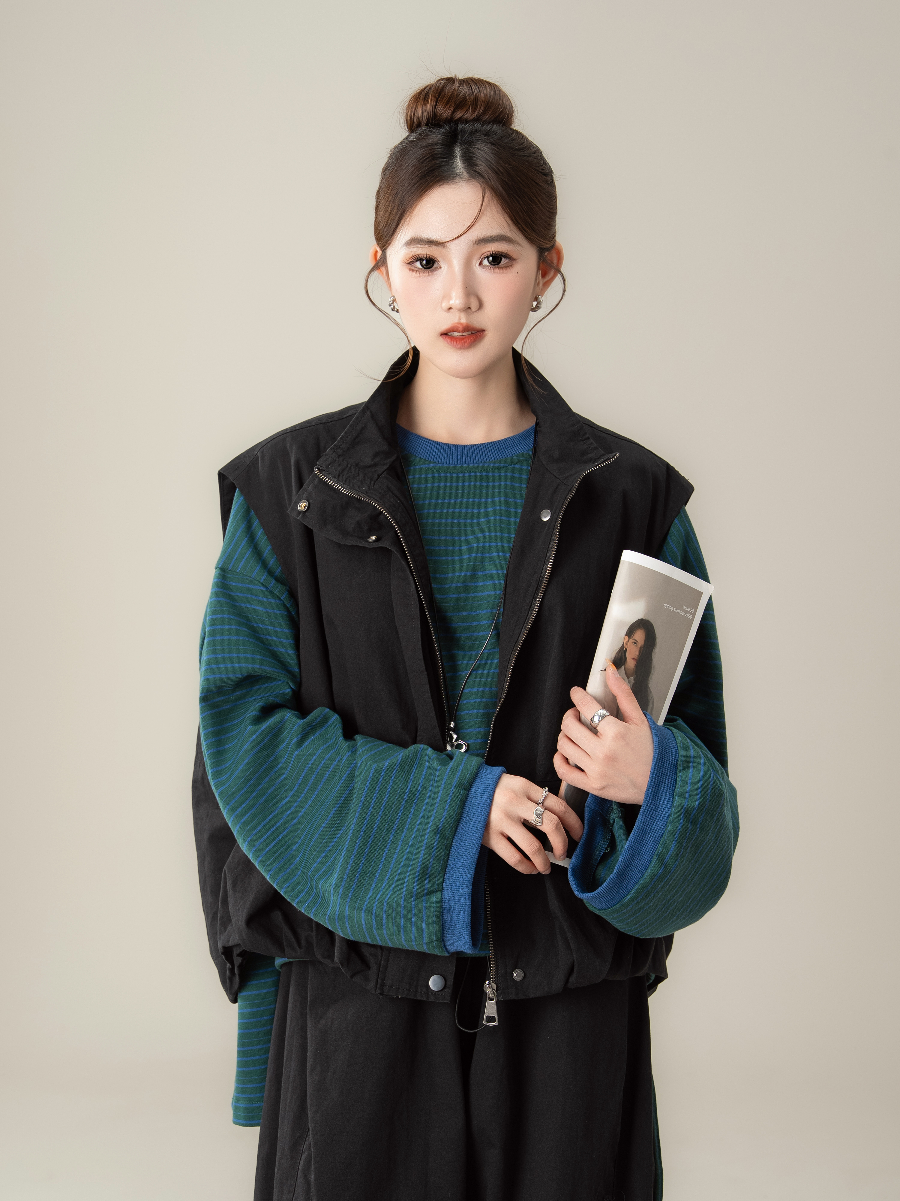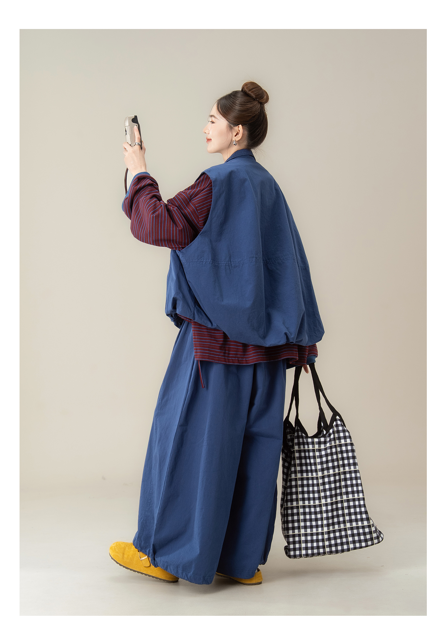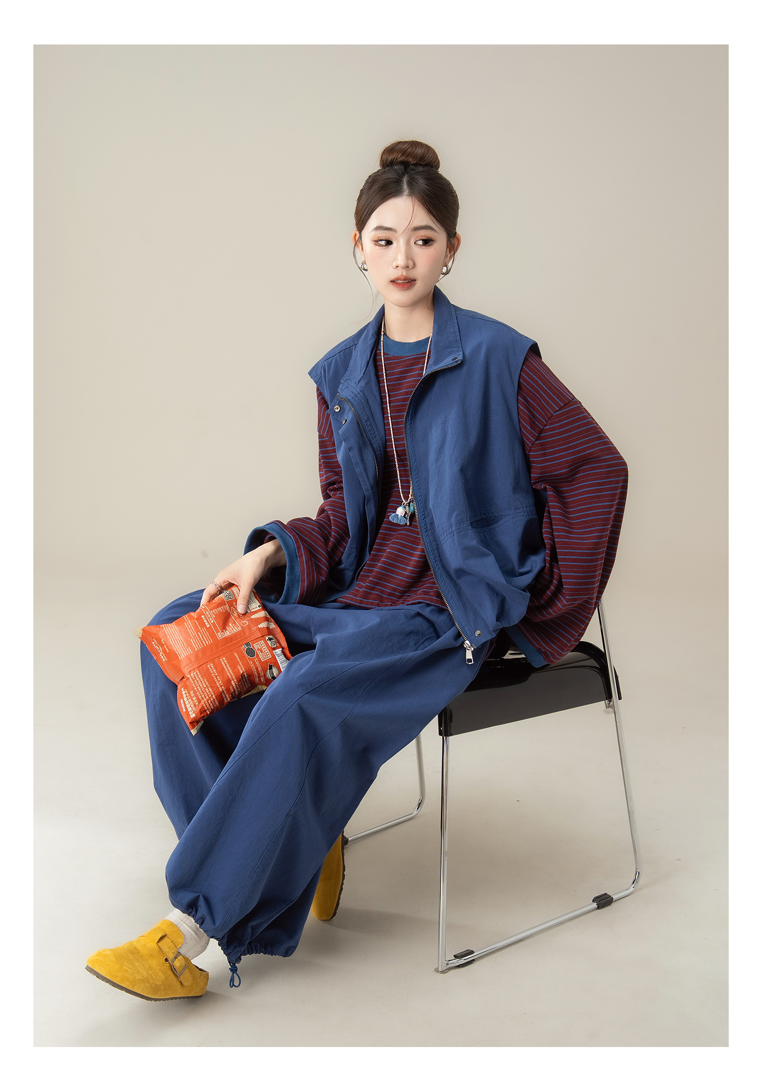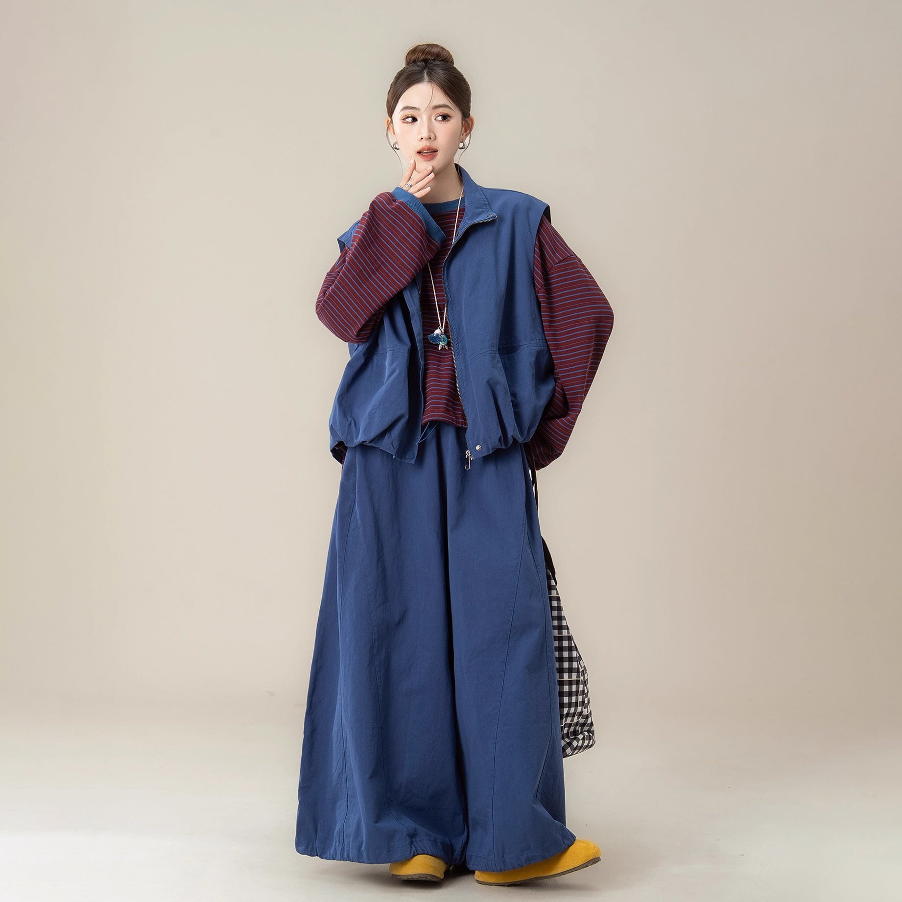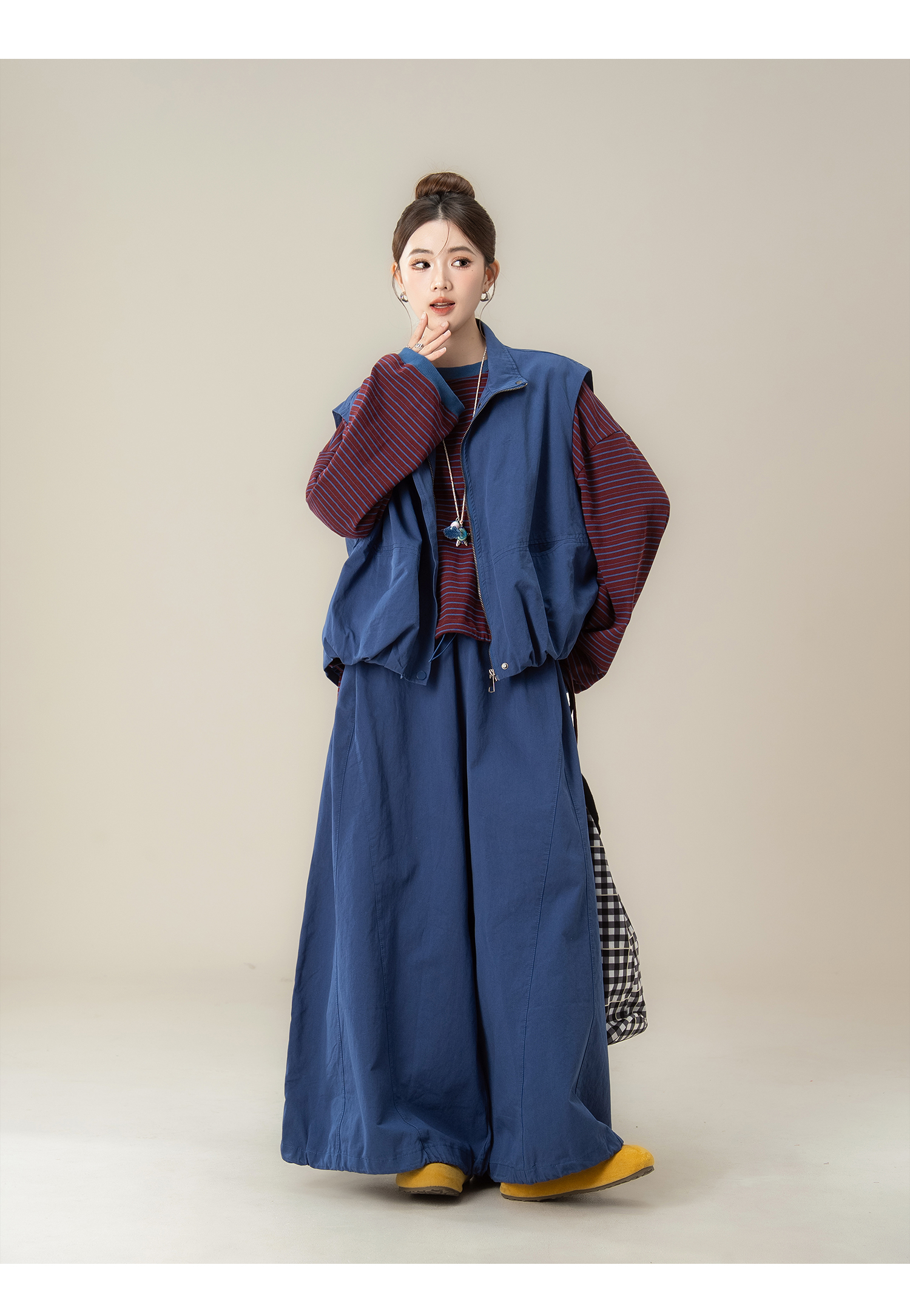 【単品注文】【セットアップ】秋新作 ゆったり ストライプTシャツ+ベスト+ワイドパンツ 上下セット 体型カバー お洒落【JZシリーズ】