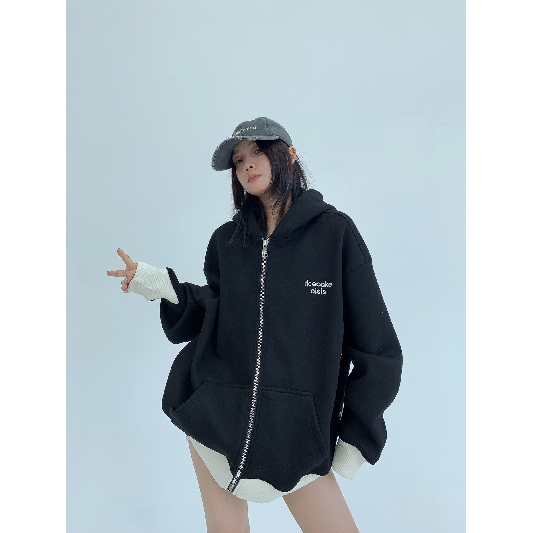 【トップス】💖カップルでも着られる!ワイドフーディ 裏起毛 重工パッチ&刺繍 レディース 冬新作【FCシリーズ】