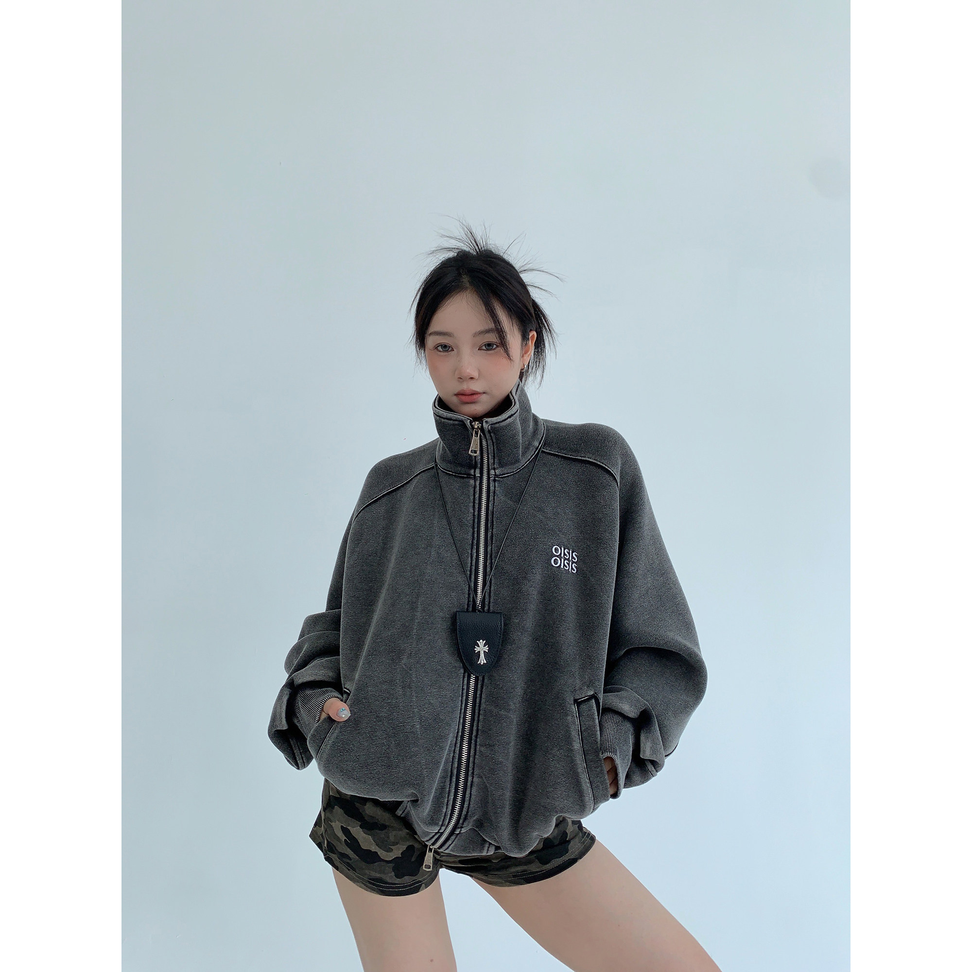 【アウター】アメリカンヴィンテージ レオパード ロゴ ジップアップパーカー ゆったり 男女兼用 カジュアルカーディガン【FCシリーズ】