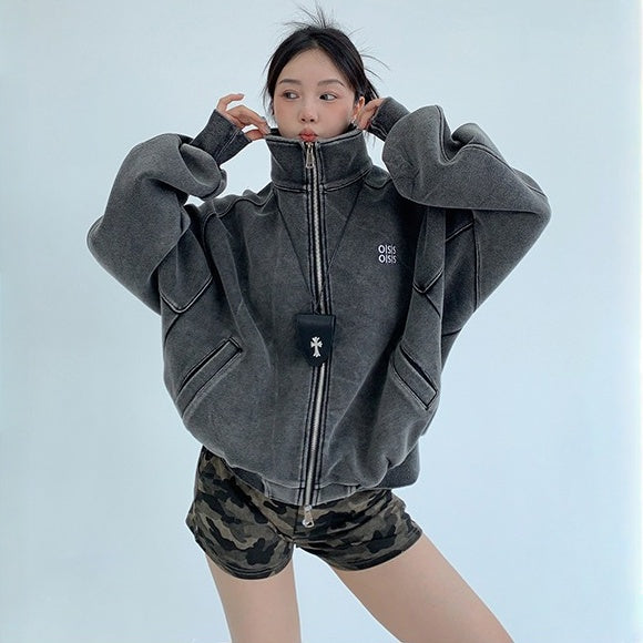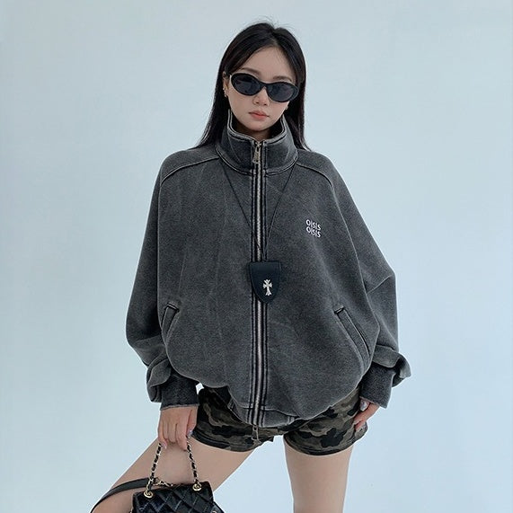 【トップス】春秋冬 Oversize レトロ 刺繍 ゆったり フード付き デニム パーカー【FCシリーズ】【15~20日発送】