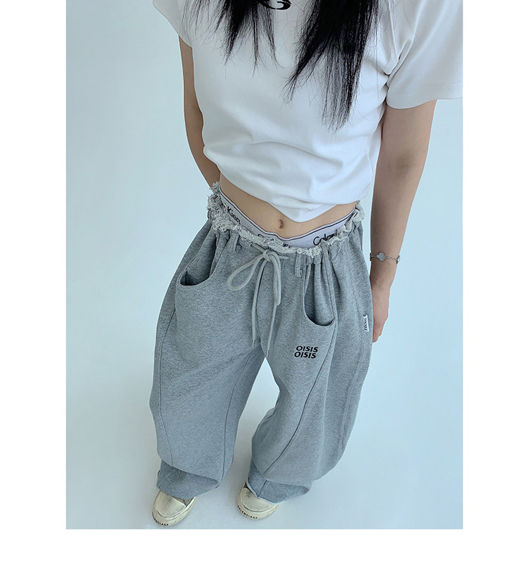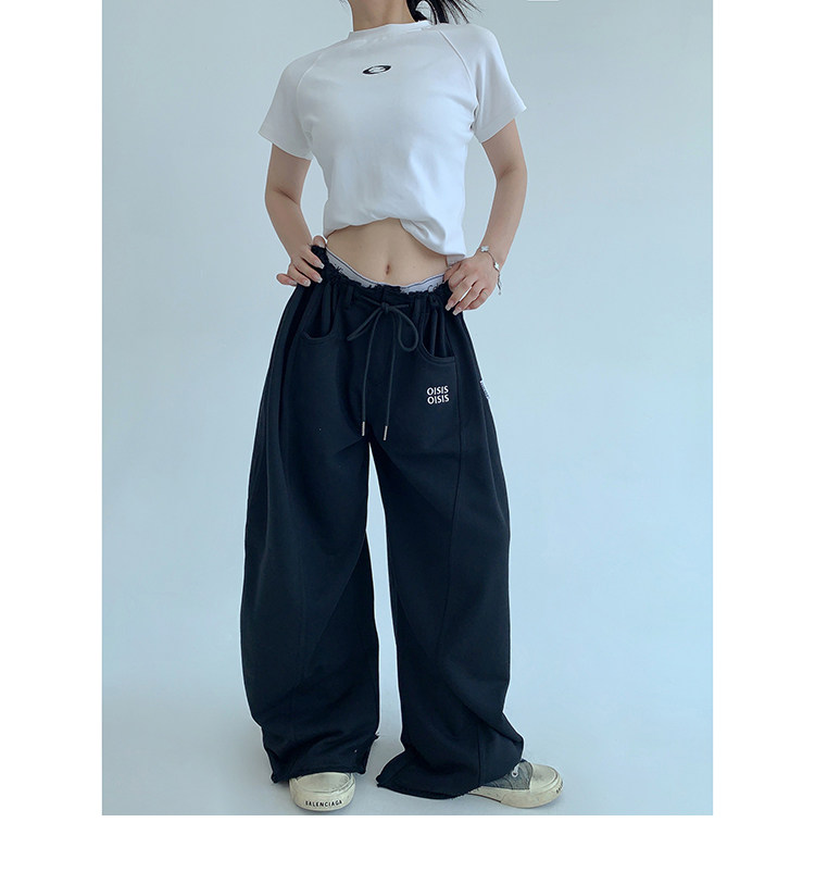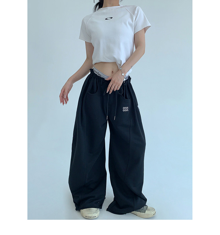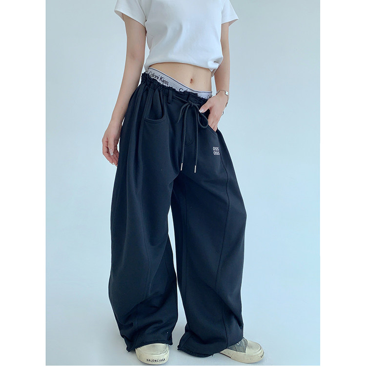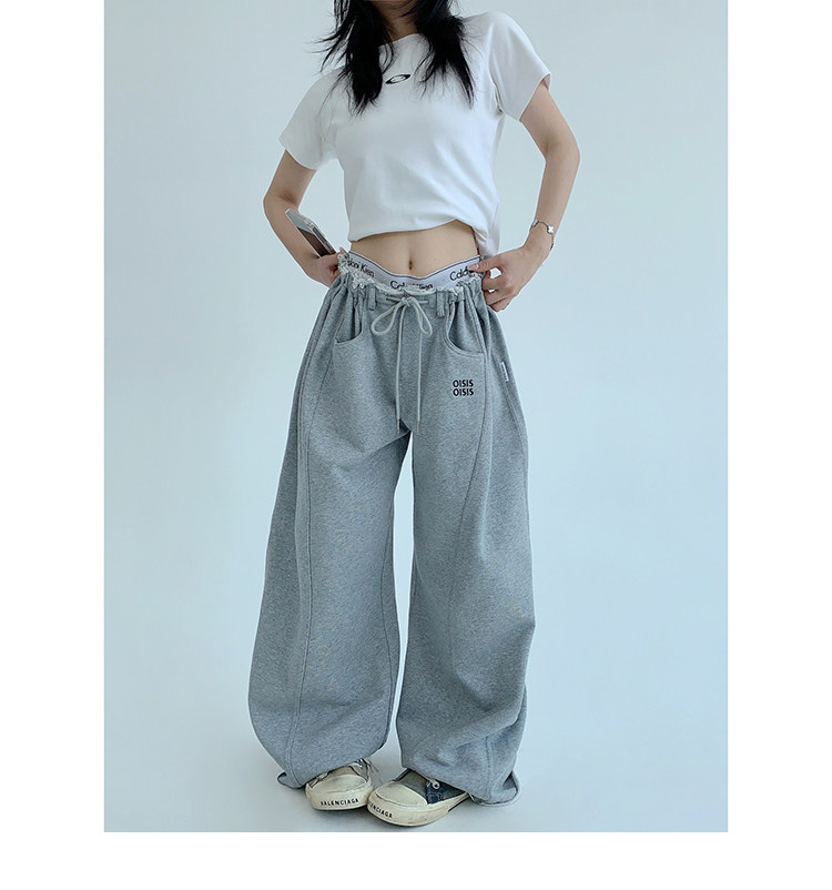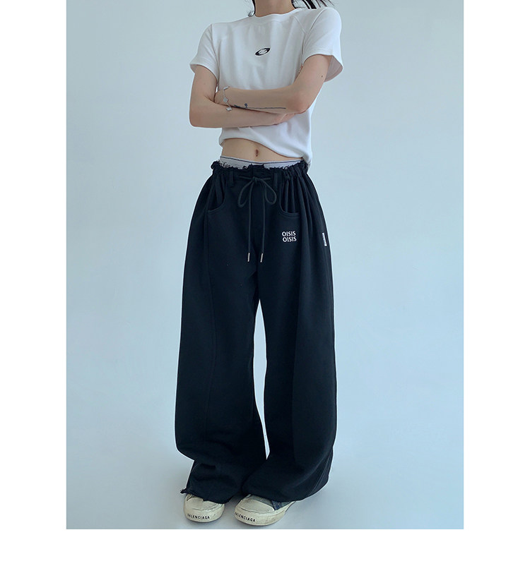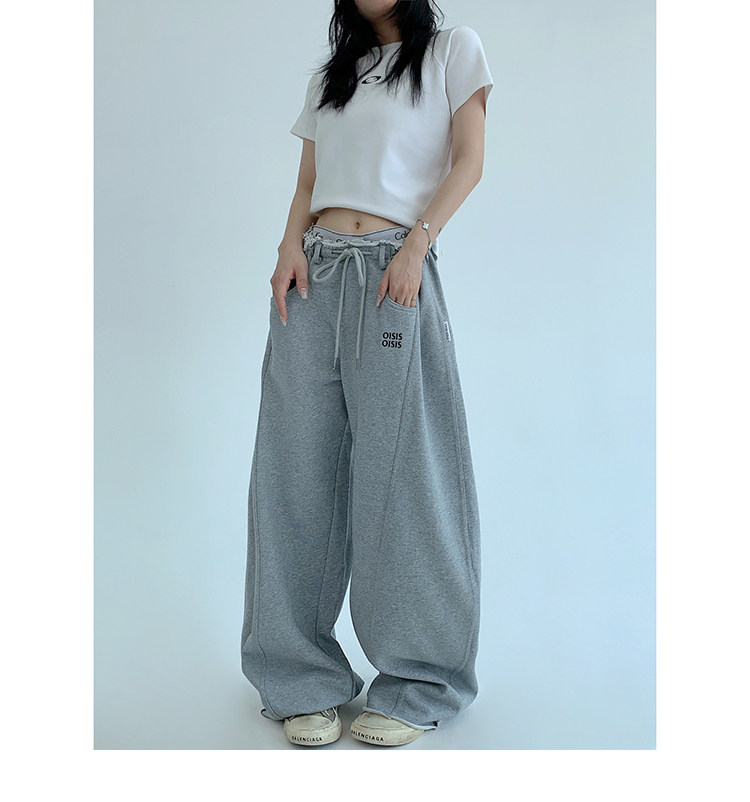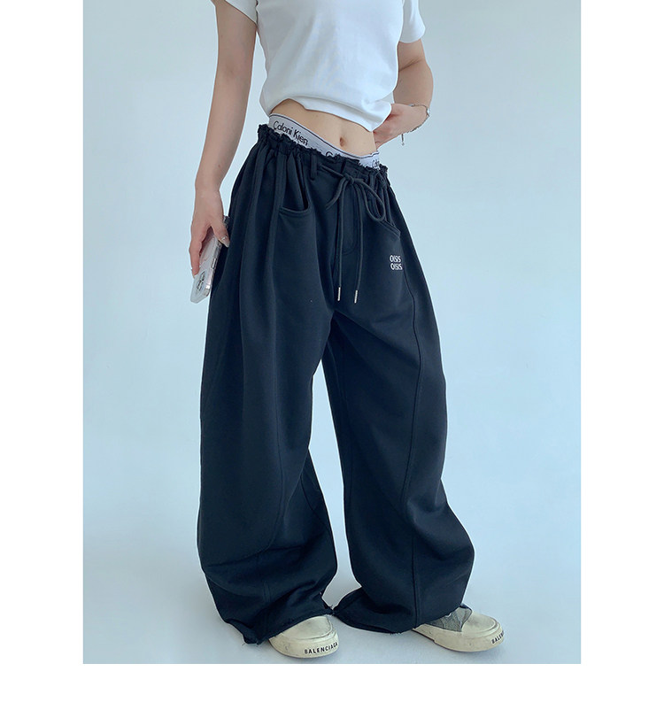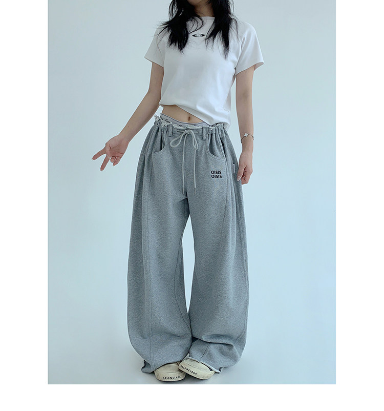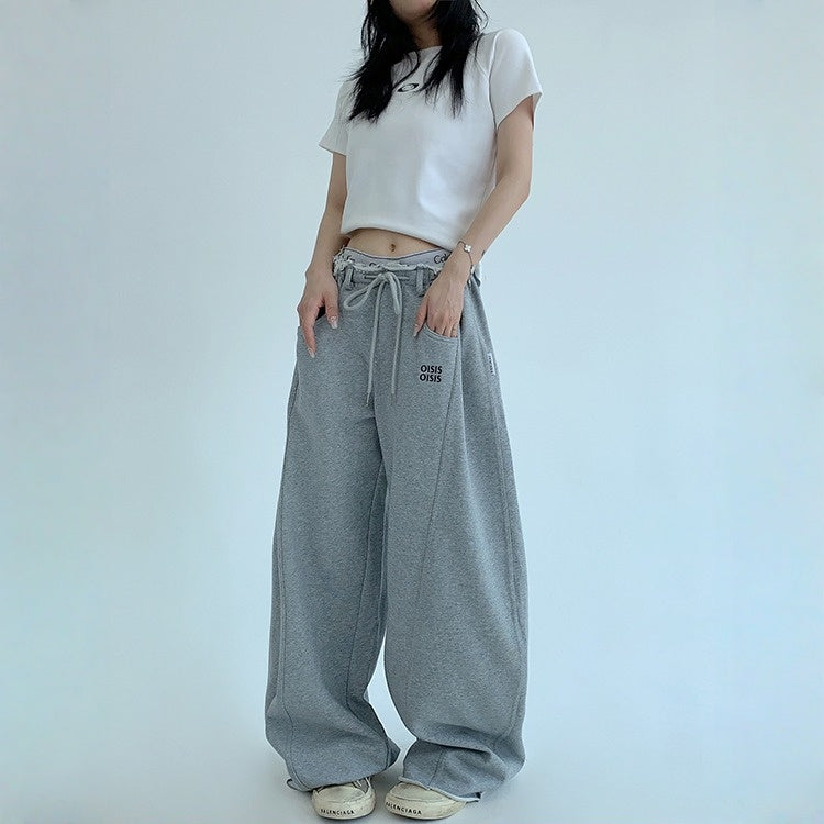 【商品名】【ボトムス】春 秋 冬 ギャザーウエスト ストレート ワイド スウェットパンツ 【FCシリーズ】