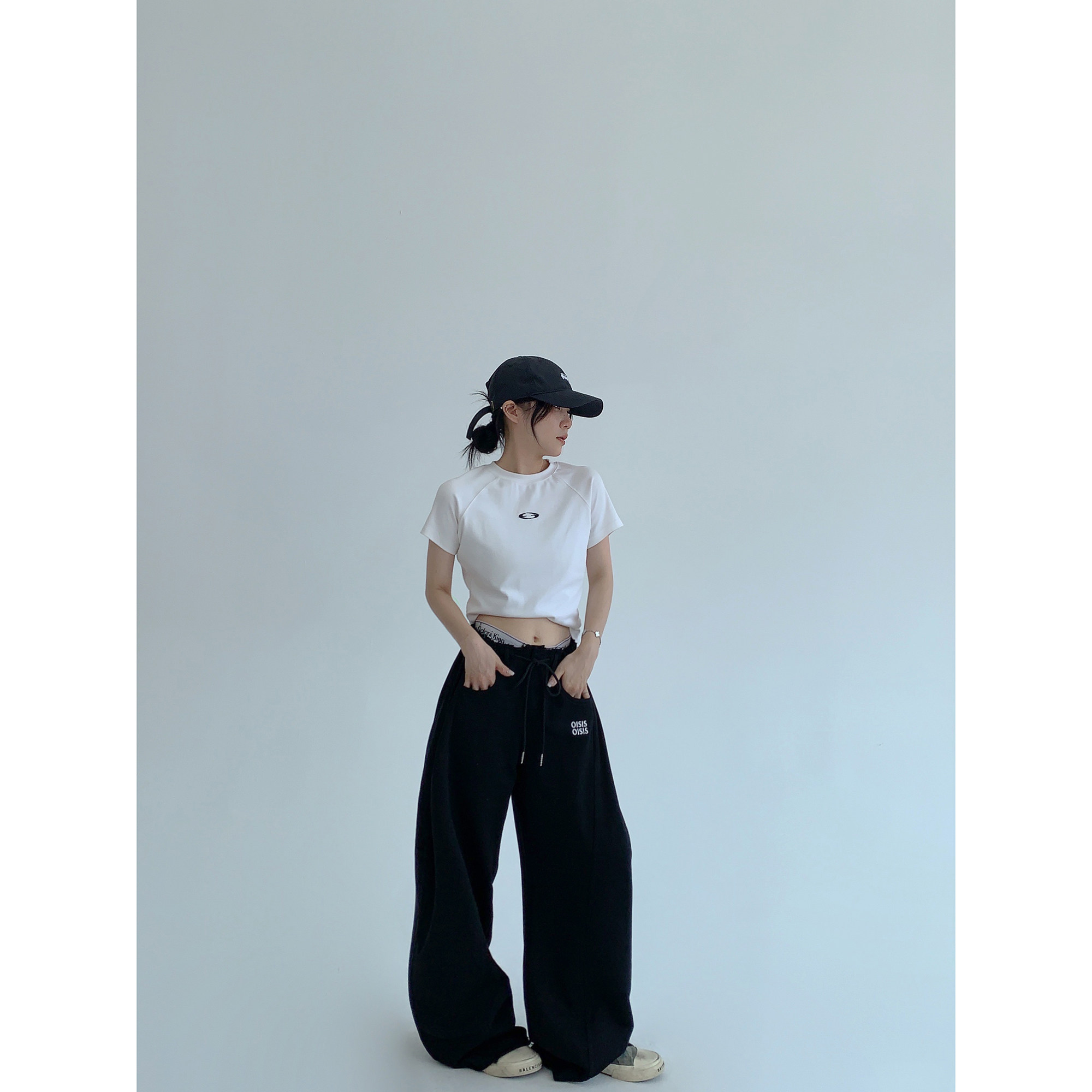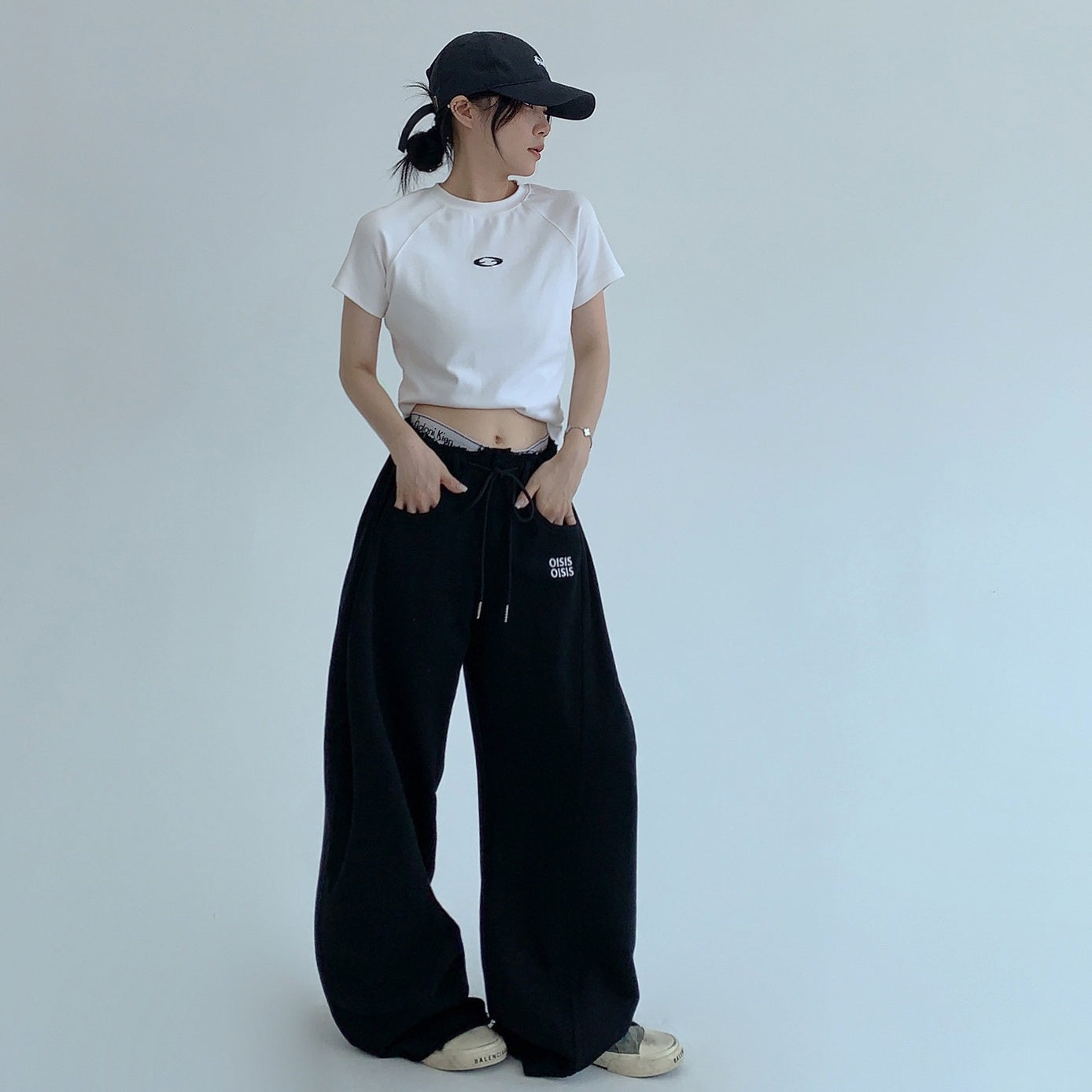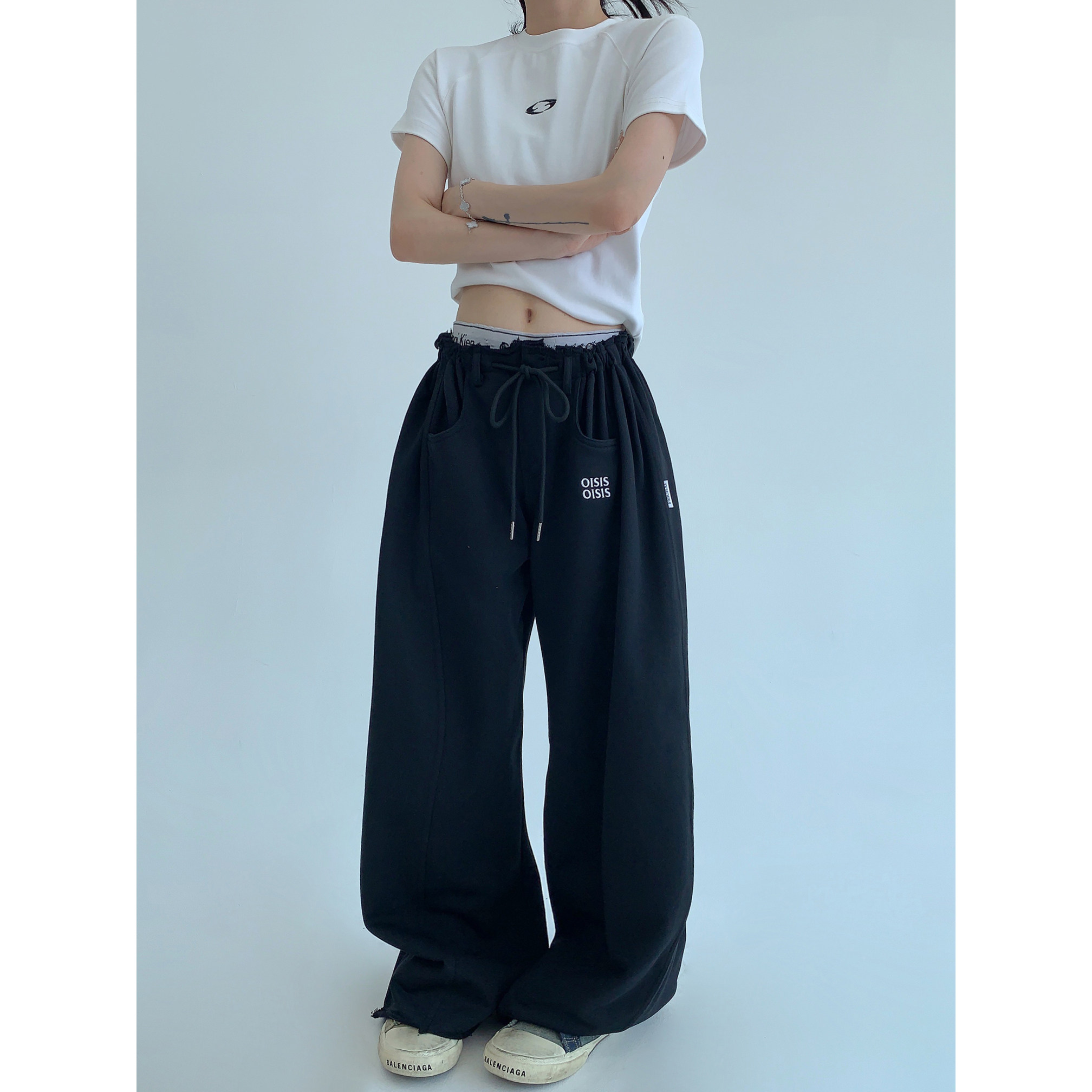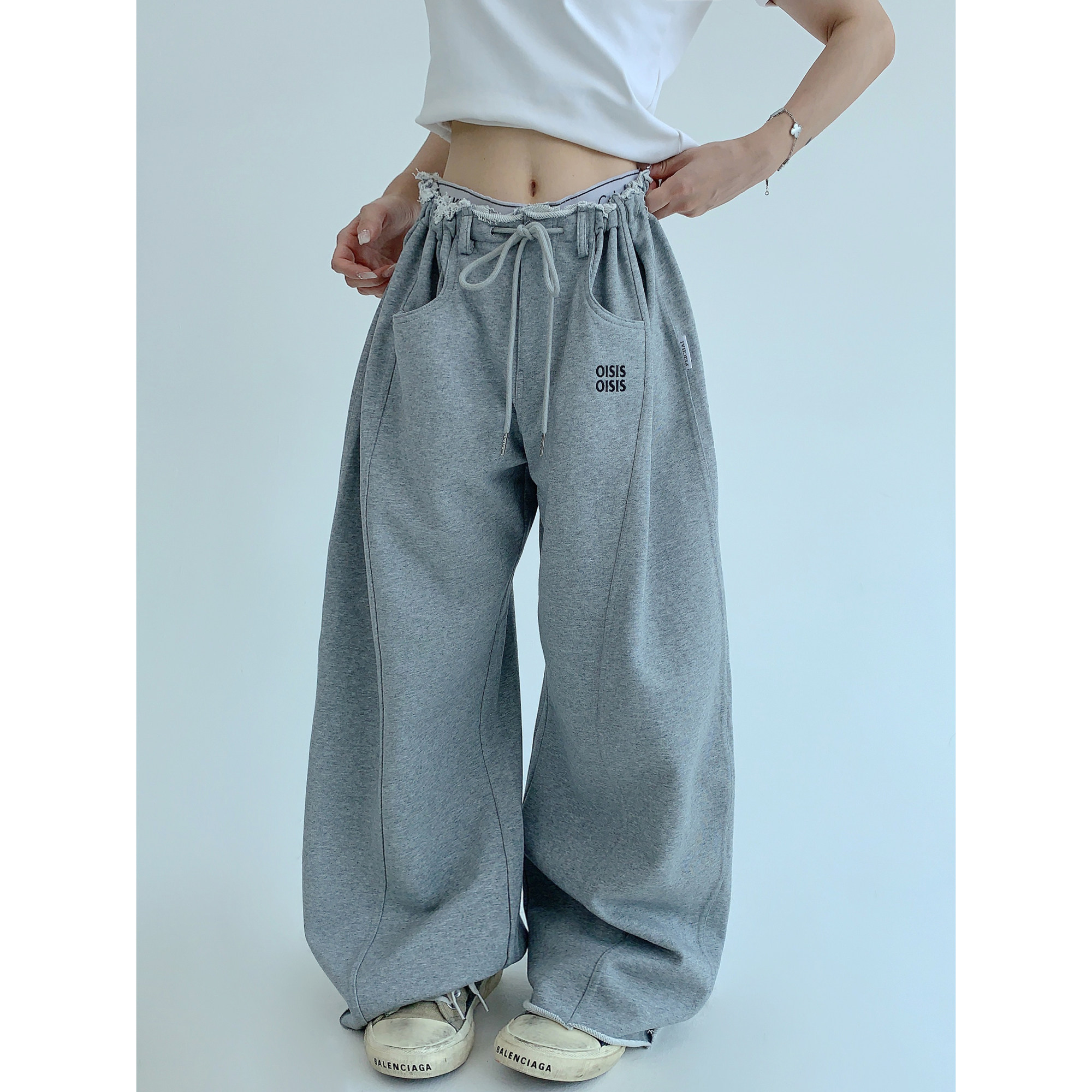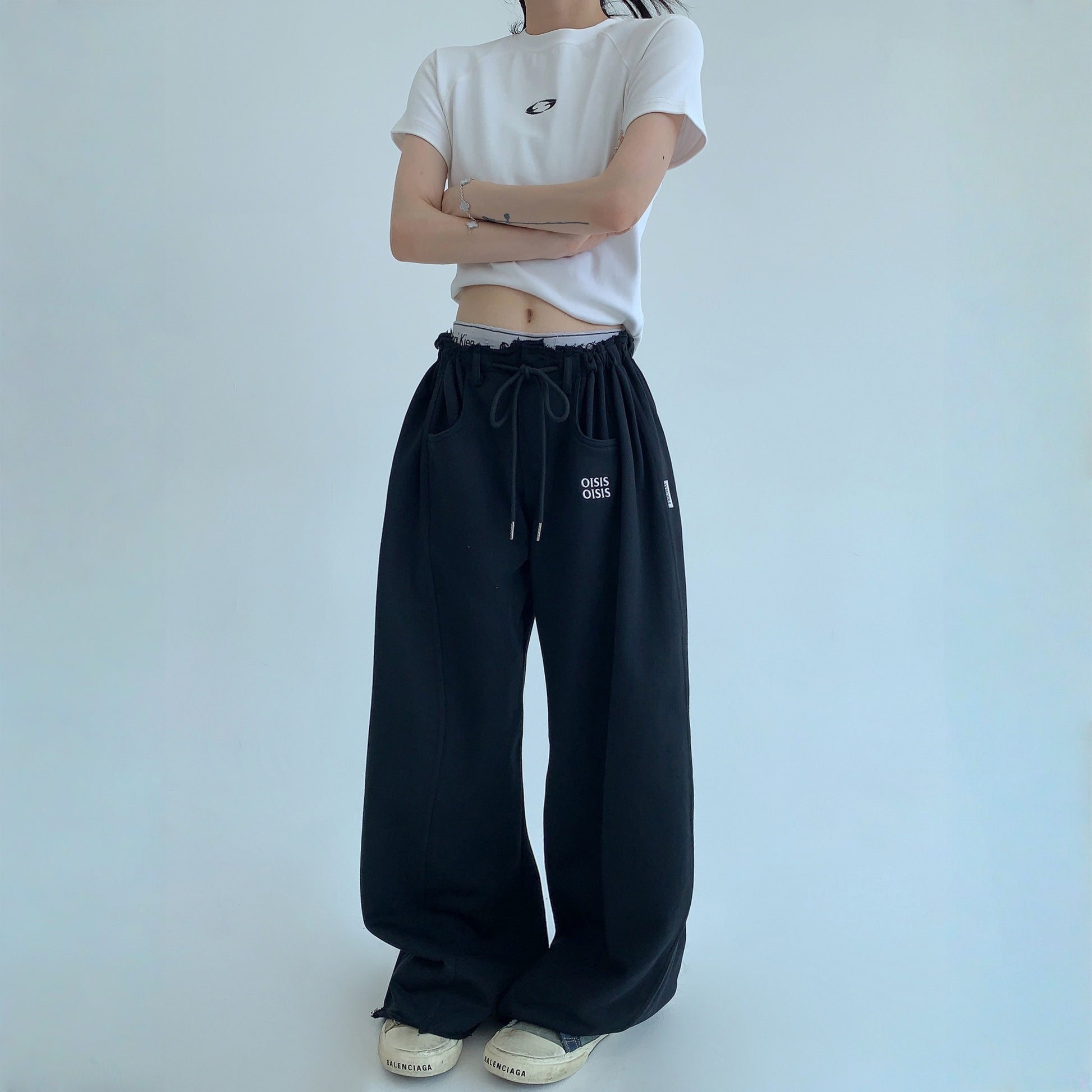 【商品名】【ボトムス】春 秋 冬 ギャザーウエスト ストレート ワイド スウェットパンツ 【FCシリーズ】