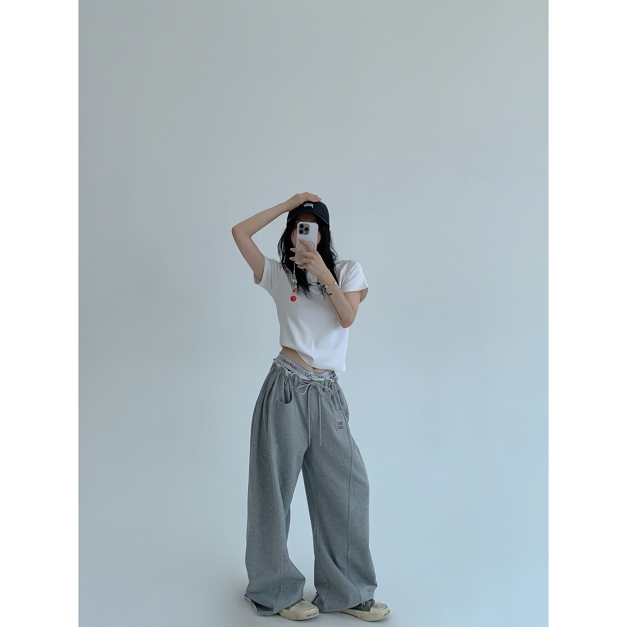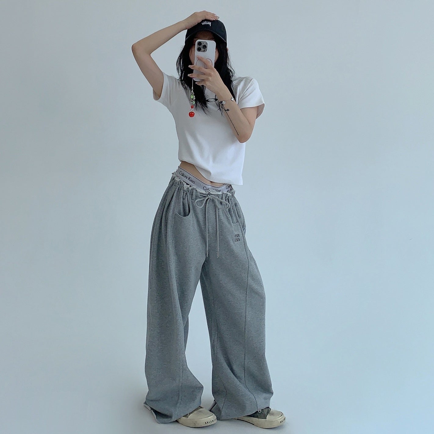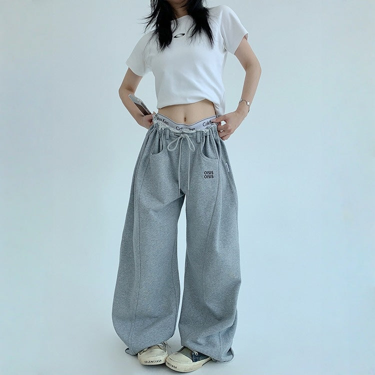 【ボトムス】春 秋 冬 ギャザーウエスト ストレート ワイド スウェットパンツ 【FCシリーズ】