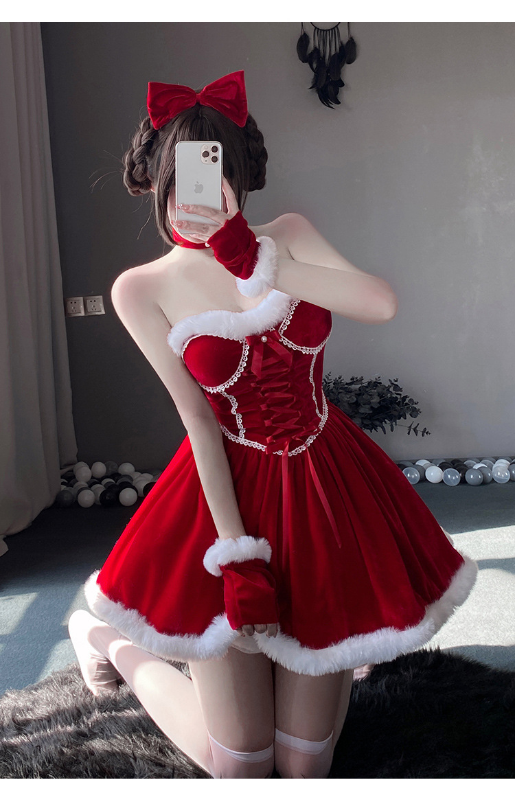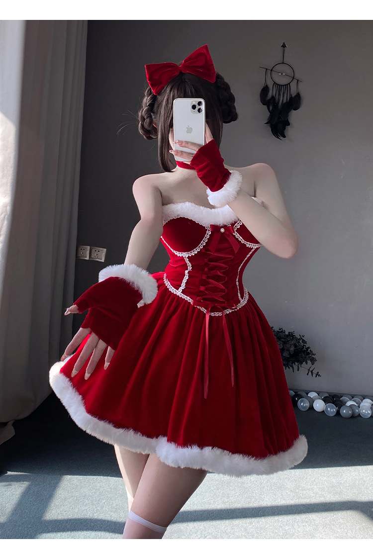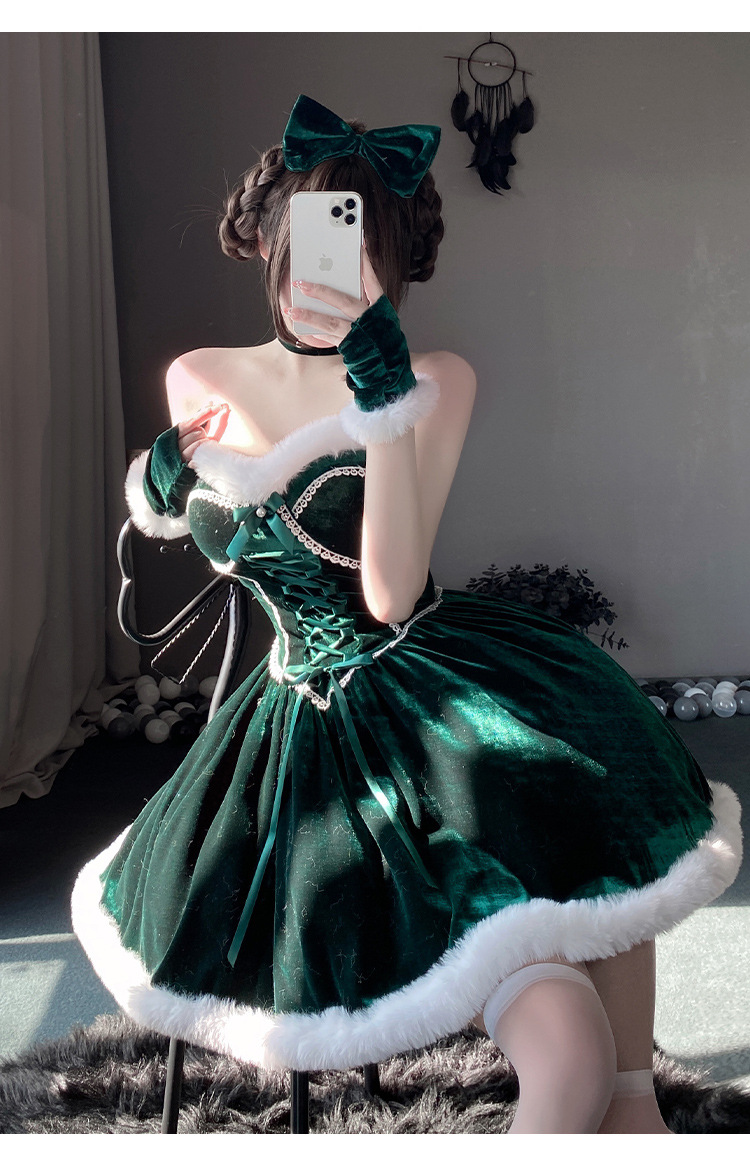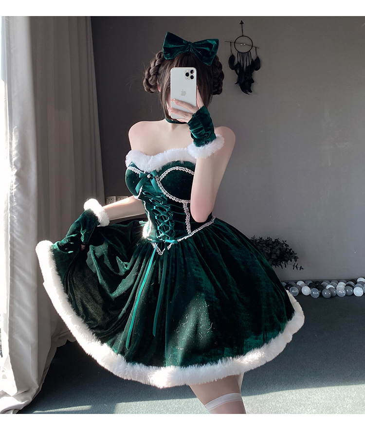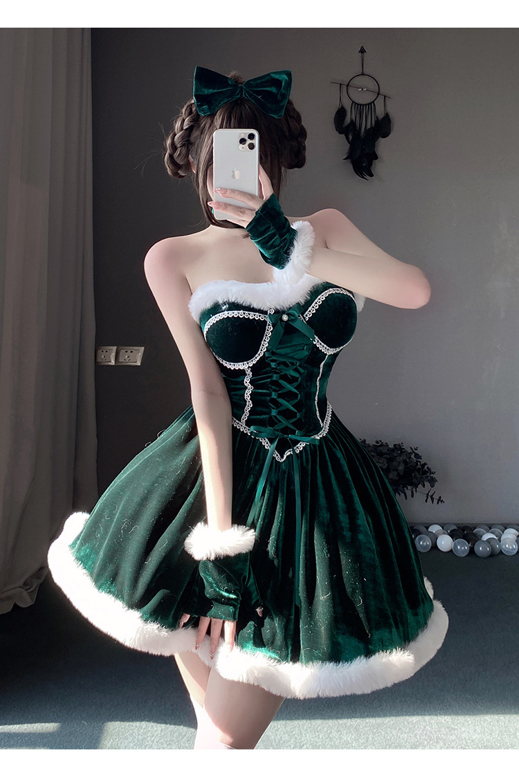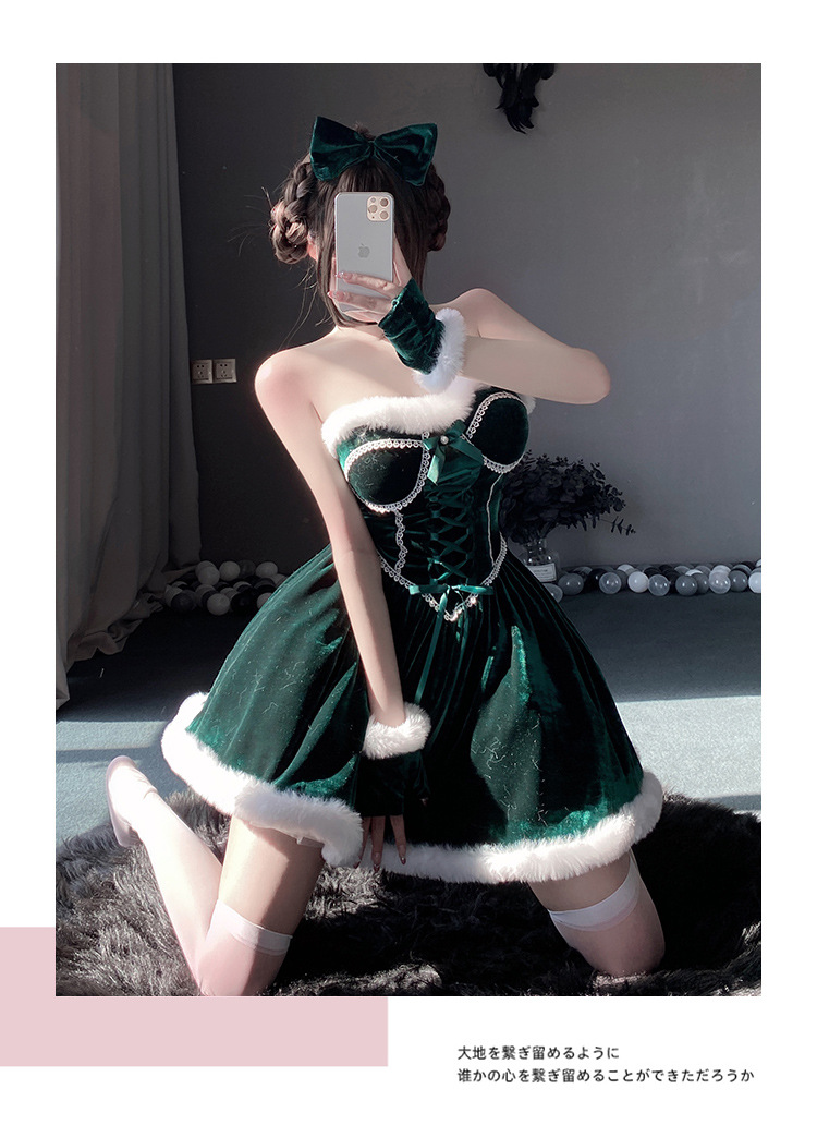 【商品名】【クリスマス】プレゼントは私! セクシー グリーン チューブトップワンピース 新年勝負ドレス