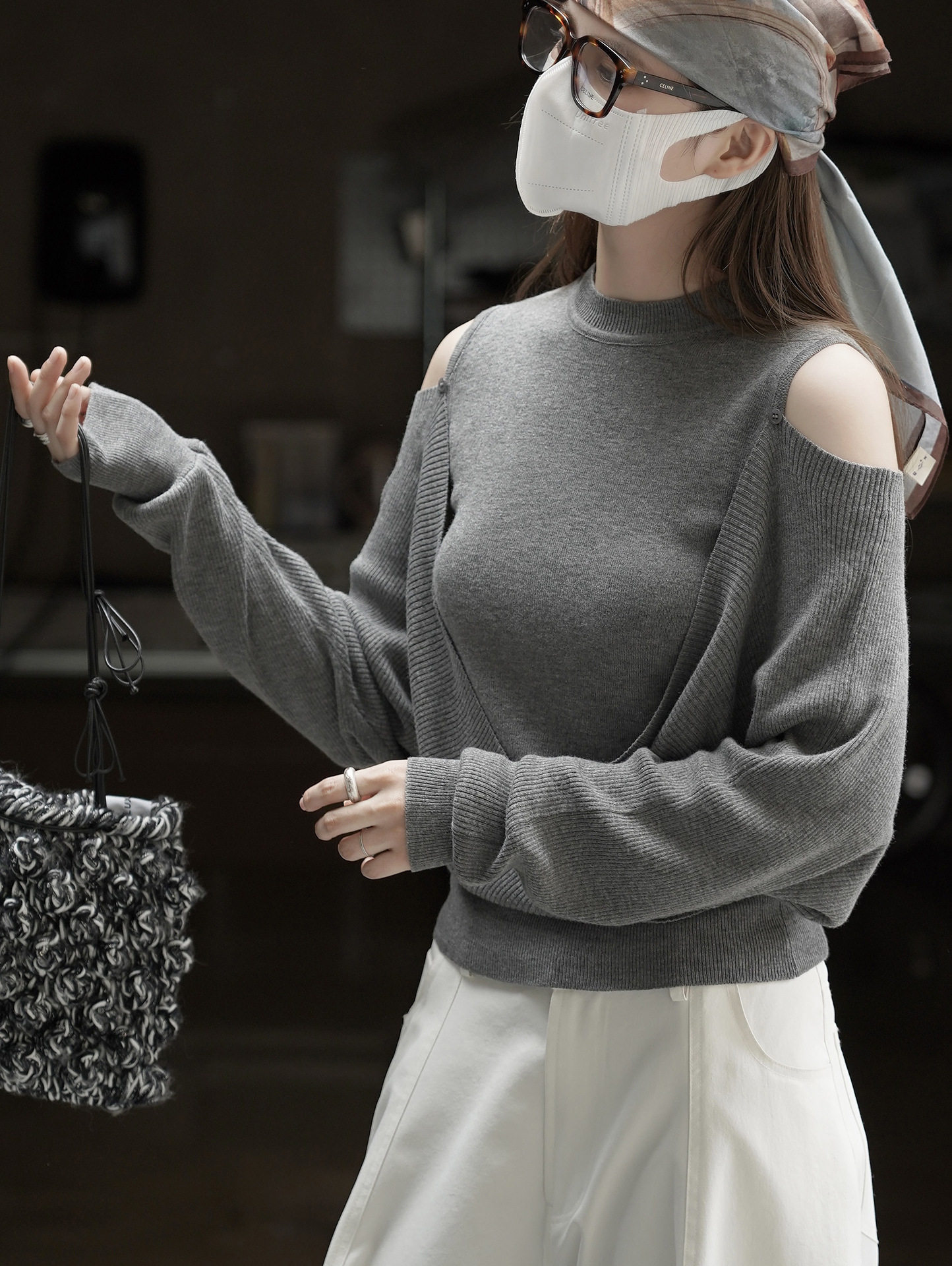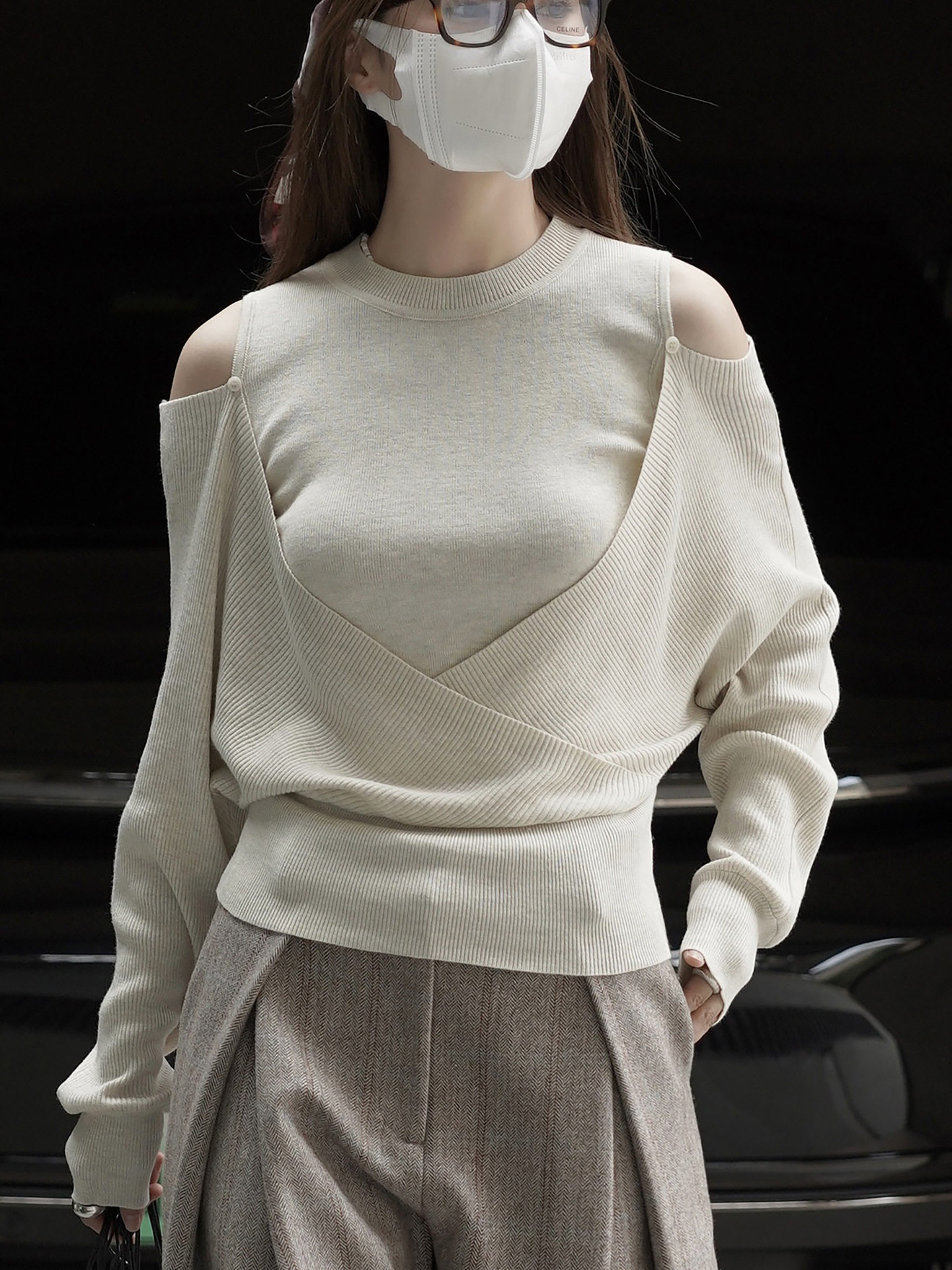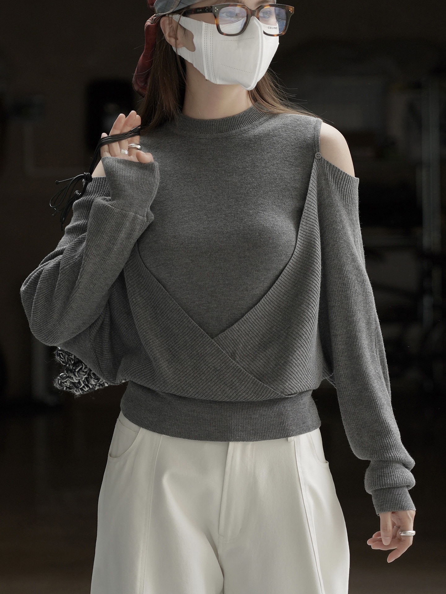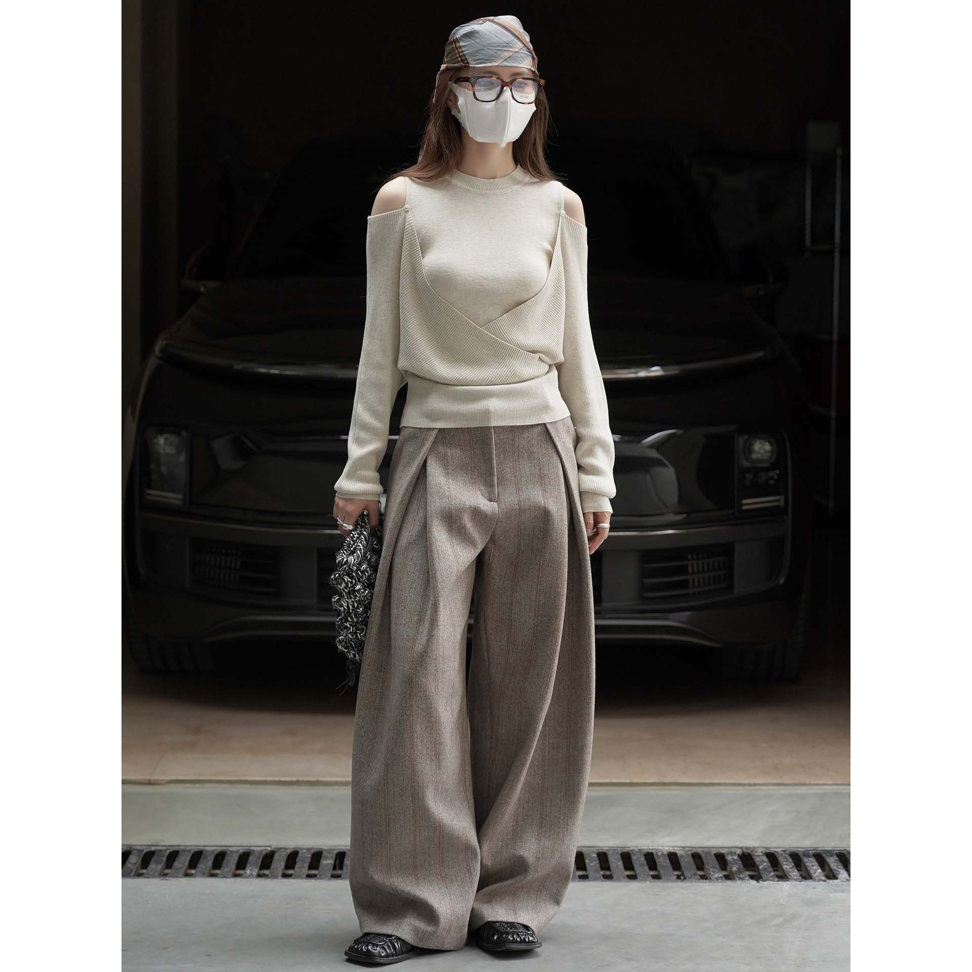 【商品名】【トップス】春 秋 冬 オフショルダー クロスデザイン 肌に優しい ニット Tシャツ 【JZシリーズ】